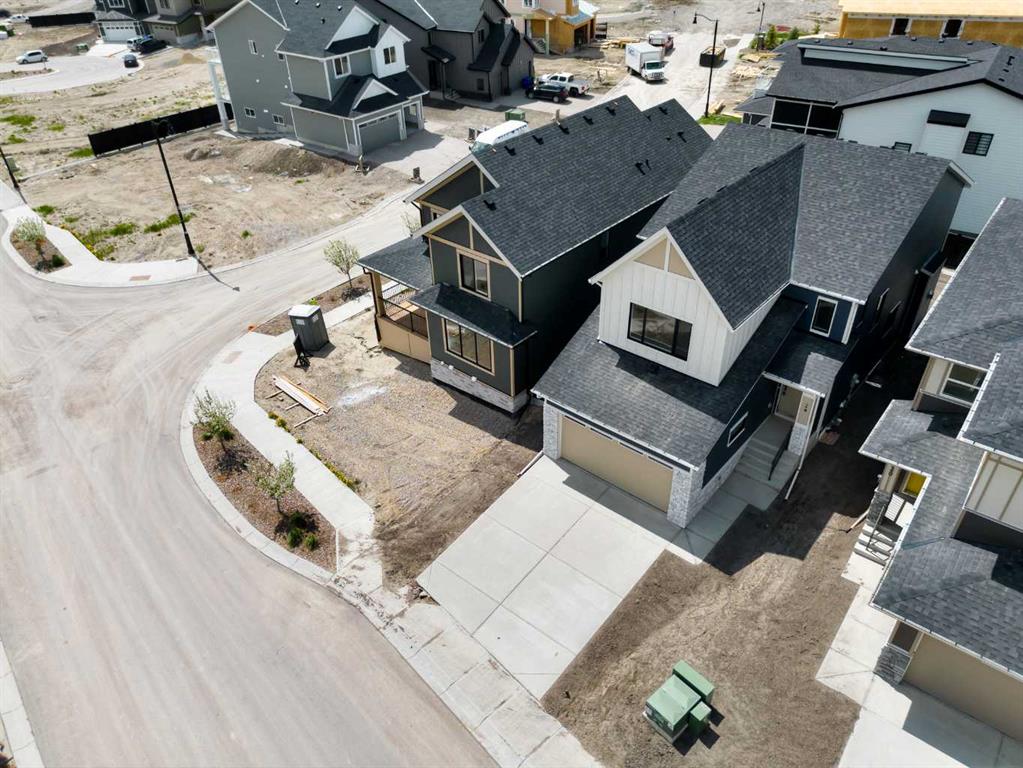 Welcome to a home where style meets substance in perfect harmony. This brand-new residence in Pinnacle Estates at Sunset Ridge offers a masterful blend of luxury, functionality, and thoughtful design—crafted to elevate your everyday living. On the main floor, you’re welcomed by rich hardwood flooring, soaring 9’ ceilings, and 8’ doors that add to the home’s sense of scale and sophistication. At the heart of the home, the chef-inspired kitchen showcases custom cabinetry, quartz countertops with double waterfall edges, and a full suite of premium appliances including a 30” gas cooktop, built-in wall oven and microwave, 36” fridge-freezer, and a dishwasher. A 6” drop ceiling defines the island with a flushed eating bar, making it both a design focal point and a hub for gathering. The walk-through pantry with MDF shelving flows seamlessly into the open-to-above foyer, with direct access to the double attached garage and a smartly designed mudroom complete with built-in bench and hooks. The family room, anchored by a custom gas fireplace, invites comfort and conversation, while a versatile flex room with barn door accents offers the perfect space for a home office, playroom, or creative studio. Outside, a spacious deck with gas BBQ hookup sets the scene for effortless entertaining. Upstairs, a vaulted ceiling in the bonus room enhances the spacious feel, creating a cozy yet dramatic space for relaxing or hosting movie nights. The primary suite is your private escape—complete with a tray ceiling, walk-in closet, and a spa-like ensuite featuring a double vanity, jetted soaker tub, and a glass-enclosed shower. Two additional bedrooms share a well-appointed 4-piece bathroom, while a dedicated laundry room with sink and cabinetry adds everyday convenience. The fully finished basement is designed with versatility in mind. With a separate side entrance, 9' ceilings, two large bedrooms, a 4-piece bathroom, and a family room with wet bar, it's the ideal setup for multigenerational living, guests, or game-day entertaining. Every inch of this home has been crafted with attention to detail, blending modern aesthetics with purposeful design. If you're seeking elevated living in one of Cochrane’s most desirable communities—this is the one.