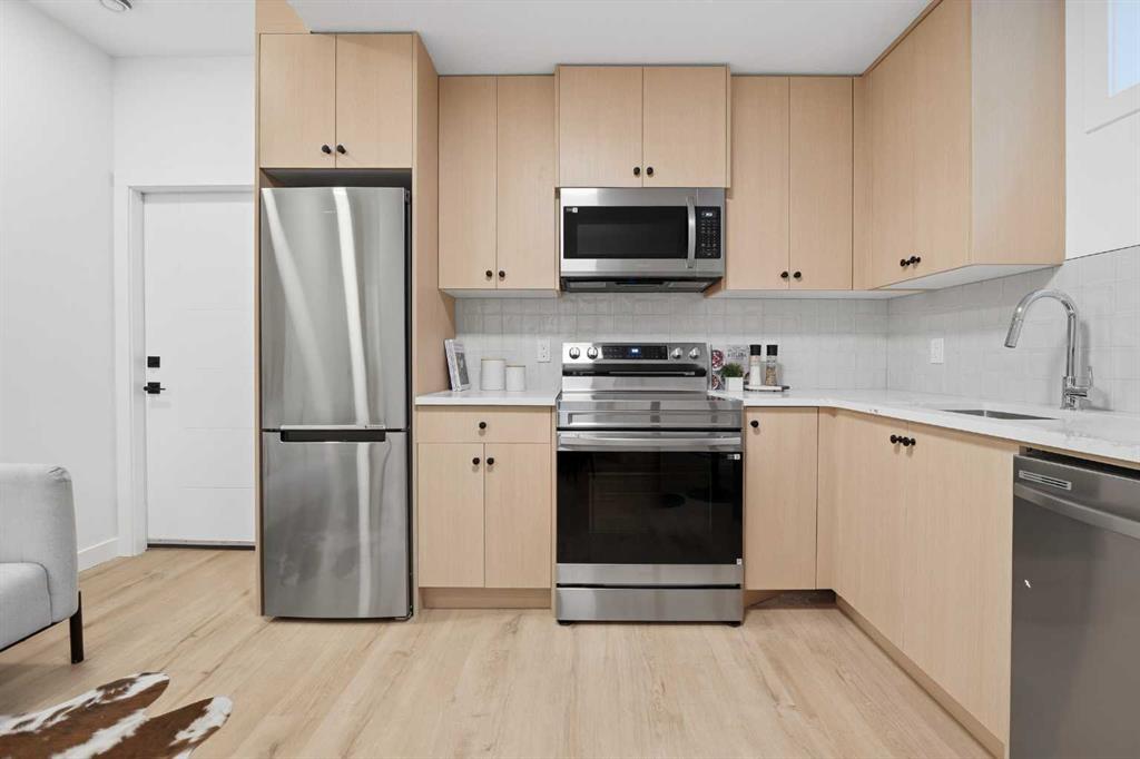Move into the heart of South Calgary today with this brand-new, walkout townhome that perfectly blends luxury, location, and low-maintenance living! Thoughtfully designed w/ 3 beds, 2.5 baths, and a LEGAL 1 BED SUITE (approved by the city), this is inner-city living without compromise! The interiors strike a perfect balance between modern luxury & livable design. Find high-end finishes that are rare to find at this price point — blonde wood tones, sleek custom cabinetry, and modern & thoughtful tile. Designer hardware, mid-century inspired embellishments, and a clean neutral palette give this space a fresh, elevated vibe. The kitchen is the heart of the home, designed w/ both form and function in mind. A large quartz island anchors the space w/ bar seating for casual meals or morning coffee. There's a full stainless steel appliance package, generous cabinetry, and a stylish backsplash that adds just the right amount of visual interest. It's open to the dining area and spacious living room & balcony, creating the perfect layout for hosting or just relaxing at home. And don’t forget the upscale powder room, complete w/ designer lighting. Upstairs, the primary suite feels like a boutique hotel retreat w/ a PRIVATE BALCONY, a large walk-in closet, and a modern 3-pc ensuite w/ a fully tiled walk-in shower. Two additional bedrooms and a full bathroom give you space for guests, kids, or home office! And yes, there's a laundry room upstairs, tucked conveniently between bedrooms. Downstairs is perfectly set up for a mortgage helper, additional income generator, or the perfect spot for multi-generational living w/ a LEGAL 1-BED SUITE (approved by the city). The modern touches flow into this space as well, w/ an open kitchen & living room space w/ ceiling-height cabinetry, stainless steel appliances, and quartz countertops, complete w/ separate laundry, a great-sized bedroom, and a full 4-pc bathroom. There is a separate entrance to the suite, as well as access from the main home to the suite for complete ease of use. The suite also boasts a private deck. The low-maintenance landscaping and a detached garage at the back are a serious bonus in the inner city. The backyard also features upright bike racks & secure CycleSafe lockers for added convenience. You’re tucked into a tree-lined street in South Calgary, but just a short stroll to absolutely everything. Our Daily Brett and South Calgary Pool & library are just at the end of the street, cSPACE King Edward’s arts & community programming is just a few blocks over, and all the everyday amenities in Marda Loop are w/in walking distance — Blush Lane Organic Market, Safeway, Shoppers, fitness studios, and an incredible lineup of restaurants. You’re minutes from 17th Ave’s restaurants & nightlife, and a quick commute to downtown! Whether you're looking for a stylish new home in an established neighbourhood or a long-term rental property w/ strong demand, this unit is an incredible opportunity! *pictures from show suite*
