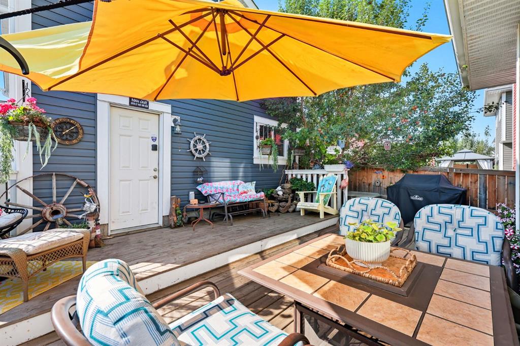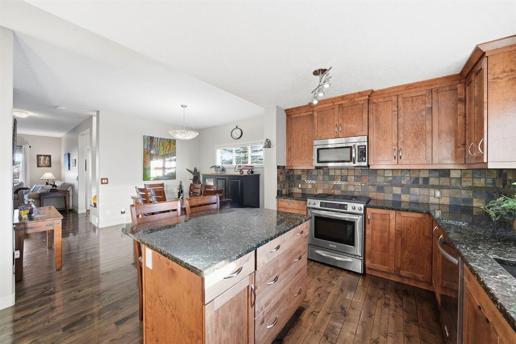 Welcome to 1 River Heights Green — a home that truly offers the best of both worlds: a beautifully upgraded family home and an INCREDIBLE DREAM GARAGE that every mechanic, car enthusiast, or hobbyist will appreciate. Perfectly positioned on a corner lot in the welcoming community of River Heights, this fully finished 1,762 sq ft home offers great curb appeal with vinyl siding and stone accents, a welcoming front porch, and a functional layout designed for everyday living. Step inside and you’ll immediately notice the warmth created by distressed hardwood floors, 9’ knockdown ceilings, & rich alder millwork throughout the main level. The heart of the home is the impressive island kitchen featuring granite countertops, full-height cabinets, and a striking slate backsplash above the sink. Quality stainless steel appliances include a DUAL-FUEL GAS STOVE with electric oven, KitchenAid dishwasher, & newer premium fridge — perfect for family meals or entertaining. The adjoining living room is both cozy and inviting with a gas fireplace, tile surround, granite hearth, and built-in shelving. A convenient pocket office provides a tucked-away workspace, while the rear entry keeps things organized with a built-in storage bench, hooks, and cabinets. A stylish 2-piece powder room completes the main floor. Upstairs, the spacious primary retreat features a walk-in closet and a beautiful ensuite with slate flooring, deep soaker tub, separate shower, and double vanity with vessel sinks. The second bedroom also offers a walk-in closet, and completing the upper level is a 3rd bedrm, 4-pce bath with slate floors, plus a fantastic laundry room with drawers, upper cabinets, & folding counter. The FULLY FINISHED BASEMENT adds excellent flexibility with a large rec room, a generous fourth bedroom with walk-in closet, and a private 3-piece ensuite with tiled shower — ideal for guests, teens, or extended family. The home is also equipped with CENTRAL AIR CONDITIONING, a high-efficiency furnace, drip humidifier, and built-in vacuum system. Now for the showstopper — the mechanic’s dream garage. Measuring approximately 26’ x 20’, this incredible space features 12.5’ ceilings, a 10’ insulated overhead door, 220V power, sub-panel, excellent lighting, shelving, & work benches that stay. Heated with a gas overhead heater, the garage also includes a 10,000 lb commercial-grade hoist (can be removed), making it perfect for serious projects or hobby work. The side-winder opener, stereo system, and security system complete this impressive setup. Outside, enjoy the 2 tiered deck with gas line for a BBQ, landscaped yard, & storage shed. Located close to parks, pathways, schools, and all the amenities Cochrane has to offer, this home delivers comfort, character, and a garage that truly sets it apart. If you’ve been searching for a property that keeps everyone happy — a beautiful home for the family and the ultimate garage for projects & passions — this is exactly what you’ve been waiting for!