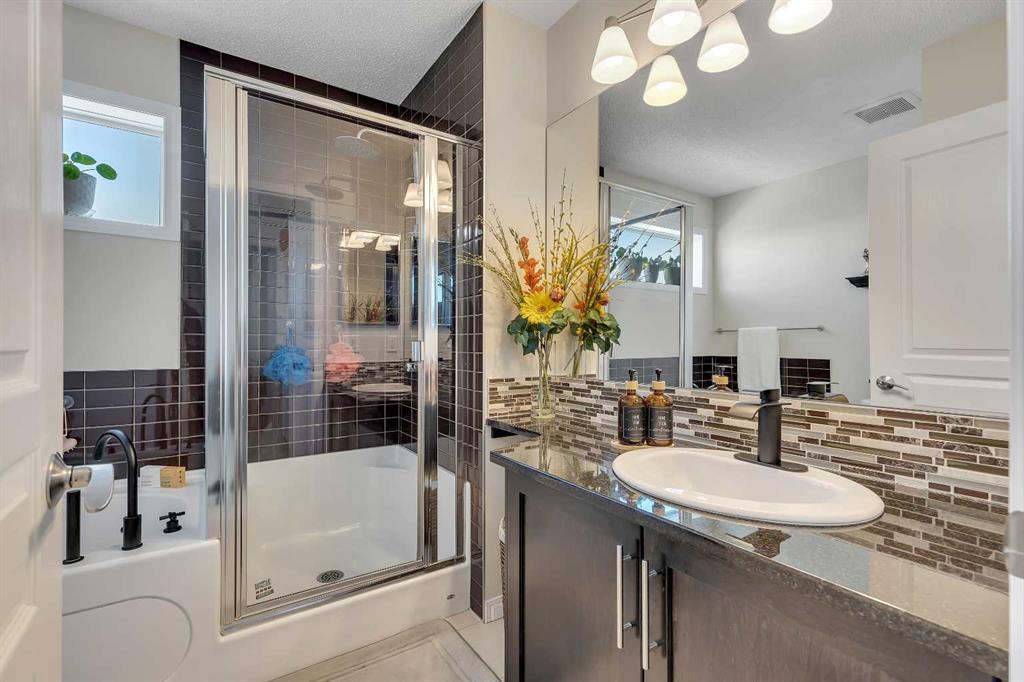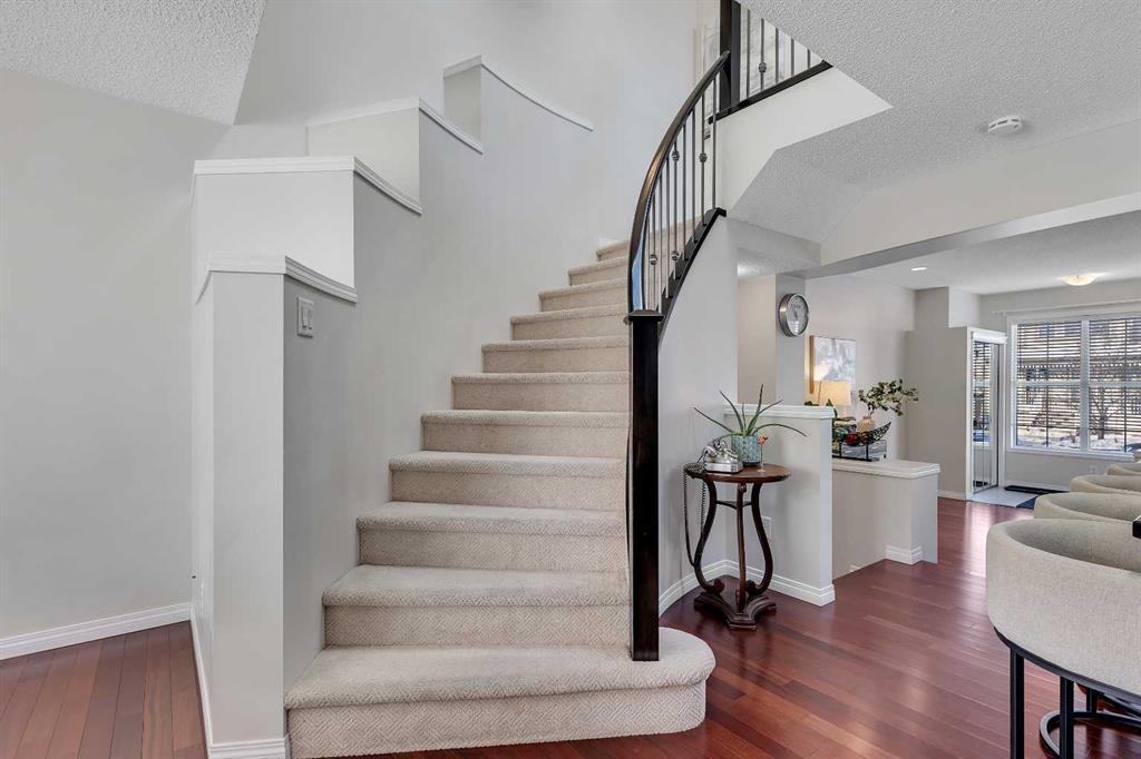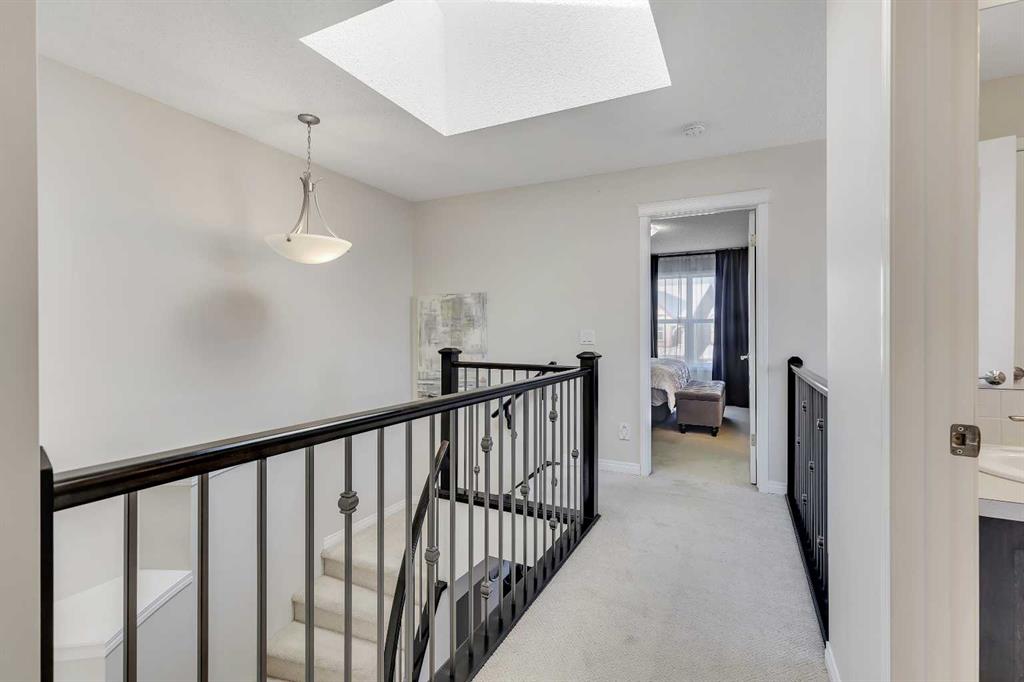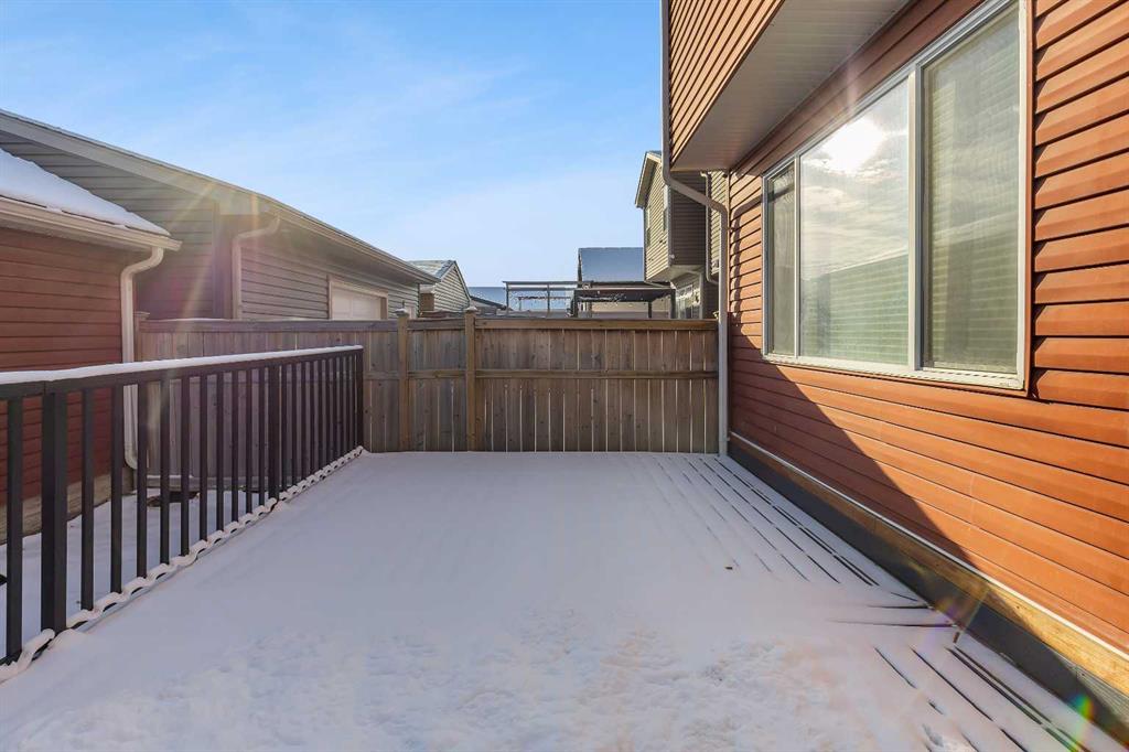 Welcome to this bright and beautifully maintained END-UNIT LANED HOME, offering comfort, functionality, and thoughtful upgrades throughout. Bathed in natural light from large windows, the OPEN CONCEPT main floor features HARDWOOD FLOORING, upgraded cabinetry, and a seamless flow that makes everyday living and entertaining effortless. The OPEN-TO-BELOW DESIGN enhances the sense of space and light, creating a welcoming atmosphere from the moment you enter. The kitchen is both stylish and practical, offering ample storage and counter space, and opening directly to the dining and living areas. A convenient powder room completes the main floor. Upstairs, you will find THREE GENEROUSLY SIZED BEDROOMS and TWO FULL BATHROOMS, providing an ideal layout for growing families or professionals working from home. This home was previously used as a day home, reflecting its thoughtful layout and family-friendly functionality. Step outside to enjoy the OVERSIZED COMPOSITE DECK, perfect for summer gatherings, barbecues, or quiet evenings. The FULLY FENCED YARD offers privacy and security, while the DOUBLE DETACHED GARAGE provides ample parking and storage. Additional highlights include SOLAR PANEL for energy efficiency and long-term savings, as well as an unfinished basement ready for future development. Steps away to Bayside Elementary School and with easy access to public transit, this location adds everyday convenience to an already well-rounded home. A rare end-unit opportunity offering space, light, and smart upgrades. This is one you will not want to miss.