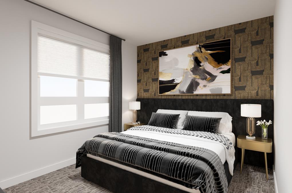 BEING AN END UNIT CHANGES EVERYTHING — and once you’ve lived with it, there’s no going back. MORE WINDOWS where you actually notice them. SUBTLE BUMP-OUTS that soften the edges of the space. Only one shared wall. The difference isn’t theoretical — it’s felt. The main living level is organized with intention, not guesswork. The living room sits at the front of the home, anchored by END-UNIT WINDOWS that pull in EXTRA LIGHT and give the space real presence. The kitchen holds the centre, grounded by a BREAKFAST BAR ISLAND with space to prep, perch, eat, and linger, without turning the room into an obstacle course. At the back, the dining area opens directly to the PATIO, creating a natural extension of the space. From here, the view opens to COMMUNITY GREEN SPACE AND PATHWAYS, adding visual breathing room and an outdoor connection that makes the patio feel like a true part of daily life — not an afterthought. Upstairs, THREE BEDROOMS are arranged with clear hierarchy and smart separation. The primary sits at the back with its ensuite and walk-in closet, while the middle bedroom benefits directly from the end-unit position — a subtle bump-out and SIDE WINDOW that brings in natural light most interior units simply don’t get. At the front, the third bedroom includes its own walk-in closet, quietly checking a few EXTRA boxes on the upper level. Down below, the same attention to practicality continues. The DOUBLE ATTACHED TANDEM GARAGE quietly does more than expected. Yes, it fits two vehicles — but it also absorbs the less glamorous parts of life. Bikes, bins, seasonal gear, and a dedicated UTILITY/STORAGE AREA that keeps the rest of the home feeling intentional instead of overrun. It’s the kind of feature that doesn’t shout, but dramatically improves day-to-day living. And then there’s Rockland Park — not just as a backdrop, but as an active part of your routine. This is a community designed to pull you outside: pathway-connected streets, parks woven throughout, a RESIDENTS-ONLY CLUBHOUSE WITH POOL AND AMENITIES, and easy access to nature without giving up city convenience. Walks feel purposeful. Errands feel closer. Add quick access to Crowchild and Stoney, and life stays connected without feeling busy. It’s finished. IT’S AVAILABLE NOW. And it offers something that’s hard to replicate later: an end-unit position in a community people are actively choosing for how it lives. If light, privacy, and a neighbourhood that genuinely adds to your day matter — THIS ONE DESERVES YOUR ATTENTION. • PLEASE NOTE: Photos are VIRTUAL RENDERINGS of the same model – fit & finish may differ on final spec home. Interior selections & floorplans shown in photos.