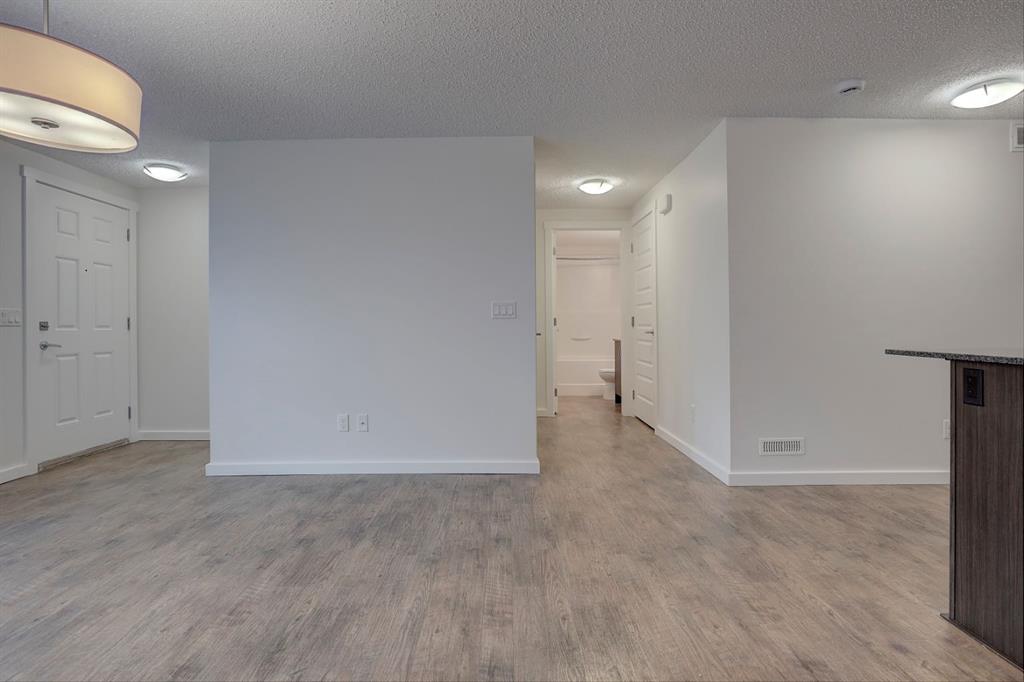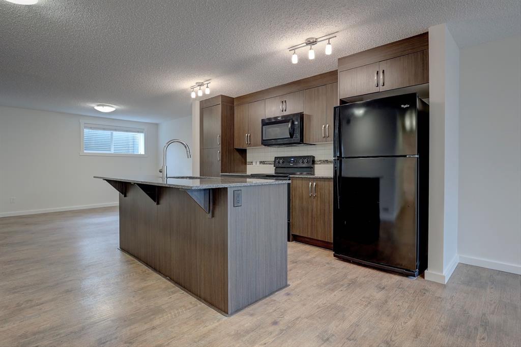 A remarkable opportunity in the heart of Auburn Bay! This beautifully refreshed bungalow-style garden suite offers an ideal blend of comfort, convenience, and modern living. Recently updated with brand-new carpet and a full professional repaint, this spacious townhouse delivers a WARM AND NEW FEEL the moment you walk in. Offering 1,152.8 sq ft of single-level living, this home stands out with its oversized living room, dining area, and bedrooms—providing an abundance of space rarely found in similar properties. Large windows fill the main living area with natural light, creating an inviting environment for both everyday living and entertaining. The open-concept kitchen is equipped with quartz countertops, sleek black appliances, a central island, pantry and plenty of cabinet storage—perfect for cooking and hosting. The dining space easily accommodates a full-sized table with room to spare. Both generously sized bedrooms are designed for comfort and privacy. The OVERSIZED primary suite features its own private ensuite, a spacious walk-in closet, room for a king-sized bed and perhaps an exercise bike. The second bedroom is also large, offering excellent natural light and flexibility for guests, kids, or a home office. A second full bathroom, in-suite laundry, and ample storage complete the interior. Step outside to your private front patio, an ideal spot for morning coffee, evening relaxing, or summer get-togethers. This home includes one assigned parking stall, and the low condo fees cover insurance, snow removal, landscaping, reserve fund contributions, and visitor parking. As a resident of Auburn Bay, you'll enjoy full lake access and the complete range of HOA amenities—including the beach, swimming, skating, community events, parks, playgrounds, and year-round recreational activities. It’s a lifestyle perk that truly sets this community apart. Located A 2 MINUTE WALK to South Health Campus, close to multiple schools, restaurants, grocery stores, the YMCA, , cafés, shops, and entertainment, this home checks every box for lifestyle and convenience. If you're looking for a move-in-ready home with exceptional space in a vibrant lake community, this one truly stands out. Welcome to Auburn Bay—your relaxed, lakeside lifestyle starts here.