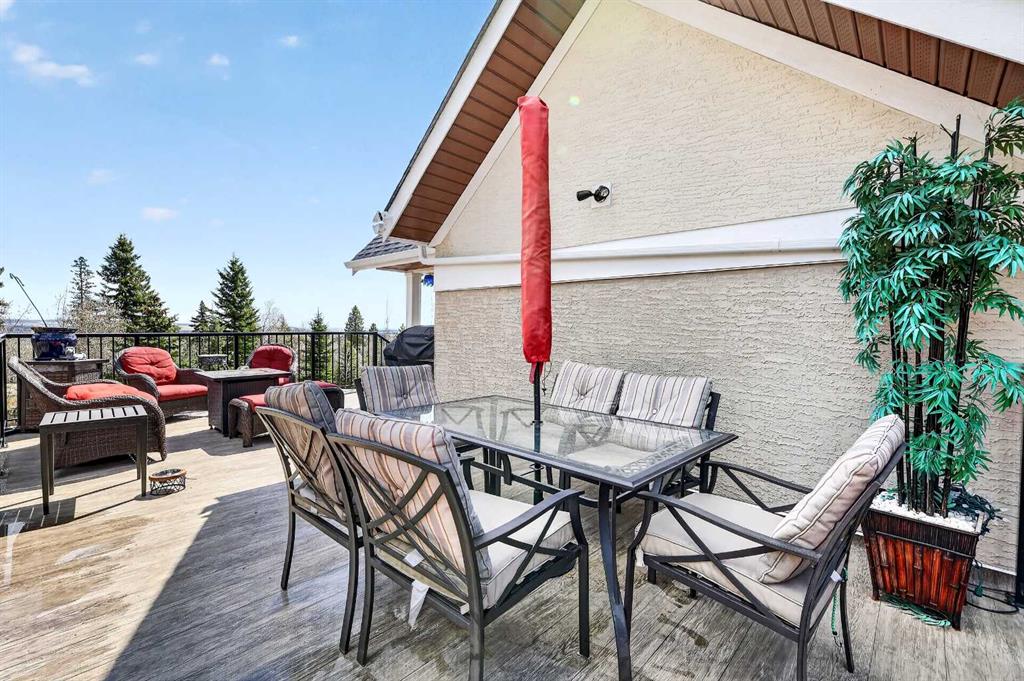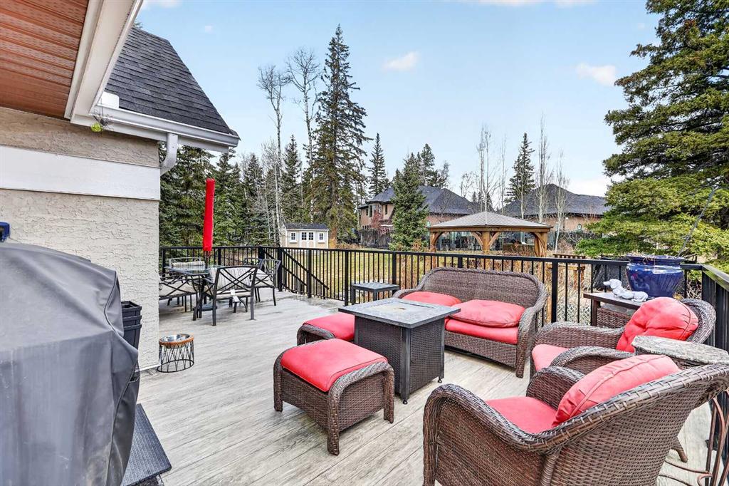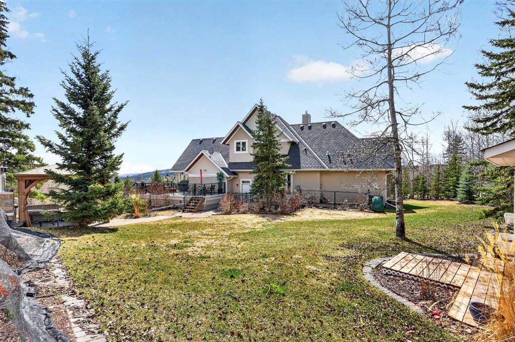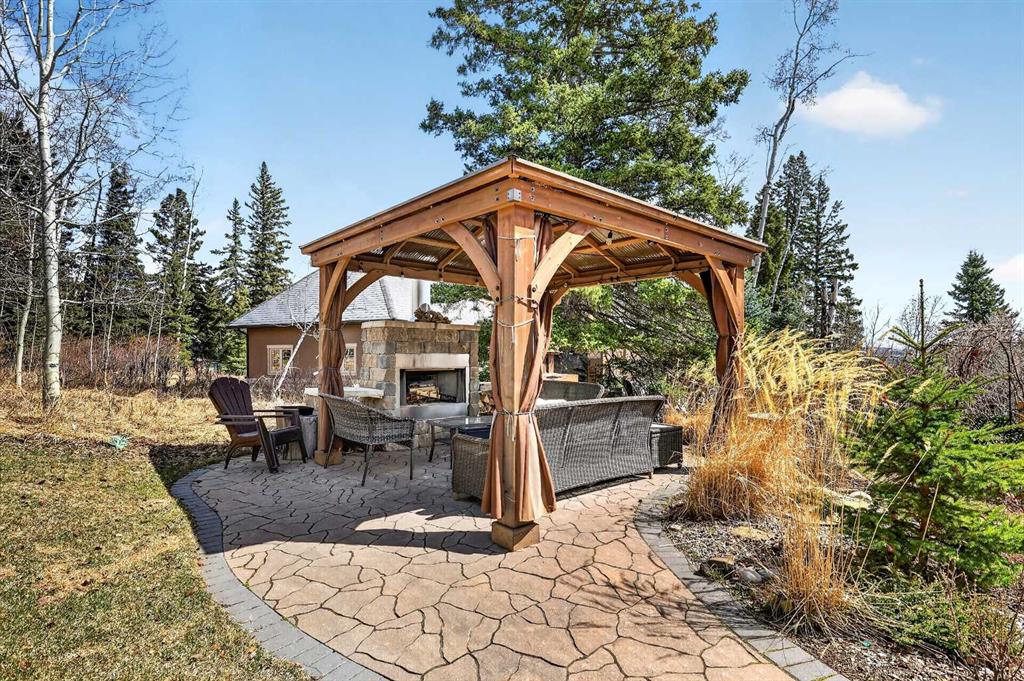 Tucked into the rolling foothills just west of Calgary, this exceptional estate home in Hawks Landing offers a rare opportunity to experience luxury country living without sacrificing convenience. Surrounded by quiet natural beauty and expansive skies, yet only minutes from the city and the renowned Priddis Greens Golf & Country Club, this is a home designed for those who value space, privacy, and refined comfort. From the moment you enter, the home reveals a thoughtful design that blends elegant entertaining spaces with functional everyday living. The expansive main living area features a striking low-profile fireplace that anchors the room, while large windows frame views of the surrounding landscape and fill the home with natural light. The living room flows seamlessly into a spacious dining area, creating an inviting setting for memorable gatherings and intimate dinners alike. At the heart of the home is a beautifully appointed European-inspired kitchen, where sleek cabinetry, stainless steel appliances, and an oversized island provide both style and practicality. Abundant counter space ensures the kitchen is equally suited for casual family meals or hosting larger occasions. The main floor is anchored by a magnificent primary suite designed as a private retreat. Generously proportioned, the suite features a spa-inspired ensuite complete with dual vanities, an air soaker tub, and a separate oversized glass and tile shower offering a daily escape into relaxation. A dedicated main floor office or study adds flexibility for working from home or enjoying a quiet space to read or reflect. Upstairs, the home continues to impress with a second private primary retreat, occupying the entire upper level. This tranquil space provides exceptional privacy and comfort, making it ideal for homeowners seeking separation from the main living areas. The fully finished lower level with impressive 9-foot ceilings and oversized windows expands the home’s versatility even further. Designed with both entertaining and family living in mind, it features a large recreation and games area complemented by a full wet bar—perfect for hosting guests or enjoying relaxed evenings at home. Two additional spacious bedrooms, including one with its own private ensuite, along with another full bathroom, create a layout that works beautifully for multigenerational living, visiting family, or extended stays by friends. A triple attached garage provides ample space for vehicles, recreational equipment, and storage, supporting the active lifestyle that comes naturally in this remarkable setting, and the serene backyard oasis features a large deck and cozy outdoor fireplace complete with gazebo that is perfect for relaxing or entertaining guests. Life in Hawks Landing offers a sense of calm and openness that is increasingly rare. This is more than a home - it is a lifestyle defined by space, serenity, and understated luxury, with easy access to the Rocky Mountains - all within easy reach of Calgary.