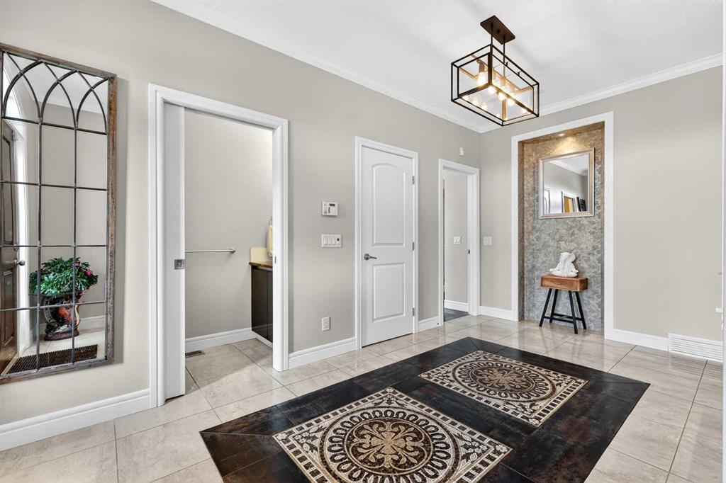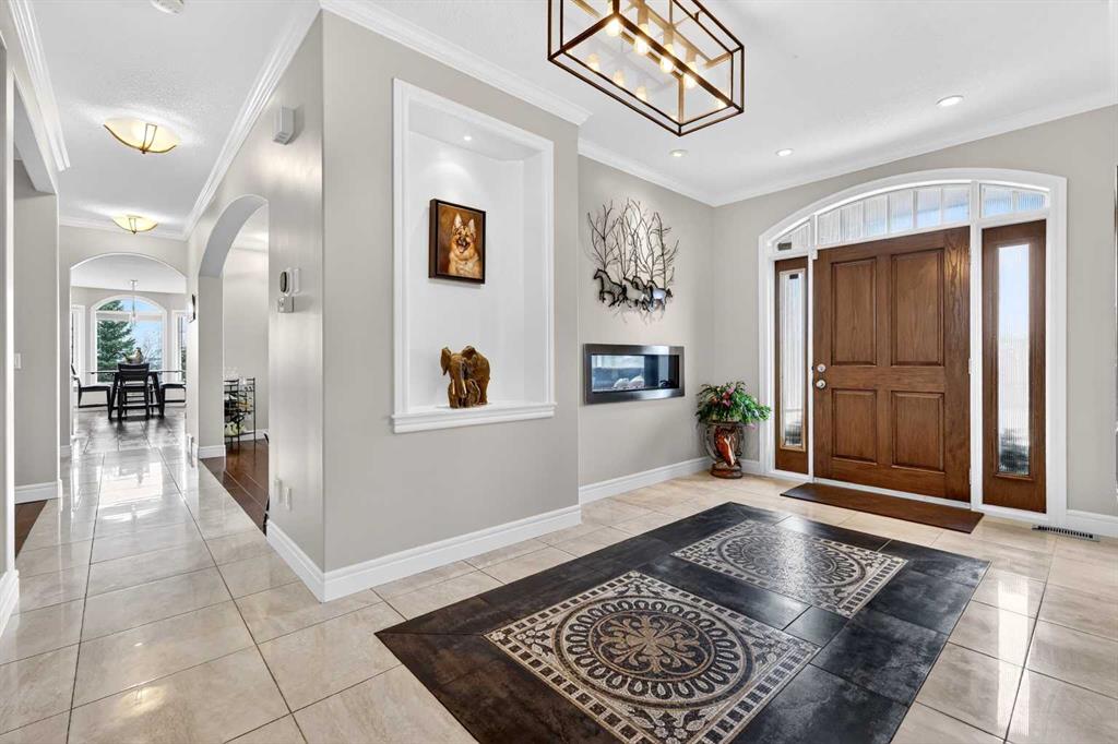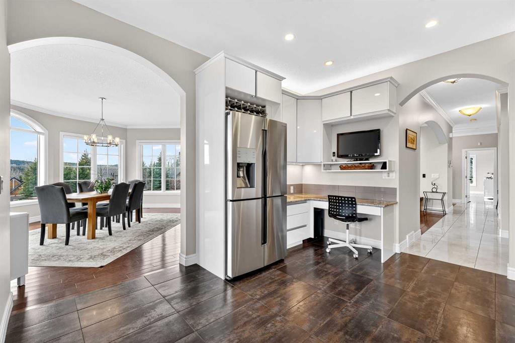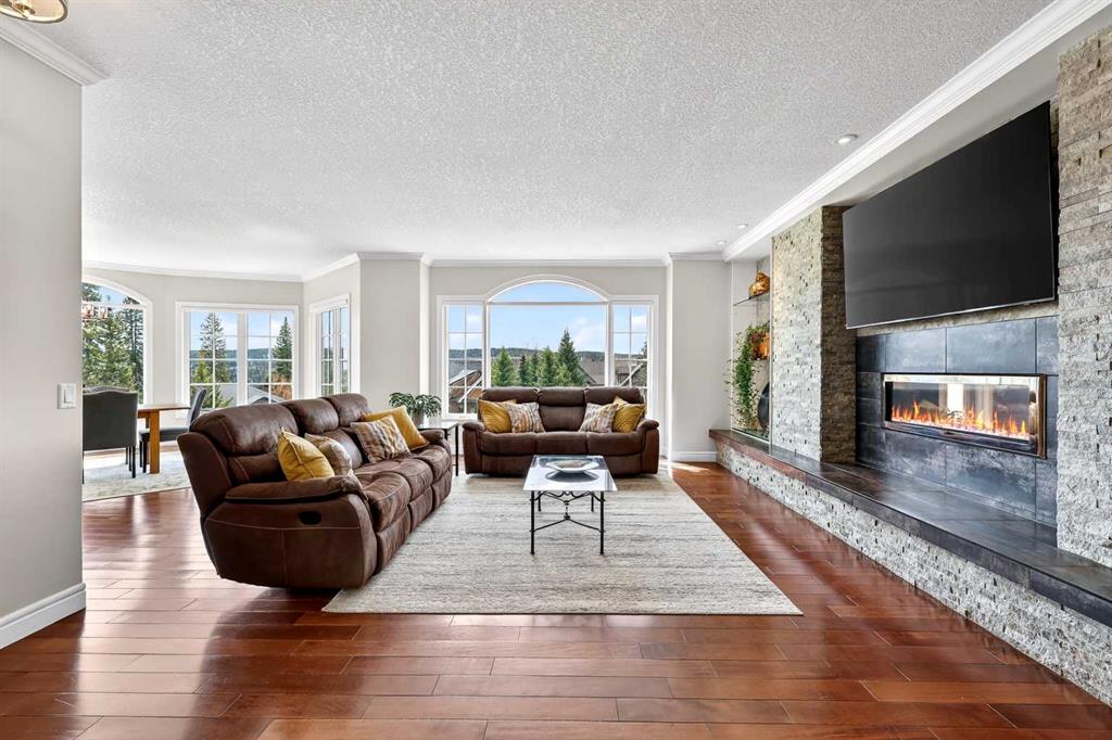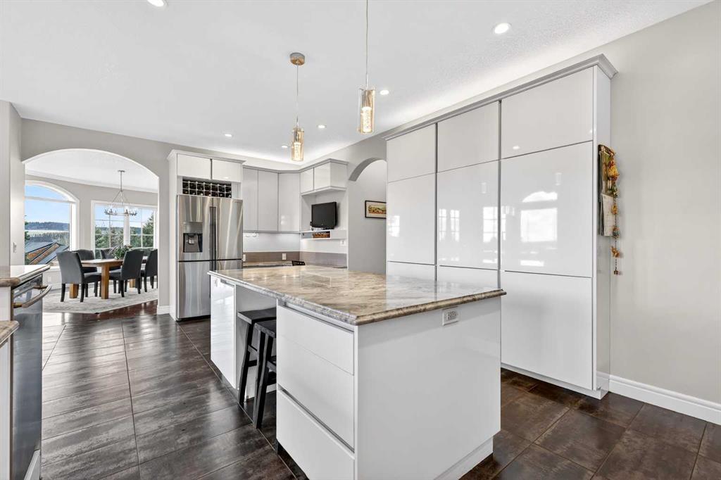 Tucked into the rolling foothills just west of Calgary, this exceptional estate home in Hawks Landing offers a rare opportunity to experience luxury country living without sacrificing convenience. Surrounded by quiet natural beauty and expansive skies, yet only minutes from the city and the renowned Priddis Greens Golf & Country Club, this is a home designed for those who value space, privacy, and refined comfort. From the moment you enter, the home reveals a thoughtful design that blends elegant entertaining spaces with functional everyday living. The expansive main living area features a striking low-profile fireplace that anchors the room, while large windows frame views of the surrounding landscape and fill the home with natural light. The living room flows seamlessly into a spacious dining area, creating an inviting setting for memorable gatherings and intimate dinners alike. At the heart of the home is a beautifully appointed European-inspired kitchen, where sleek cabinetry, stainless steel appliances, and an oversized island provide both style and practicality. Abundant counter space ensures the kitchen is equally suited for casual family meals or hosting larger occasions. The main floor is anchored by a magnificent primary suite designed as a private retreat. Generously proportioned, the suite features a spa-inspired ensuite complete with dual vanities, an air soaker tub, and a separate oversized glass and tile shower offering a daily escape into relaxation. A dedicated main floor office or study adds flexibility for working from home or enjoying a quiet space to read or reflect. Upstairs, the home continues to impress with a second private primary retreat, occupying the entire upper level. This tranquil space provides exceptional privacy and comfort, making it ideal for homeowners seeking separation from the main living areas. The fully finished lower level with impressive 9-foot ceilings and oversized windows expands the home’s versatility even further. Designed with both entertaining and family living in mind, it features a large recreation and games area complemented by a full wet bar—perfect for hosting guests or enjoying relaxed evenings at home. Two additional spacious bedrooms, including one with its own private ensuite, along with another full bathroom, create a layout that works beautifully for multigenerational living, visiting family, or extended stays by friends. A triple attached garage provides ample space for vehicles, recreational equipment, and storage, supporting the active lifestyle that comes naturally in this remarkable setting, and the serene backyard oasis features a large deck and cozy outdoor fireplace complete with gazebo that is perfect for relaxing or entertaining guests. Life in Hawks Landing offers a sense of calm and openness that is increasingly rare. This is more than a home - it is a lifestyle defined by space, serenity, and understated luxury, with easy access to the Rocky Mountains - all within easy reach of Calgary.
