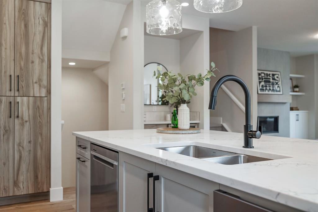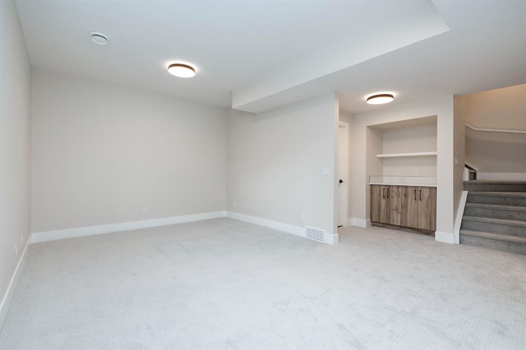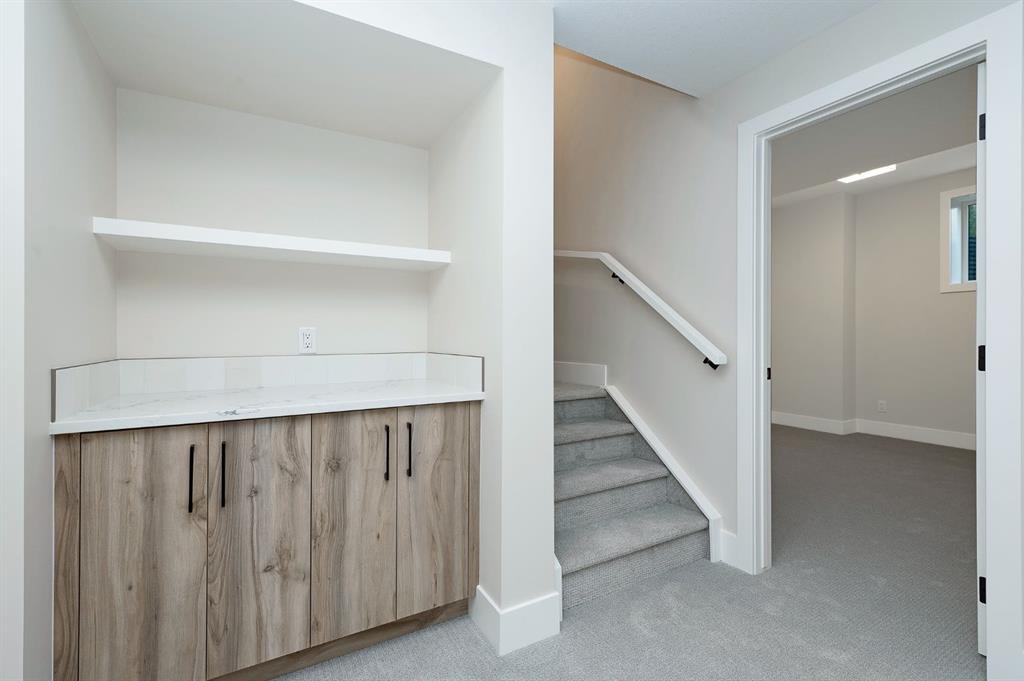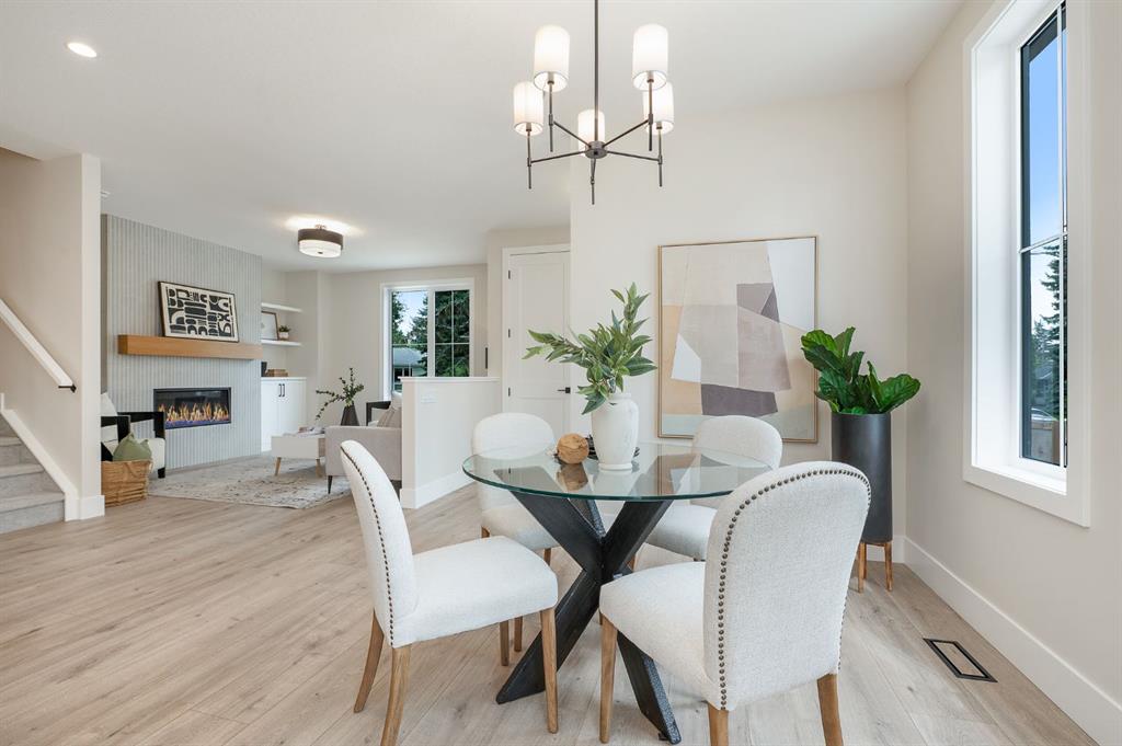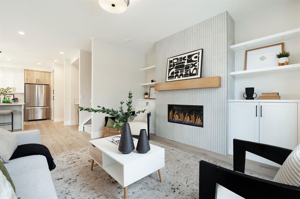 Beautifully designed and brand new, this 3+1 bedroom townhome built by Huber Homes in desirable Westgate offers over 2300 sq. ft. of developed living space with high-end finishes and modern comforts throughout! The open main level showcases, recessed lighting and a bright, airy floor plan. The kitchen is a true highlight, featuring a central island with eating bar, sleek cabinetry, stainless steel appliances and a stylish dry bar. A spacious dining area and inviting living room with gas fireplace complete the main floor — the perfect layout for everyday living and entertaining alike. Upstairs you’ll find 3 comfortable bedrooms, including a relaxing primary retreat with walk-in closet and spa-inspired ensuite with double sinks and contemporary finishes. Two good sized bedrooms, a full bath and conveniently located laundry room complete this level. The fully finished basement extends your living space with a generous family/media room, a fourth bedroom and a full bath — ideal for guests, teens or a home office setup. Additional highlights include a front deck with BBQ gas line, a single detached garage, and thoughtful design inside and out. Located just steps from schools, shopping, parks and transit, this home combines style, function and location in one of Calgary’s sought-after southwest communities.