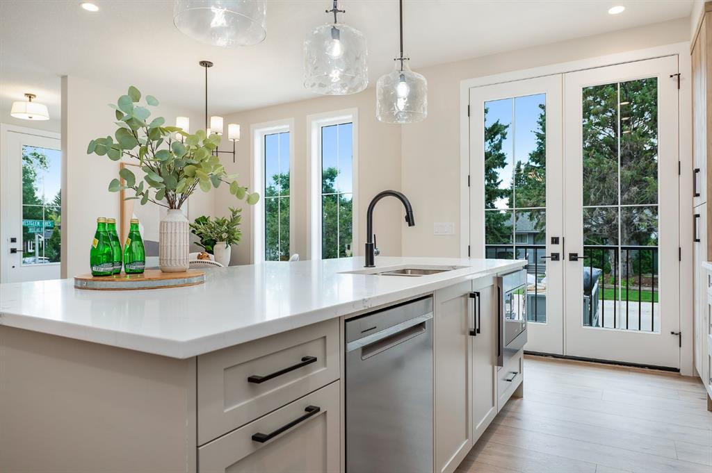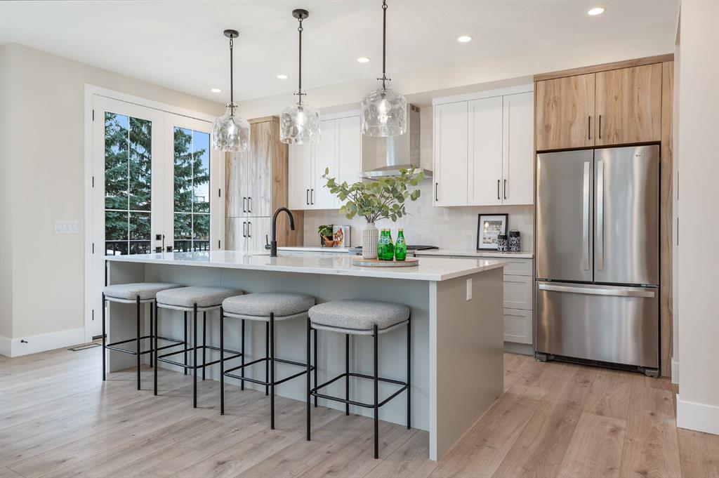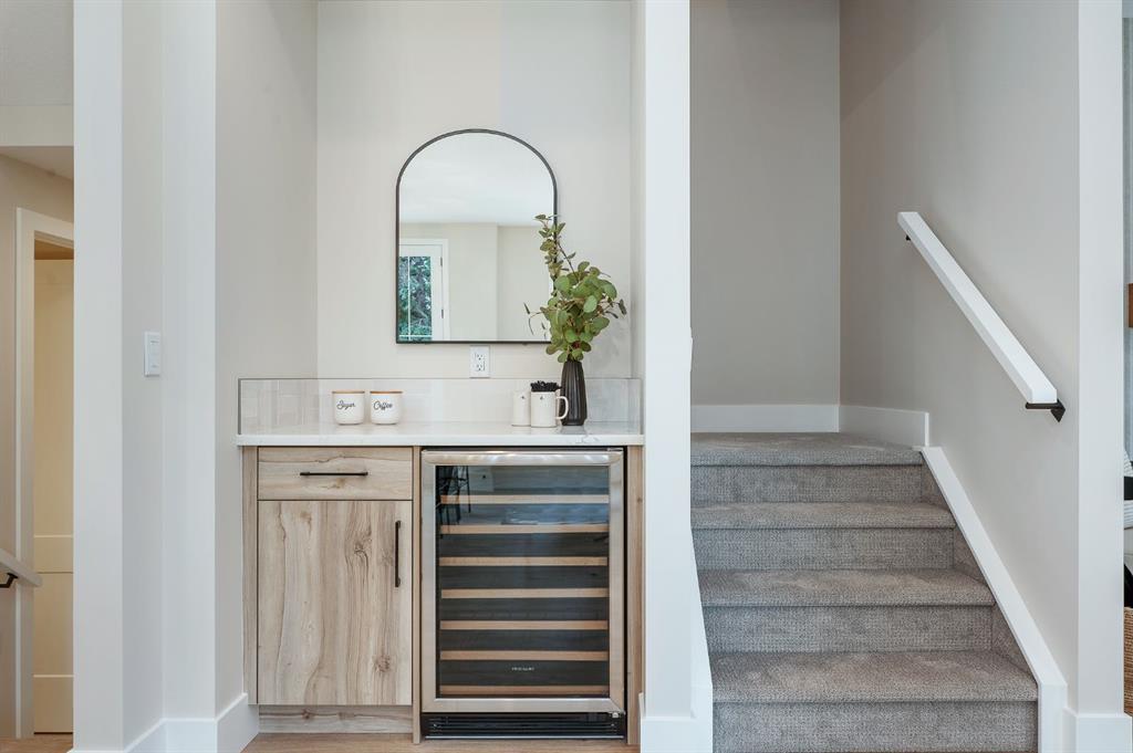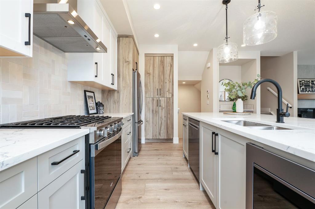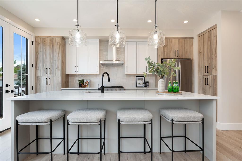 Beautifully designed and brand new, this 3+1 bedroom townhome built by Huber Homes in desirable Westgate offers over 2300 sq. ft. of developed living space with high-end finishes and modern comforts throughout! The open main level showcases, recessed lighting and a bright, airy floor plan. The kitchen is a true highlight, featuring a central island with eating bar, sleek cabinetry, stainless steel appliances and a stylish dry bar. A spacious dining area and inviting living room with gas fireplace complete the main floor — the perfect layout for everyday living and entertaining alike. Upstairs you’ll find 3 comfortable bedrooms, including a relaxing primary retreat with walk-in closet and spa-inspired ensuite with double sinks and contemporary finishes. Two good sized bedrooms, a full bath and conveniently located laundry room complete this level. The fully finished basement extends your living space with a generous family/media room, a fourth bedroom and a full bath — ideal for guests, teens or a home office setup. Additional highlights include a front deck with BBQ gas line, a single detached garage, and thoughtful design inside and out. Located just steps from schools, shopping, parks and transit, this home combines style, function and location in one of Calgary’s sought-after southwest communities.