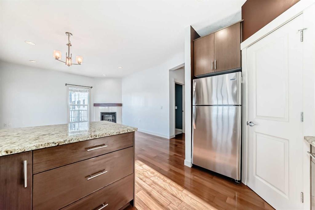 Welcome to “The Stanley”, nestled in the highly desirable community of Elboya! This bright & inviting 876 sq ft 2 bedroom condo offers a warm, open concept layout highlighted by large windows that fill the home with beautiful natural light, creating an ideal space for relaxing or entertaining. The stylish kitchen features granite countertops, stainless steel appliances, expresso cabinets, & a generous corner pantry-perfect for preparing your favourite meals or hosting friends. A cozy corner fireplace, high ceilings (knockdown), & in-suite laundry add to the comfort & convenience. Step outside to your private balcony with access to a shared terrace, offering extra room to enjoy morning coffee or summer evenings. The unit includes a heated underground parking stall in a wheelchair-accessible building. All of this in an unbeatable location-just steps to Stanley Park, close to Chinook Centre, schools, restaurants, the LRT, and only minutes to downtown. A wonderful opportunity to enjoy comfortable inner-city living in a truly exceptional community. Vacant and ready for a quick possession!