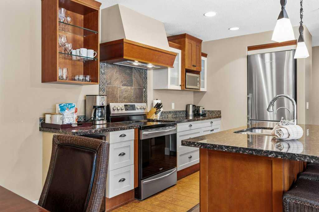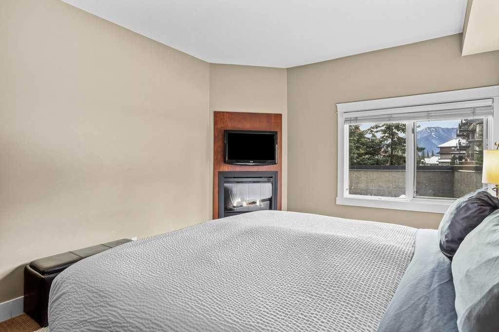 Luxurious Corner Unit at Solara Resort and Spa – Ideal for Short-Term Rental Investment; Experience a mountain escape like no other with this spacious 2-bedroom, 2-bathroom corner unit at the prestigious Solara Resort and Spa in Canmore. Spanning an airy 1,244 square feet, this luxurious property combines modern elegance with high-end finishes, creating a welcoming retreat ideal for both personal use and short-term rental investment. Upon entering, you'll be greeted by a large, open-concept layout enhanced by warm cork floors and abundant natural light. The thoughtfully appointed interior boasts a gourmet kitchen with sleek stainless-steel appliances, granite countertops, and ample storage, making it as functional as it is stylish. The living area and both bedrooms each feature their own cozy fireplace, adding to the unit’s charm and creating an inviting mountain ambiance. With a pull-out couch, the unit sleeps 6 guests. It is turnkey ready and comes fully equipped. Nestled in one of Canmore’s most sought-after complexes, guests enjoy an indoor pool, a fully equipped gym, and secure underground parking for added convenience. Just a short walk from downtown Canmore, this unit provides easy access to vibrant shopping, dining, and endless outdoor adventures, making it a highly desirable destination. Perfectly designed for Airbnb or personal use, this unit at Solara Resort represents a rare opportunity for investors seeking a lucrative rental property in a prime location. The sale price includes 5% GST tax which most buyers would be able to defer and not pay out. Consult your professional accountant!