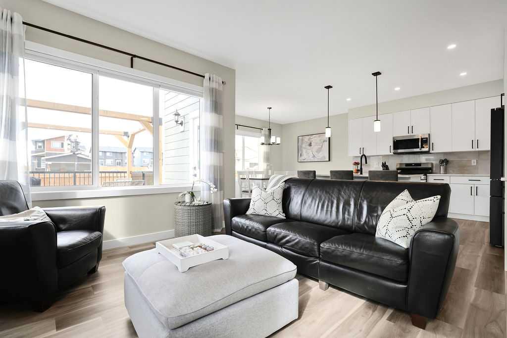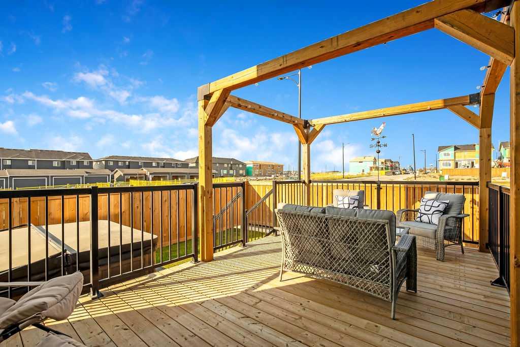 Welcome to this beautiful home in the new Waterford community of Chestermere, perfectly situated on a spacious corner lot with a double attached front garage. Thoughtfully designed and well maintained, this property offers a seamless blend of style, comfort, and functionality. Step inside to a bright, open-concept main floor featuring 9-foot ceilings and a versatile den—ideal for a home office or flex space. The stunning white kitchen is the heart of the home, complete with quartz countertops, premium cabinetry, a walk-through pantry, and a full stainless steel appliance package—perfect for both everyday living and entertaining. A separate side entrance leads to the basement, offering excellent potential for future development. The lower level is already thoughtfully planned with a layout in place and rough-ins for a bathroom. Upstairs, you’ll find a spacious bonus room along with three generously sized bedrooms. The primary suite features vaulted ceilings, a walk-in closet, and a luxurious 5-piece ensuite with dual sinks. Each of the additional bedrooms also includes its own walk-in closet, offering ample storage for the whole family. The backyard is fully landscapred and fenced with a deck, gazebo and BBQ gas line. Located just steps from shopping, amenities, and the scenic Chestermere Lake, this home delivers an ideal lifestyle for families and multi-generational living alike.