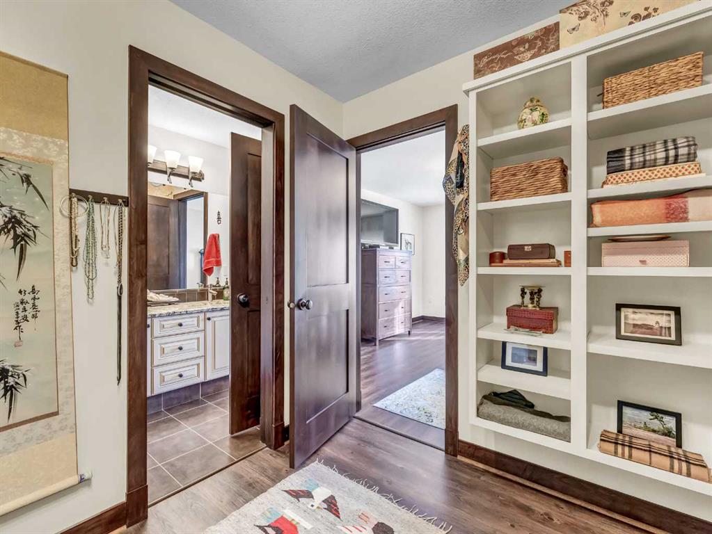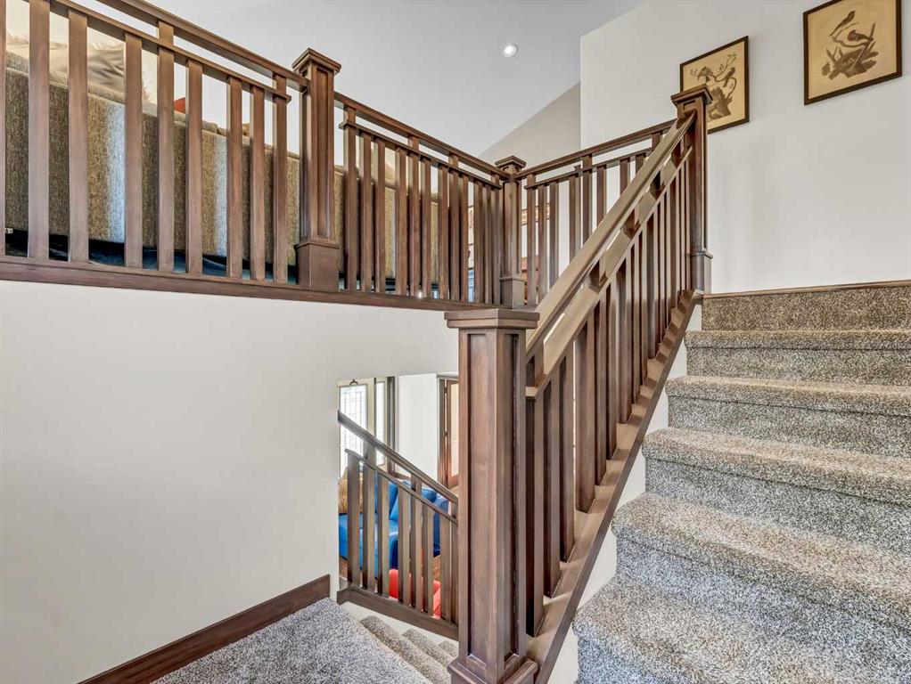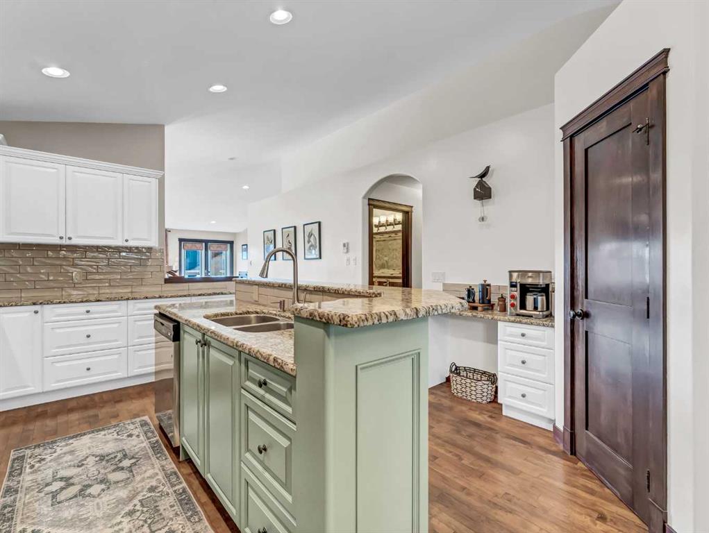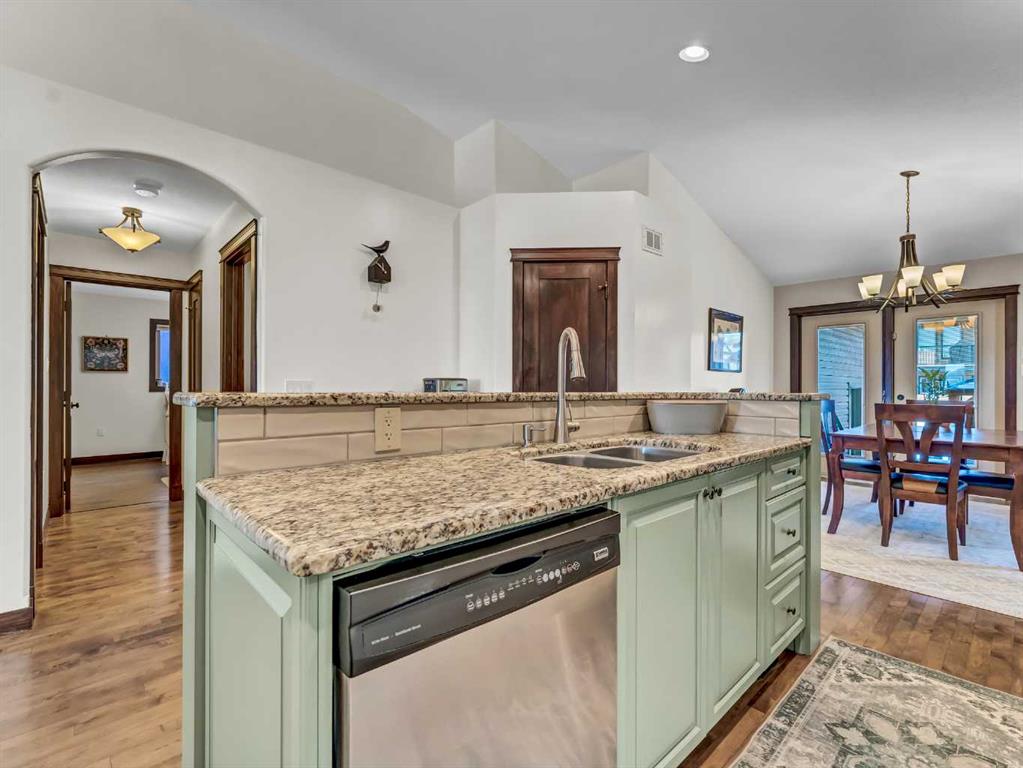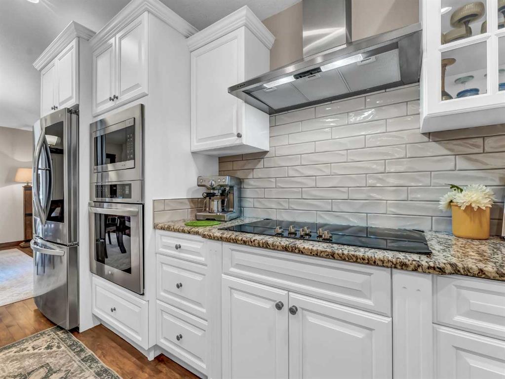 This stunning custom, Roth-built hillside bungalow offers 2,955 sq. ft. of beautifully updated living space with 5 bedrooms—2 on the upper level and 3 on the lower. The main floor showcases a spacious living room with new luxury vinyl plank flooring and access to a massive covered deck featuring breathtaking east-facing coulee and sunrise views. The recently renovated chef’s kitchen is a showstopper with two-toned cabinetry, eye-catching tile backsplash, granite countertops, an oversized island with seating, and high-end appliances including a wall oven, built-in microwave, smart fridge, and ceramic cooktop. Hardwood flooring flows through the kitchen and dining room, which comfortably accommodates large gatherings and offers access to a second covered deck with gas line overlooking the low-maintenance backyard. The primary bedroom is a serene retreat with luxury vinyl plank flooring, a large walk-in closet, and a spa-like 3-piece ensuite with walk-in shower, while a generous second bedroom and 4-piece main bath complete the upper level. A large mudroom connects directly to the heated, finished double attached garage for ultimate convenience. The lower level features the main entrance opening to an expansive family room with high-end vinyl flooring and a gas fireplace with updated surround, three spacious bedrooms with built-in closet shelving (one currently used as a den with opaque glass French doors), a 5-piece bathroom with double sinks, and a functional laundry room with sink and cold storage room adjacent. Numerous updates include shingles, furnace, flooring, appliances, and window coverings. There are also solid maple doors throughout this entire home! Outside, enjoy a grassy front yard and a maintenance-free concrete backyard with a beautiful gazebo and ample parking for an RV or boat—this exceptional home is truly move-in ready and ideal as your forever home.