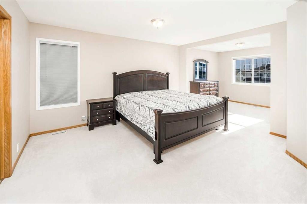Well maintained 2,240 sq ft two-storey home featuring 4 bedrooms on the upper level, ideally located on a quiet street with a west-facing backyard perfect for afternoon sun. The spacious primary bedroom offers a comfortable sitting area and a 4-piece ensuite with separate shower. The main floor features hardwood flooring throughout the hallway, family room, kitchen, breakfast nook and staircases, a cozy family room with gas fireplace and built-in bookshelves, plus a formal living room and dining room, ideal for family gatherings and entertaining. Functional kitchen with bright breakfast nook and direct access to the large backyard deck, perfect for summer BBQs. Main floor office/den and laundry add everyday convenience. The fully developed basement includes a large bedroom, huge recreation room with wet bar, hobby room and another 4-piece bathroom, offering plenty of space for family living or guests. New carpet on the main level (2026) and hot water tank replaced in 2021. Excellent location within walking distance to bus stops, playgrounds, parks and nearby shopping amenities.