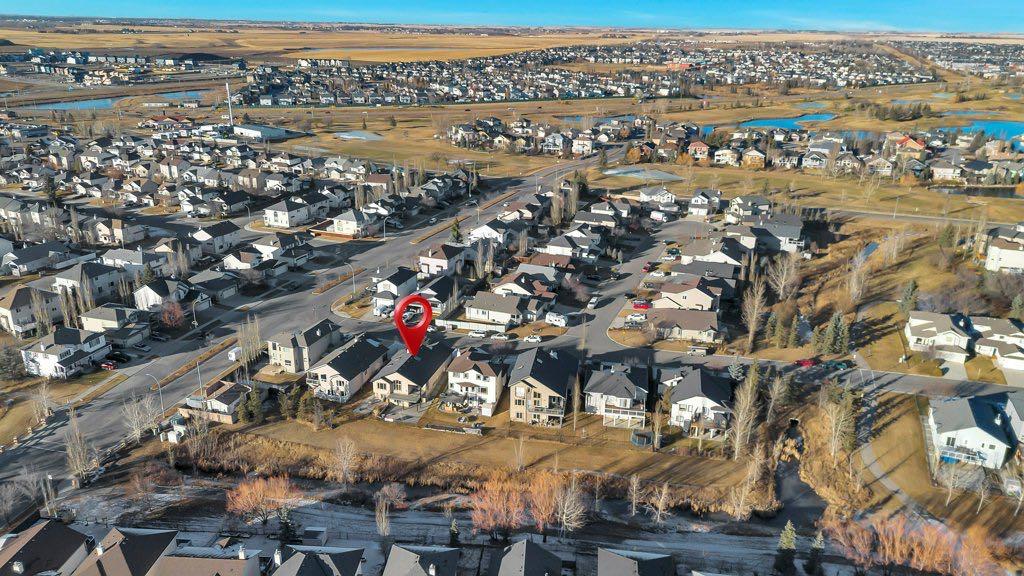 A Chestermere trifecta! 1.) Fully finished bungalow. 2.). Walk out basement. 3.) Backing onto tranquil green space and creek. Finding this combination is like finding a unicorn in the wild! Don’t miss your chance to call it home. This beautifully maintained home is located in the popular and established neighbourhood of West Creek where you’ll enjoy some of Chestermere’s most picturesque walking paths as well as close proximity to schools, shopping and more. This home has outstanding curb appeal with attractive and low maintenance landscaping plus a cozy and private covered front porch where you will love to curl up with a good book. As you step inside the spacious main foyer you’ll be wowed by the soaring ceilings complete with skylights flooding the space with natural light and a functional open floor plan. In the well equipped kitchen you’ll enjoy ample cupboard and counter space, gleaming stainless steel appliances, granite counter tops, raised breakfast bar and a walk through pantry. The kitchen is open to both the dining area and the living room which is kept cozy by the corner gas fireplace. Access your expansive upper deck from the dining area. It has been recently updated with Duradek vinyl and the covered section makes it perfect for year round grilling. Glass railings allow you to enjoy the view and there is plenty of room for outdoor dining and entertaining. This main level has 2 bedrooms including the primary retreat with vaulted ceilings and a window overlooking your peaceful view of the creek. In the bright and sunny 4 pc ensuite you’ll find a generous soaker tub and separate walk in shower. A walk in closet is conveniently located just across from the ensuite bath. At the front of the home is the second bedroom that would make a cozy and private home office or guest room. A 4 pc main bath and spacious laundry room round out this main level. A grand curved staircase leads you down to the lower level walk out which is an entertainers dream. There is tons of space for a games room, family tv area or whatever suits your needs. There are 2 more bedrooms down here that your teenagers or grandkids are going to love or you can use them as a home gym, craft room or space for your guests. Whatever suits your needs. A second gas fireplace and in-floor heating keep this space cozy and comfortable in the cooler months and 9' ceilings and tons of windows make it light and bright. There is still a ton of storage space left in the utility room. You’re going to love the South facing backyard with extensive exposed aggregate patio space, garden beds and no direct neighbours behind you. A double attached garage rounds out this amazing home keeping both you are your vehicles protected from the elements year round. Additional upgrades include central air conditioning, furnace in 2019dual hot water tanks, sump pump, water filtration & softener, electrical rough in for hot tub, gas hook up on deck, & a central vacuum system w attachments. You’re going to love living here!