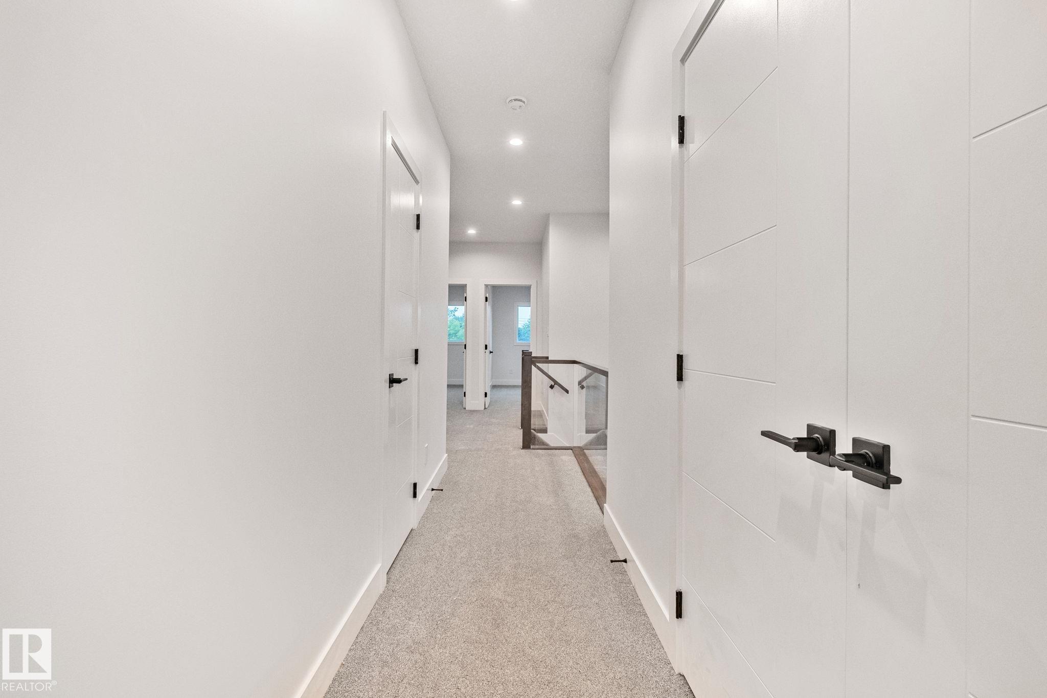 Welcome to this stunning brand-new architecturally designed 2-storey home in desirable Westmount. Featuring 5 bedrooms, 4 bathrooms, and a fully finished basement with separate entrance, this home offers space, style, and potential for a future legal suite. The main floor boasts 10 ft ceilings, triple-glazed windows for natural light, a spacious living room with elegant fireplace, chef-inspired kitchen with quartz countertops, large island with waterfall edge, premium finishes, bright dining area with west-facing deck access, and mudroom with built-ins. The double detached garage is accessed via the back lane. Upstairs offers a serene primary suite with walk-in closet and custom feature wall, two large bedrooms, full bath, and laundry. The finished basement has a rec room, two bedrooms, and full bath—ideal for extended family or suite. Prime location near downtown, U of A, and river valley.