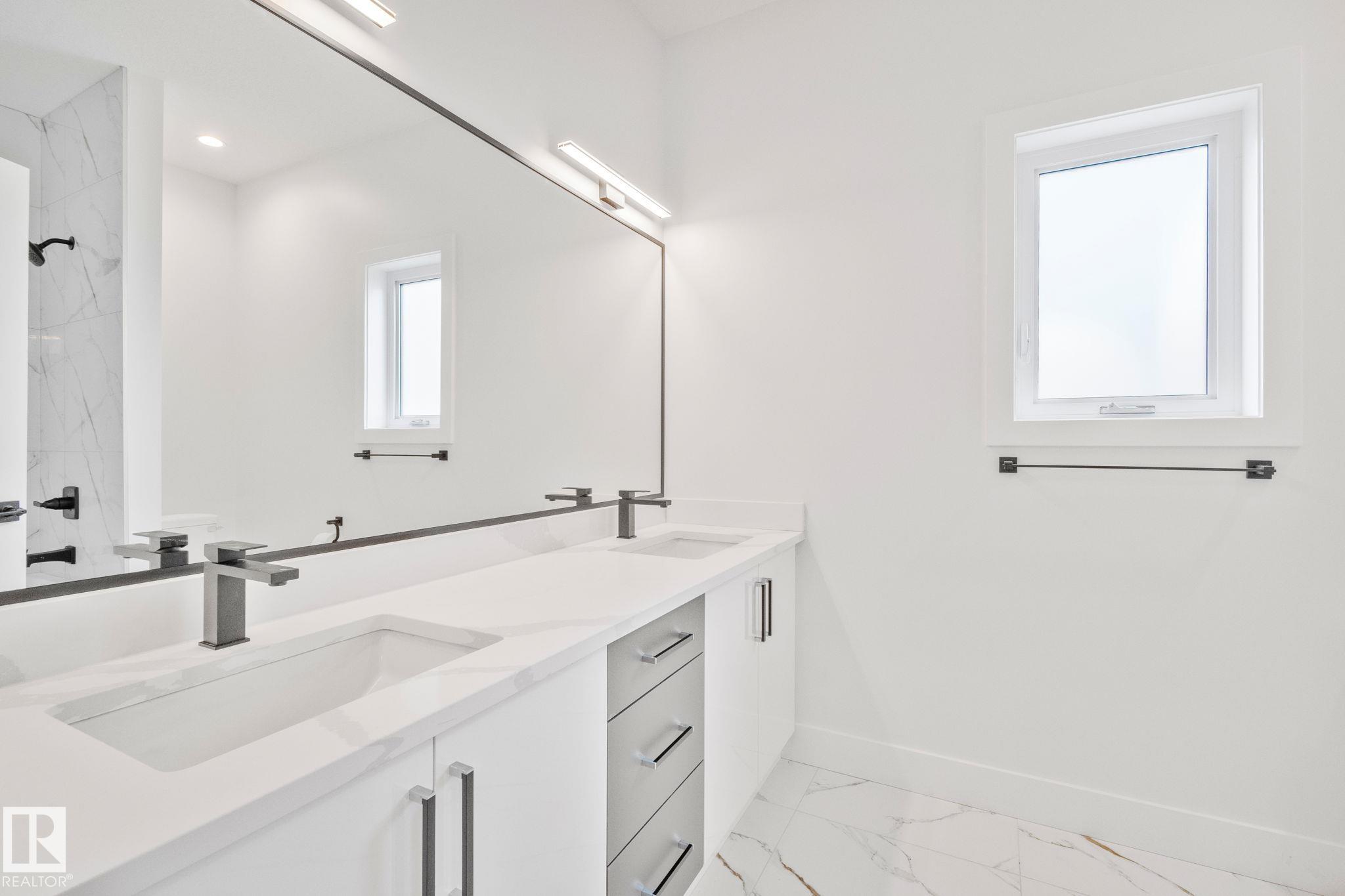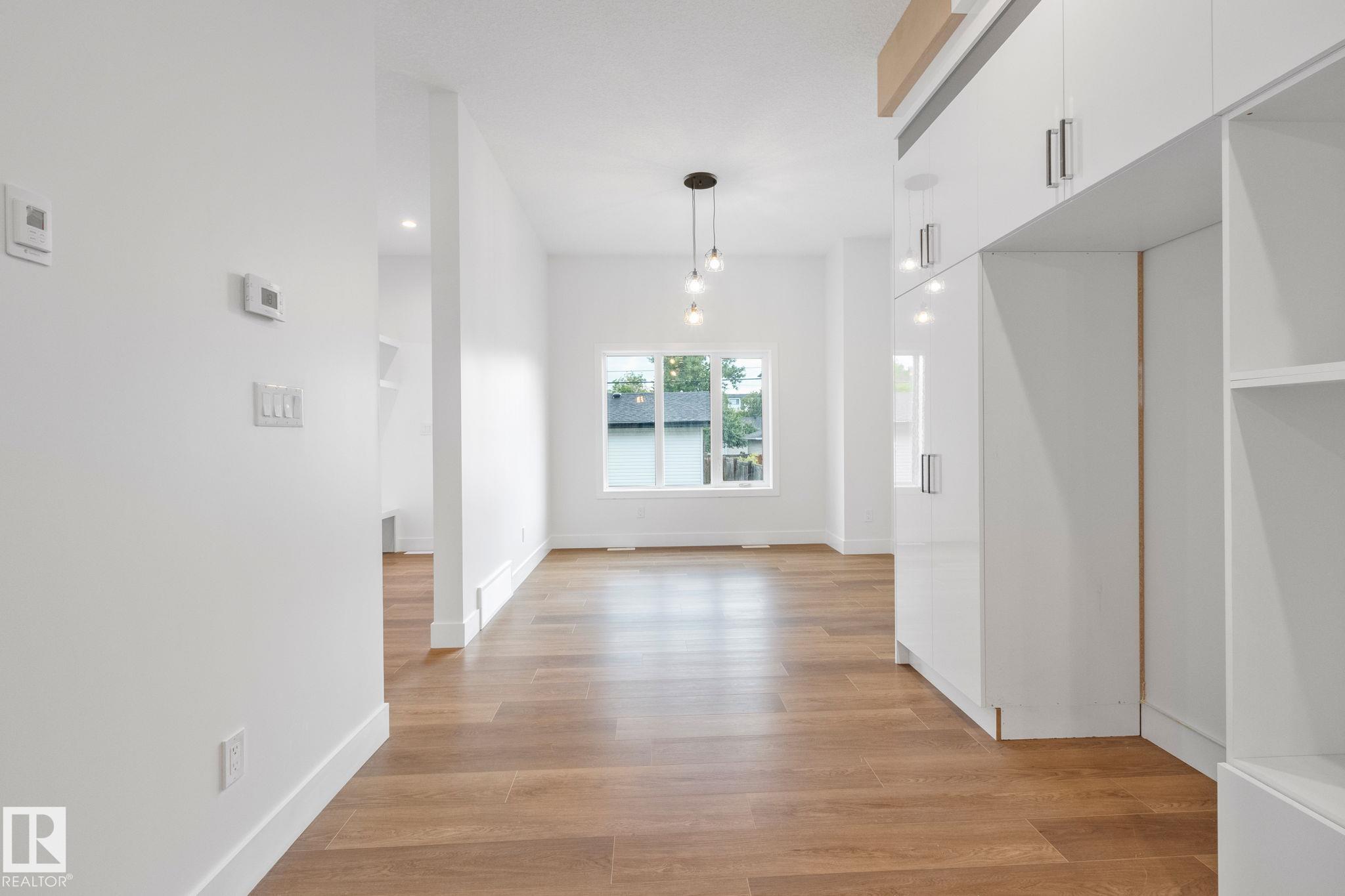 Welcome to this stunning brand new, architecturally designed 2-storey home in desirable Westmount! Featuring 5 bedrooms, 4 bathrooms, and a fully finished basement with separate entrance, this home offers space, style, and potential for a legal suite. The main floor features 10 ft ceilings, triple-glazed windows for natural light, a spacious living room with elegant fireplace, and a chef-inspired kitchen with quartz countertops, waterfall island, and premium finishes. Enjoy bright dining with access to the west-facing deck, plus a mudroom with built-in shelving and bench. The double detached garage is accessed via back lane. Upstairs offers a tranquil primary suite with walk-in closet and custom feature wall, 2 large bedrooms, full bath, and upper laundry. The basement provides a large rec room, 2 bedrooms, and full bath—ideal for extended family or future suite. Easy access to downtown, U of A, and the river valley.