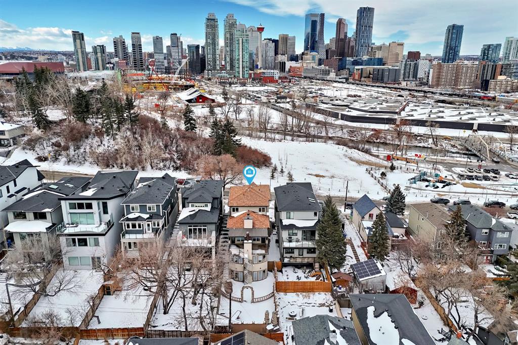 Step inside a home where everyday life feels extraordinary. Inspired by the romance and warmth of a Tuscan villa, this custom-built estate offers over 4,600 square feet of beautifully curated living space across four levels — each one designed for connection, retreat, and unforgettable moments. Nestled in vibrant Ramsay, you can stroll to river pathways, parks, the Stampede Grounds, or downtown Calgary, then return home to your own private sanctuary in the city. Arrival is an experience in itself. Cast iron stairs lead to a full-width porch and a charming alcove entrance, where a secure gated entry welcomes you with a sense of privacy and grace. Inside, the heart of the home unfolds. The chef’s kitchen — anchored by premium appliances, a generous island, built-in pantry, and sunlit breakfast nook — invites slow mornings and lively evenings. The dining area captures breathtaking city views, setting the stage for unforgettable dinners. Just a few steps down, the mezzanine living room glows with warmth from a wood-burning fireplace crowned by a striking bronze hood. Doors open to a heated deck with adjustable louvres — a seamless indoor-outdoor space designed for Calgary’s ever-changing seasons. The entire top floor is a retreat unlike any other. Your private primary sanctuary includes panoramic skyline views, a balcony for quiet mornings, a two-sided fireplace, cozy reading nook, dedicated office space, and a spa-inspired ensuite complete with steam shower and heated bench. It’s a space designed not just for rest, but for restoration. On the lower level, two private bedrooms with their own ensuites offer comfort and independence for family or guests. Downstairs, the fully developed walkout basement transforms entertaining into an art form — featuring a wet bar, gated wine cellar and tasting room, and a spacious recreation area that opens to a terraced courtyard. Outside, the villa-inspired stone garden becomes your personal escape. An elegant archway, wood-burning fireplace, outdoor kitchen, and handcrafted pizza oven create the perfect backdrop for long summer evenings and intimate gatherings under the stars. A terrific place to host a garden party. With two laundry areas, two wood-burning fireplaces, a custom home gym, heated triple garage with mudroom access, in-floor heating, a powerful 9-ton A/C system, exterior double spiral staircase, smart security, built-in sound, and updated mechanical systems(boiler replaced in 2024)— every detail has been thoughtfully considered. This is more than a home. It is a lifestyle — rich in warmth, privacy, beauty, and unforgettable moments. Book your experience today. Some of the rooms have been virtually staged.
