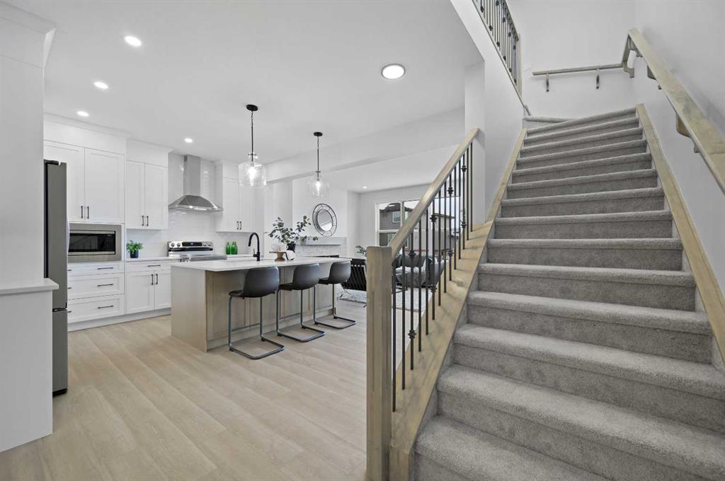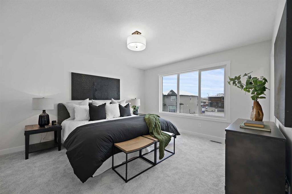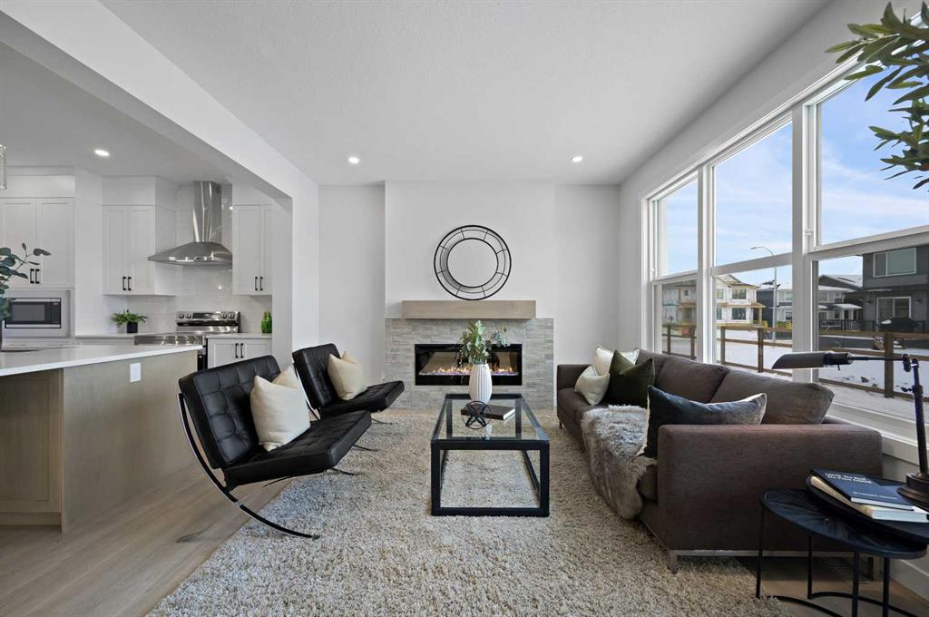 Welcome to 80 Fireside Common, a beautifully designed new build in the welcoming community of Fireside, Cochrane. Offering 2,182 sq. ft. of thoughtfully planned living space, this home combines modern comfort with small-town charm. The main floor features an open-concept design with 9’ ceilings, a spacious great room anchored by a modern fireplace, and a chef-inspired kitchen complete with quartz countertops, a beautiful two-toned cabinet design with stylish black hardware and a walk-in pantry. The dining area flows seamlessly into the living space, while a versatile flex room and a practical mudroom enhance everyday function. Upstairs, a bright bonus room provides a perfect gathering place. The primary suite is a private retreat with a large walk-in closet and an ensuite featuring dual sinks and a walk-in shower. Two additional bedrooms, each with its own walk-in closet, share a full bathroom, and the laundry room is conveniently located on this level. The lower level is built on a 9’ foundation and awaits your personal touch. Exterior details include a Craftsman-inspired elevation and a double-attached garage, offering plenty of parking and storage. Living in Fireside means enjoying tree-lined pathways, parks, playgrounds, and a true sense of community. Local schools, coffee shops, and everyday conveniences are just steps away, while downtown Cochrane is only minutes from your door. With the Rockies nearby and Calgary a short drive away, Fireside offers the best of both worlds: a small-town connection with city access. This brand-new home in Fireside is the perfect choice for families and anyone looking to enjoy both comfort and community in a sought-after location. *Area size was calculated by applying the RMS to the blueprints provided by the builder.