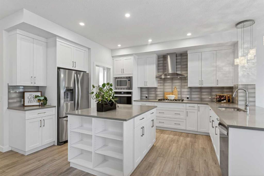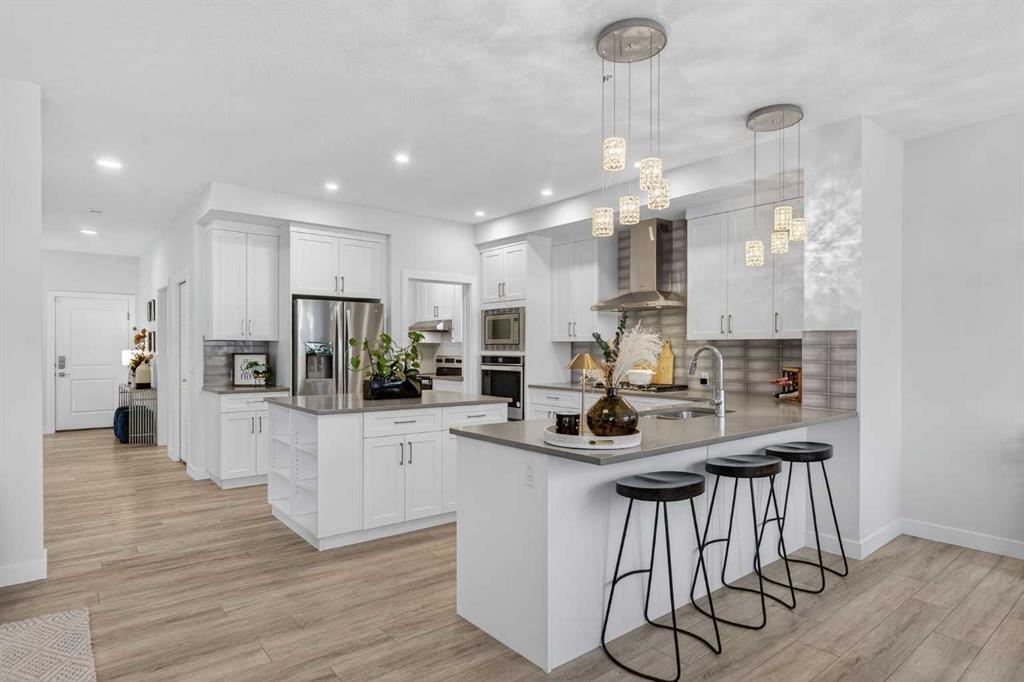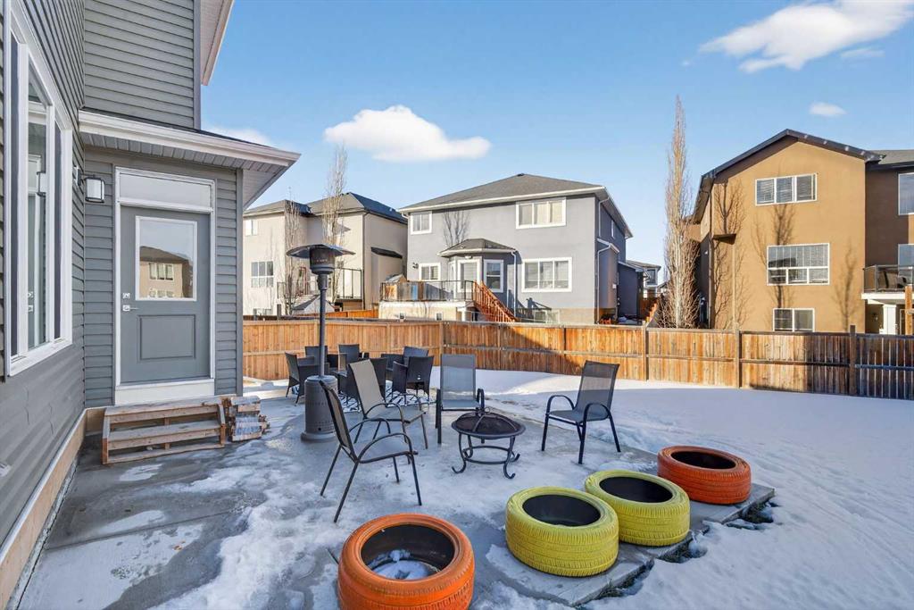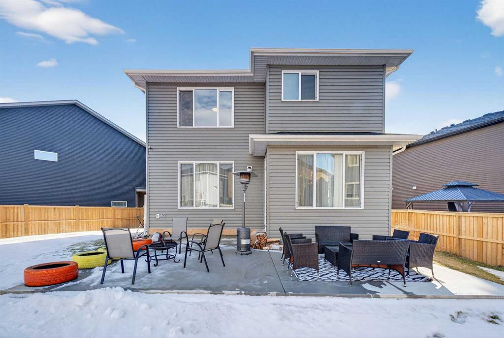 RARE 8,700+ SQ FT LOT | 2,638 SQ FT | 5 BEDROOMS & 3.5 BATHS | SPICE KITCHEN | 2 PRIMARY SUITES | SEPARATE ENTRANCE BASEMENT | 9 FT BASEMENT CEILINGS | HUGE CONCRETE DECK | FULLY FENCED YARD (2024) | OVERSIZED GARAGE | OVERSIZED DRIVEWAY | QUIET CUL-DE-SAC | WALK TO SCHOOL & PARKS. Welcome to this 2022-built detached home in the sought-after community of Kinniburgh in Chestermere. Offering 2,638 sq ft on a rare almost 8,800 sq ft lot, this home sits on a quiet cul-de-sac and features 5 bedrooms and 3.5 bathrooms, including a main floor bedroom —ideal for guests or multi-generational living. The executive U-shaped kitchen with large island, pantry, and separate spice kitchen flows into the bright open living and dining area with vinyl flooring throughout the main floor. Upstairs offers 4 spacious bedrooms including 2 primary suites with ensuites and walk-in closets. The unfinished basement with 9-ft ceilings and separate entrance offers excellent future development potential. Enjoy the huge landscaped and fully fenced backyard (2024) with a large concrete deck, plus an oversized garage and oversized concrete driveway. Walking distance to the elementary school, parks, and pathways.