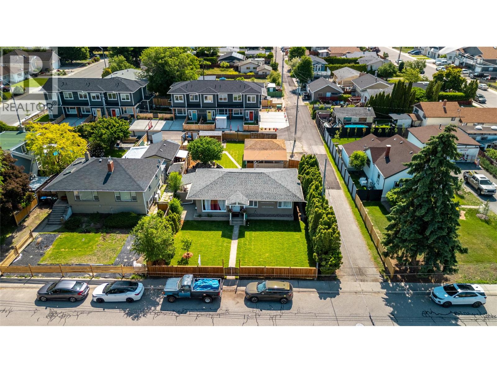 Discover charm, comfort, and exceptional potential in this beautifully maintained one-level home, offering 1,100 sq. ft. of bright, open-concept living with 3 bedrooms and 1 bathroom. Step inside to a stylishly renovated kitchen featuring quartz countertops, stainless steel appliances, and an inviting island perfect for gathering and entertaining. Fresh paint throughout, and delightful character built-ins add to the home’s warm and welcoming appeal. Take piece of mind knowing the roof, HWT and electrical (200 amp) have all been updated, but what truly sets this property apart is the impressive .178-acre lot, a rare find in such a central location. Thoughtfully landscaped and fully fenced, the outdoor space offers something for everyone: a cozy covered patio, firepit area for evenings with family and friends, a garden area, and fruit trees that bring seasonal charm. With R4-L zoning and frontage on two laneways plus the main street, the site is ideally positioned for future development opportunities. A single garage and covered carport complete the package adding ample parking, storage, and workshop space. Located in a sought-after central neighbourhood close to parks, shopping, OUC, transit, and all amenities, this property delivers the full Okanagan lifestyle with room to grow. Don’t miss this exceptional opportunity and contact us today for a full listing package or to book your private showing.