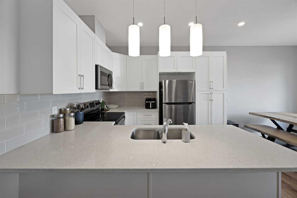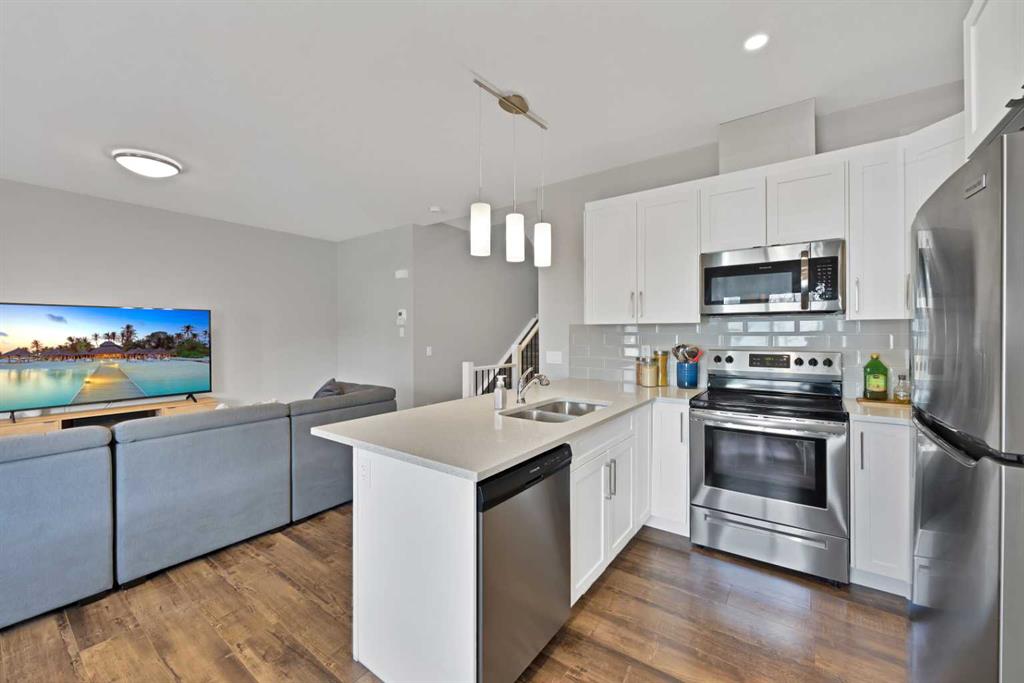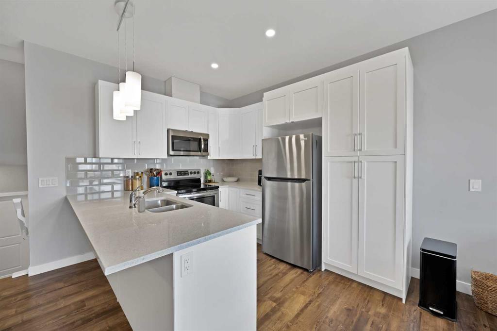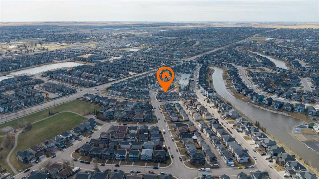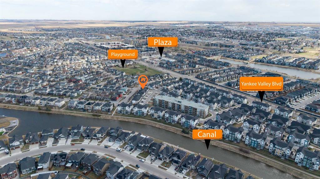 Location! Location! Location! Welcome to a well-maintained townhome in a central location within Airdrie’s coveted Canals community. From a walkability standpoint, you’re minutes from Midtown Plaza, Sobeys and a variety of shops, restaurants, and everyday amenities. Inside, this agronomically designed two-storey home features 3 bedrooms and 2.5 bathrooms, offering a layout that epitomizes comfort, convenience and functionality. The main floor is highlighted by 9-foot ceilings and a bright, open-concept design. The kitchen and dining area can accommodate full-sized furnishings and includes a peninsula with seating perfect for casual meals or entertaining. The spacious living room provides flexibility for a variety of furniture settings, a 2-piece powder room with access to the rear-attached garage completes the main level. Upstairs, you’ll find generously sized bedrooms, including a primary with a private ensuite. The upper level also offers a full main bathroom, a large laundry room. The unit offers ample parking- with an attached garage, a full driveway, visitor parking, and additional street parking. The complex also features green space, a picnic area, and a playground for residents to enjoy. A well-rounded home in a prime location—this is your opportunity to experience comfortable, convenient living in The Canals.