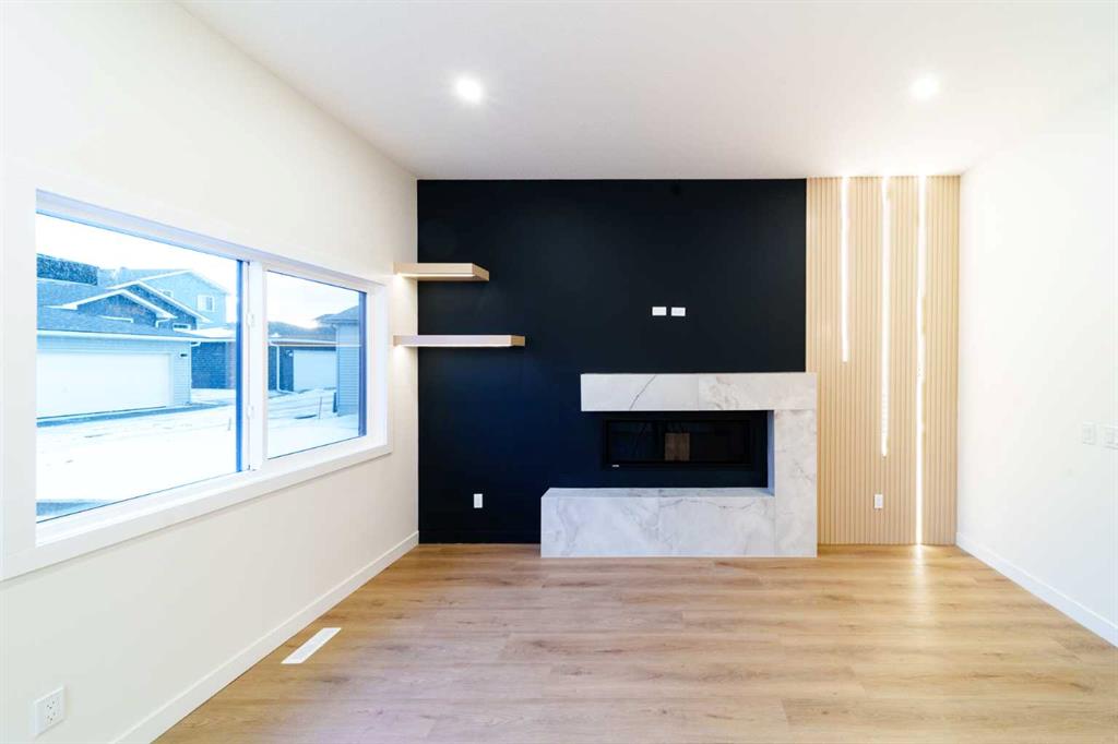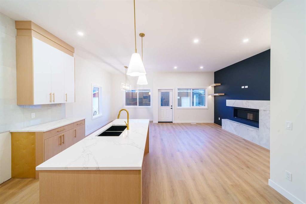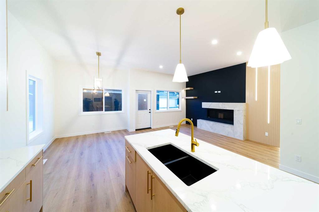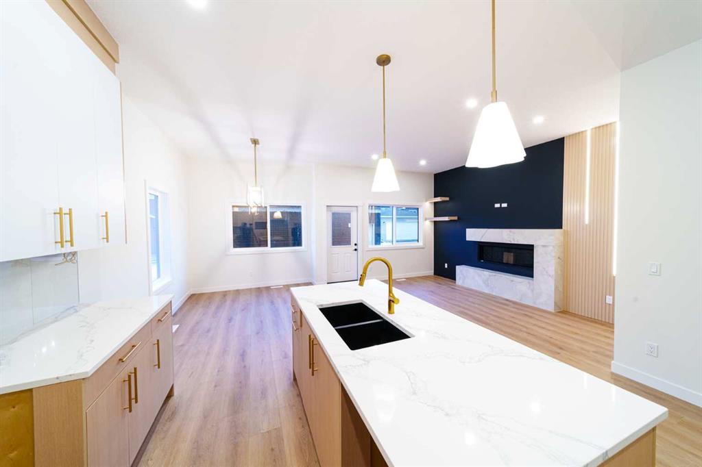Take a look at this custom-built home in the family-friendly community of Crossfield. This brand-new bungalow offers a total of 2,353 square feet of well-designed living space, with 1,323 square feet on the main floor and 1,030 square feet in the finished basement. Inside, you’ll find 10 foot ceilings on the main level and 9 foot ceilings in the basement, giving the home a bright and open feel. The main floor features a covered front porch, a large deck in the backyard, and an open concept layout that’s perfect for both relaxing and entertaining. The kitchen comes fully loaded with a big island, quartz countertops, premium stainless steel appliances, black hardware, high end lighting, and solid plywood shaker cabinets. The living room has a modern Montigo gas fireplace, and the space is finished with durable luxury vinyl plank flooring, Maple wood touches, and black dual pane windows that give it a modern look. The exterior includes a mix of stucco and stone finishes, all part of the included upgrades. The primary bedroom is a great place to unwind. It comes with a five piece ensuite and a walk in closet. There’s also a second bedroom on the main floor, plus a full four piece bathroom and a laundry room with a sink. Head downstairs and you’ll find even more space including a third bedroom with a walk in closet, a home office, a large rec room with a built in media center and shelving, a wet bar, and a fourth bedroom. There’s also a separate side entrance, perfect for privacy or future rental potential. Outside, there’s a double detached garage, a fully landscaped yard, and plenty of room to enjoy the outdoors. This home is located in the growing Iron Landing area, close to parks, playgrounds, shopping, and schools like Crossfield Elementary and W G Murdoch School. You’re also just a short drive from Airdrie (under 10 minutes), 25 minutes to Calgary, and close to Highway 2 for an easy commute. The home still have the chance to choose some of the finishes to make it your own. Photos shown are from a previous build. Visit our show home to get a feel for the quality and style. Reach out today to learn more or to book a visit.