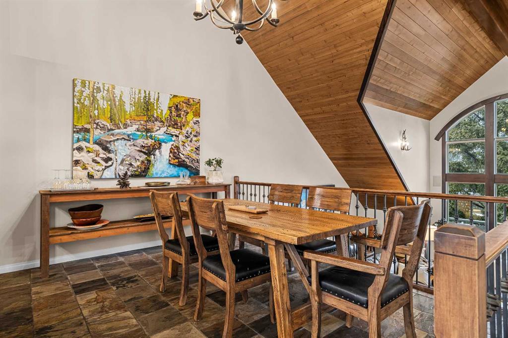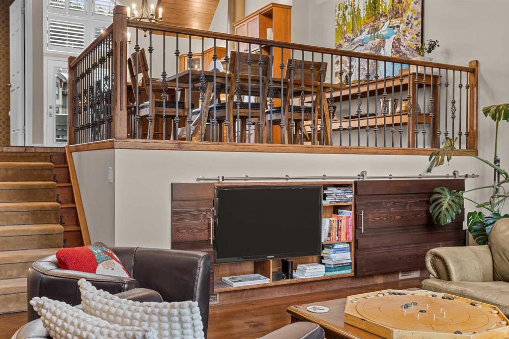 Luxurious End Unit Townhome in Exclusive Banff Neighbourhood - Tatanga Ridge I ! This spacious, 2,716 sq.ft. alpine styled three bedroom plus den home stands in a class of its own – offering a level of finish, charm and functionality unmatched by anything currently on the market. Tastefully upgraded from top to bottom, the home welcomes you on the main level with a large sunny south facing balcony with massive windows that flood the interior with natural light. At the heart of this level is a dream kitchen with granite countertops, undermount sink, brick backsplash, oversized Miele gas range, custom hood fan, and stainless fridge with French doors. This level is accentuated with beautiful slate flooring and custom lighting and includes the dining area, home office, powder room and roomy foyer. Striking vaulted ceilings, clad in rich tongue and groove pine planks and accentuated with prominent timber beams guide you down to an airy and warm living room with a floor to ceiling river rock wood burning fireplace, a cozy alpine feature. Grand windows and a wrap around deck capture incredible views of Norquay and Cascade mountains. Gorgeous wide plank Douglas Fir flooring in the living room and primary bedroom create warmth and comfort. The tranquil primary bedroom comes complete with a slate accented gas fireplace with timber mantle, private deck, and full spa like ensuite bathroom with soaker tub and separate enclosed steam shower. The versatile bonus room/den complete with gas fireplace, custom bar made from west coast Maple with live edge and wine rack offers the perfect setting for movie nights, quiet reading or watching the big game. The lower level consists of two roomy bedrooms, a full bathroom, and separate laundry room. Lastly, for all your mountain toys there is a large attached double car garage featuring epoxy-coated flooring and storage for your year-round adventure gear. For added safety a fire smart all metal roof sprinkler system has been installed to protect against possible wildfire. This home has everything you are looking for in a mountain home and more!