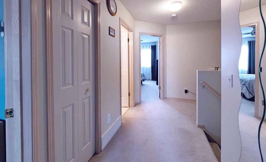 This beautifully maintained 3-bedroom, 2-bath townhouse in Shawnessy is move-in ready and offers exceptional value in a quiet, well-kept complex with no rear neighbors and serene views of green space. Located just minutes from playgrounds, schools, shopping, parks, restaurants, and transit—including the C-Train—this home combines convenience with tranquility. The spacious entrance opens into a bright living room with soaring 9' ceilings, large windows that flood the space with natural light, and a cozy tile-surround gas fireplace with a mantel. A few steps up, the dining area overlooks the private backyard and connects to a well-appointed kitchen featuring newer stainless steel appliances, ample cabinetry, and direct access to a generous deck surrounded by mature trees for added privacy. The fenced deck includes a built-in bench and BBQ area, perfect for entertaining. Upstairs, you'll find three comfortable bedrooms including a primary suite with a large walk-in closet, a full bathroom, and a versatile nook ideal for a small office or reading space. The basement offers plenty of storage along with laundry and utility rooms. Recent upgrades include new kitchen appliances, lighting fixtures, fresh paint throughout, newer windows, and new patio doors. The complex itself has seen improvements such as a new roof, updated exterior siding, and new porches. This unit comes with two parking stalls—one on your private driveway and another conveniently located across from the unit. With its exceptional cleanliness, thoughtful updates, and prime location, this home is a rare find you won’t want to miss. Directions: