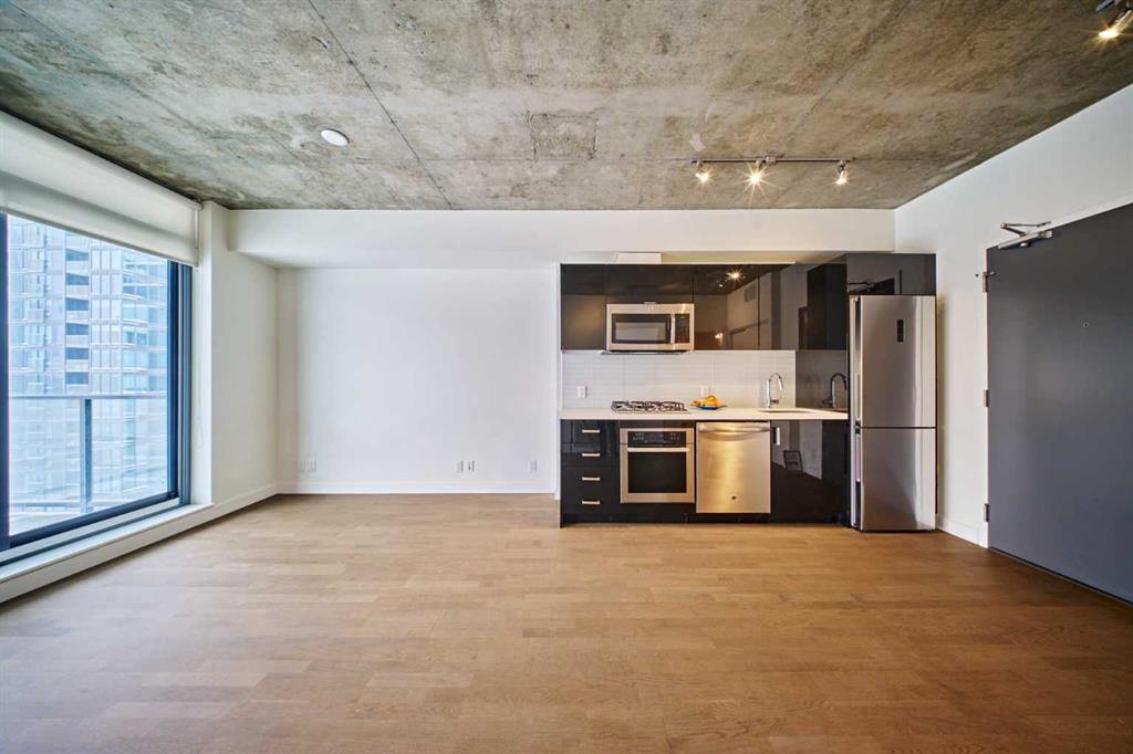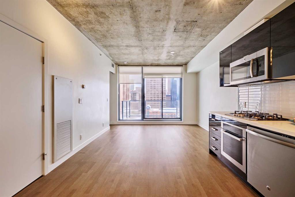 Welcome to 6th and Tenth, a modern high-rise ideally located in Calgary’s sought-after Beltline district. Combining contemporary architecture with an unbeatable central location, this property presents an exceptional opportunity for both homeowners and investors. Situated on the 12th floor, this thoughtfully designed one-bedroom unit offers an efficient layout that maximizes every square foot. Floor-to-ceiling windows fill the space with natural light and showcase impressive city views, including a clear sightline to the iconic Calgary Tower. The 9-foot exposed concrete ceilings add a stylish urban touch to the interior. Step out onto your private balcony, complete with a gas BBQ hookup—perfect for relaxing or entertaining while enjoying the vibrant city skyline. The sleek kitchen is both functional and elegant, featuring quartz countertops, stainless steel appliances, and a gas cooktop. In-suite laundry adds everyday convenience, making this home ideal for professionals, investors, or anyone seeking a low-maintenance downtown lifestyle. Residents enjoy access to outstanding amenities, including a Sky Garden Lounge with an outdoor pool, a fully equipped fitness centre, a landscaped terrace, secure bike storage, and 24-hour concierge and security services. Located just steps from the CORE Shopping Centre and surrounded by popular restaurants and cafés, this home also offers easy access to Prince’s Island Park and the Bow River pathway system—perfect for walking, running, or cycling. Public transit is conveniently nearby, with bus stops and LRT stations just minutes away, making commuting effortless. This is a rare opportunity to own in one of Calgary’s most vibrant and desirable downtown communities.