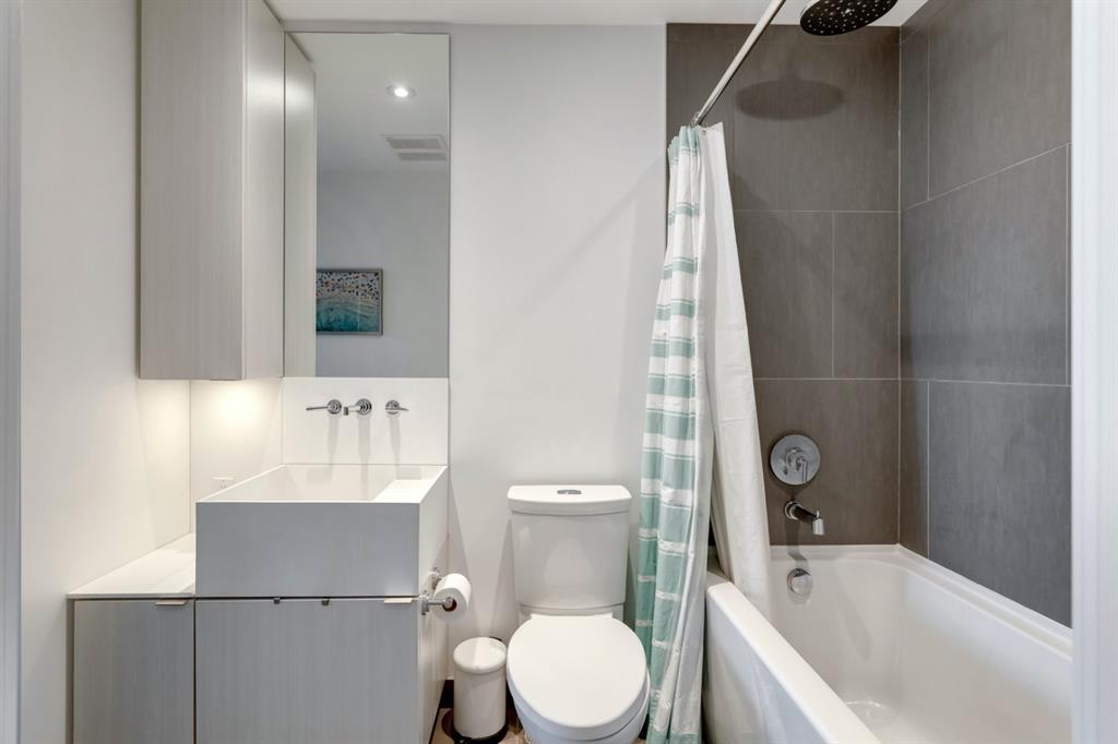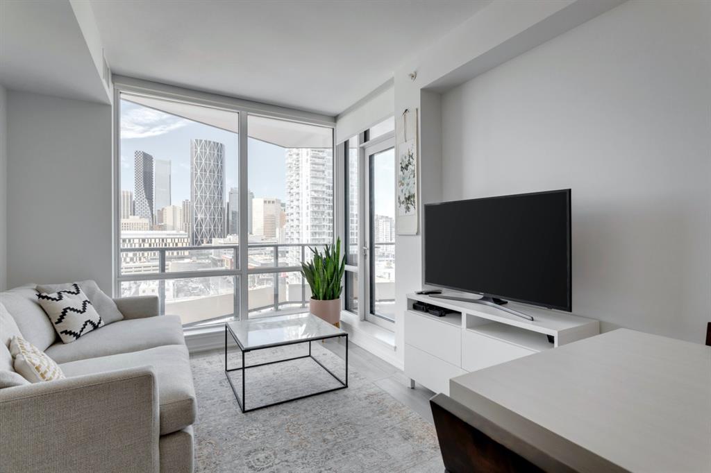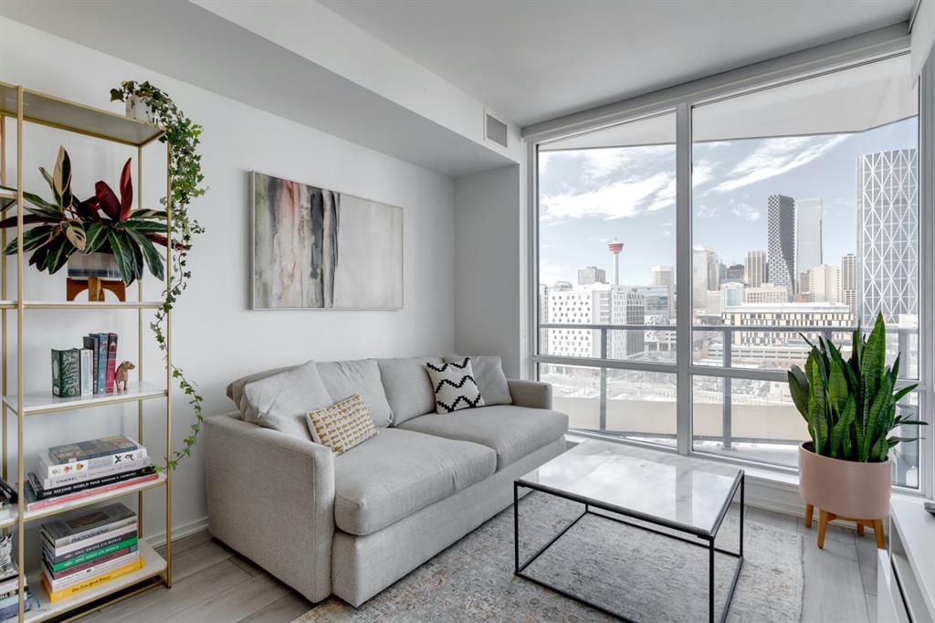 City lights, mountain views, and world-class dining and entertainment await at the ultra-modern Verve in Downtown East Village. This one-bedroom plus massive den showcases contemporary design by Cecconi Simone, with thoughtful finishes throughout. The Euro-inspired kitchen features stainless steel built-in appliances and quartz countertops, while the sleek bathroom is finished with oversized floor-to-ceiling tile. Expansive windows flood the home with natural light and frame sweeping city and mountain views. Pets are allowed at the Verve but none have lived in this space. The striking exterior combines fritted glass, colourful vertical accents, and geometric balconies, creating one of East Village’s most recognizable towers. Inside, residents and guests are welcomed by a sculptural fireplace and in-house WiFi in the lobby. Amenities are designed for both relaxation and entertaining. Work out in the fitness studio, unwind in a cabana beside the Zen garden, or gather around the outdoor fire pit after an evening walk along the river. The party room kitchen and resident lounge provide the perfect setting to host friends and celebrate special occasions. Step outside and discover everything East Village has to offer, all within walking distance. The world-renowned Central Library and Studio Bell, home of the National Music Centre, are just moments away, along with groceries, acclaimed restaurants, and scenic bike paths that follow the Bow River. One of Calgary’s most dynamic and evolving neighbourhoods, East Village is colourful, sophisticated, vibrant, and full of energy—an urban community that truly has it all.