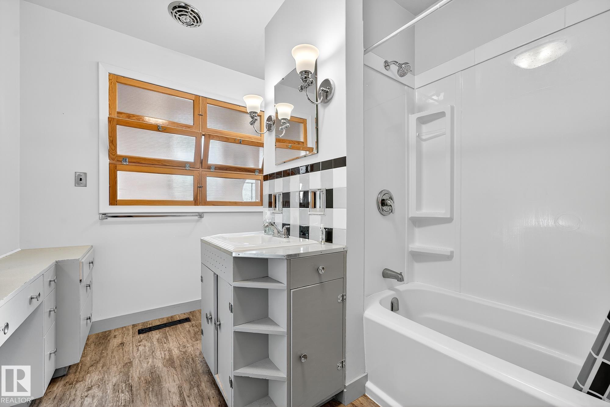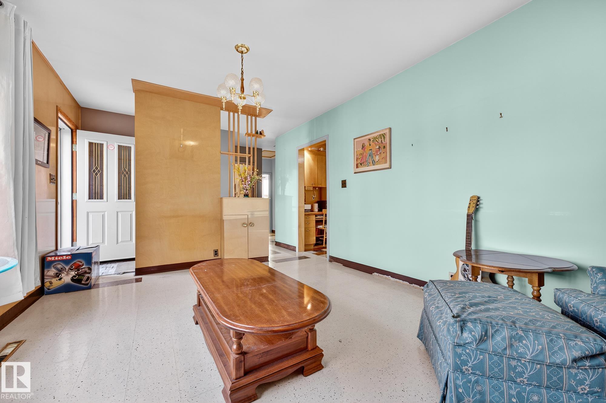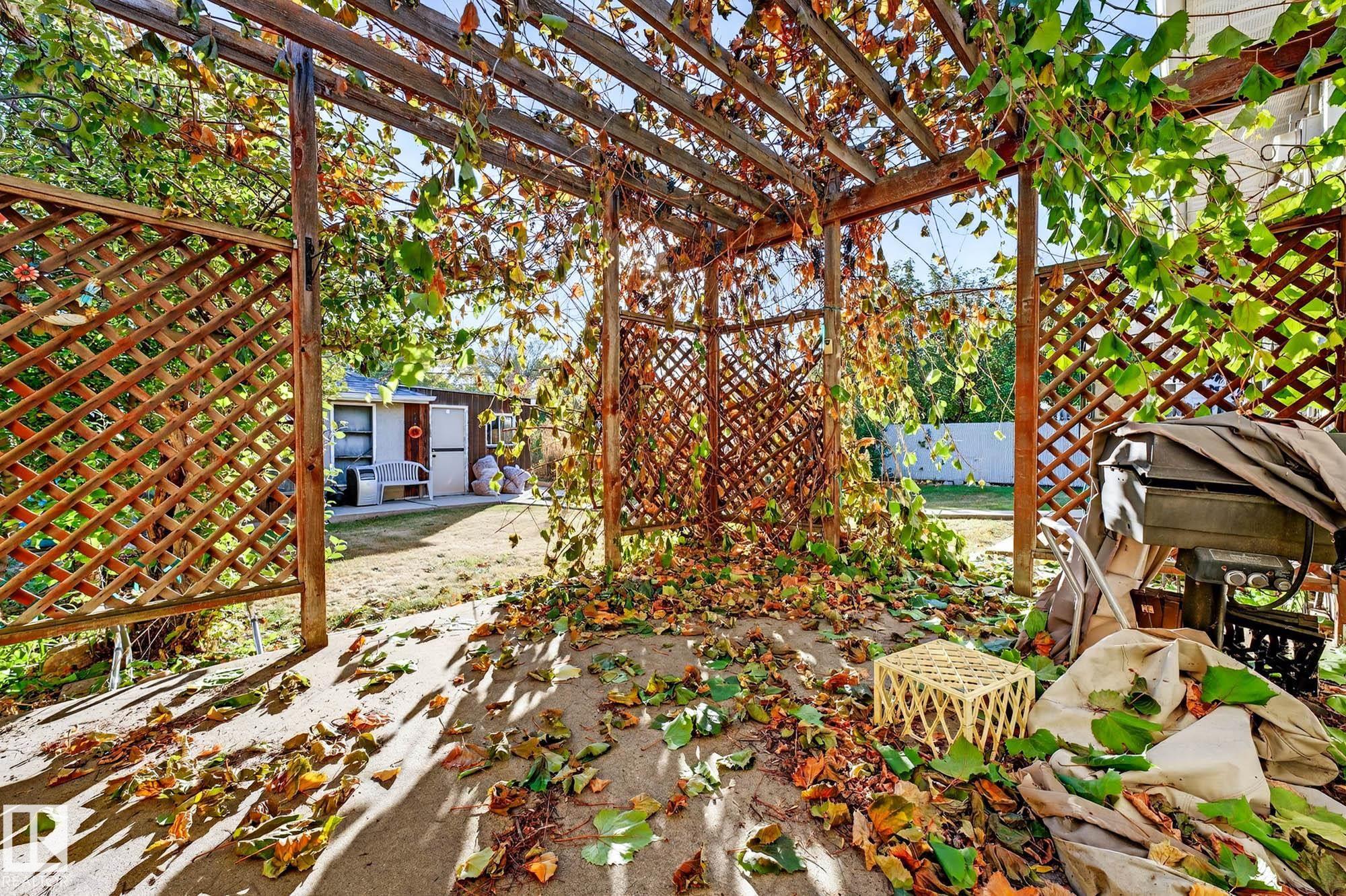 Opportunity knocks! This home offers a chance to update and make it your own in a lovely, mature neighbourhood. As you enter the home, you are greeted with a bright front living room. It is adjacent to the kitchen with a convenient servery and plenty of storage. The eat-in dining area provides a cozy space for family meals. Down the hall are two spacious bedrooms and a 4 piece main bathroom. The partially finished basement includes a 3 piece bathroom and offers great potential for future development. Outside, enjoy a large, fully fenced backyard with double detached garage, greenhouse, shed, and a generous garden area. Located in the neighbourhood of Westwood, this home is close to schools, shopping, restaurants, and NAIT campus.