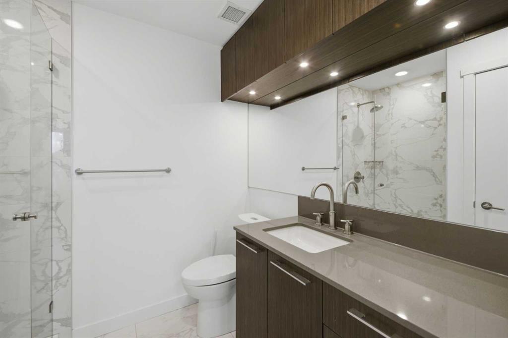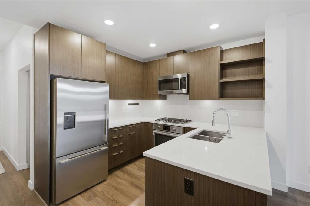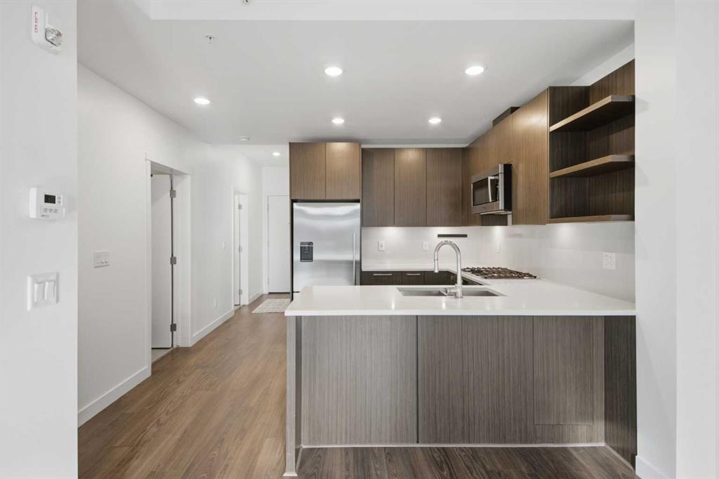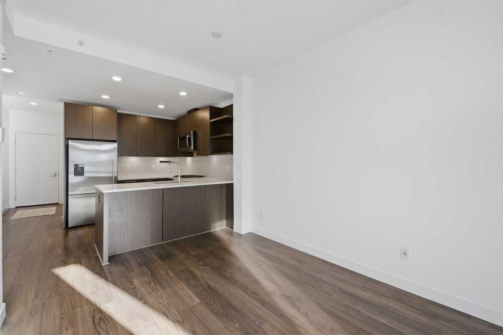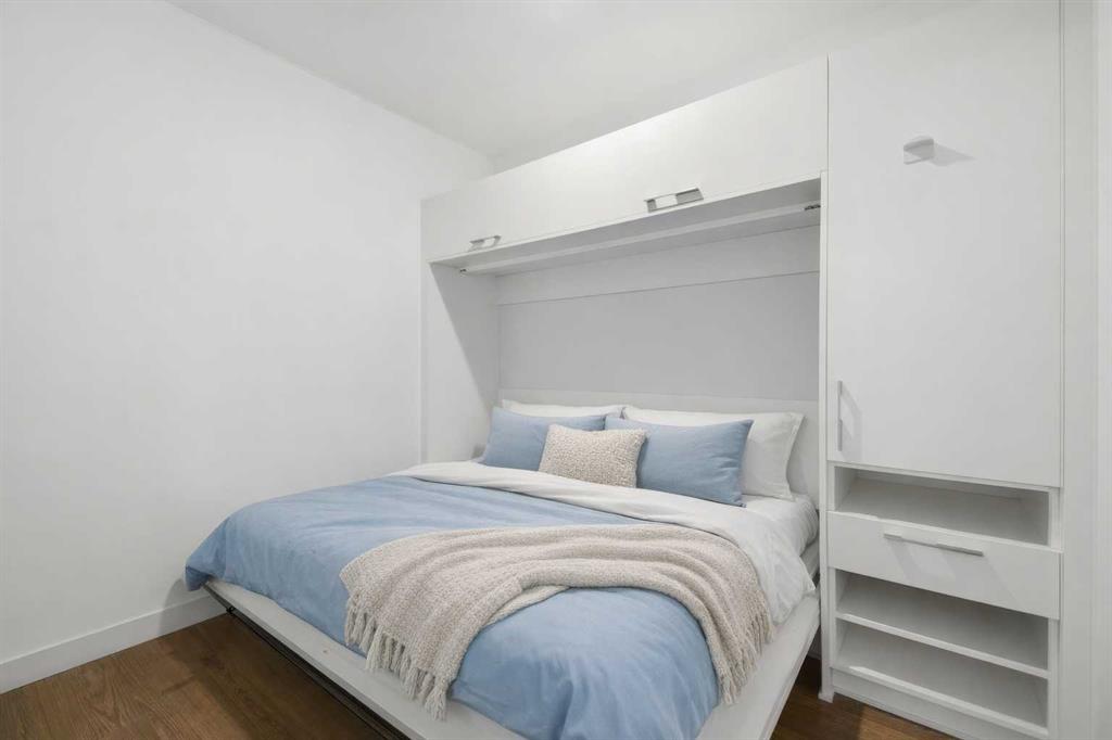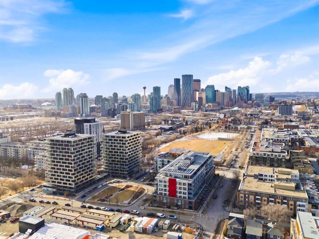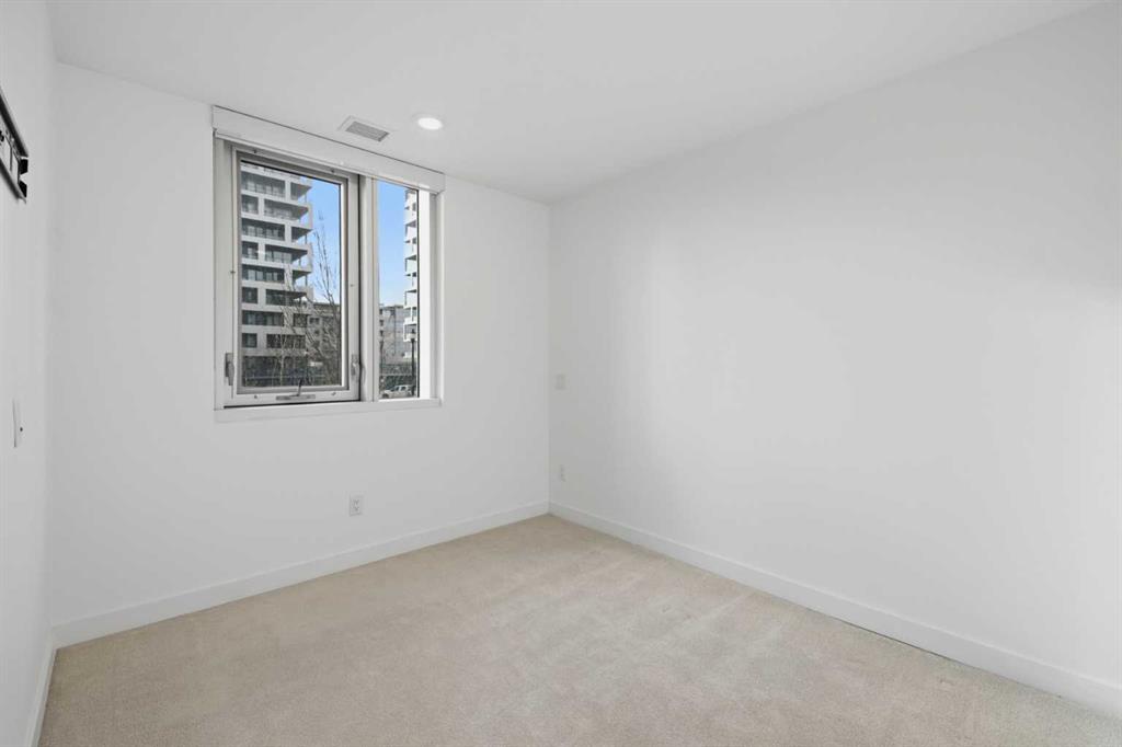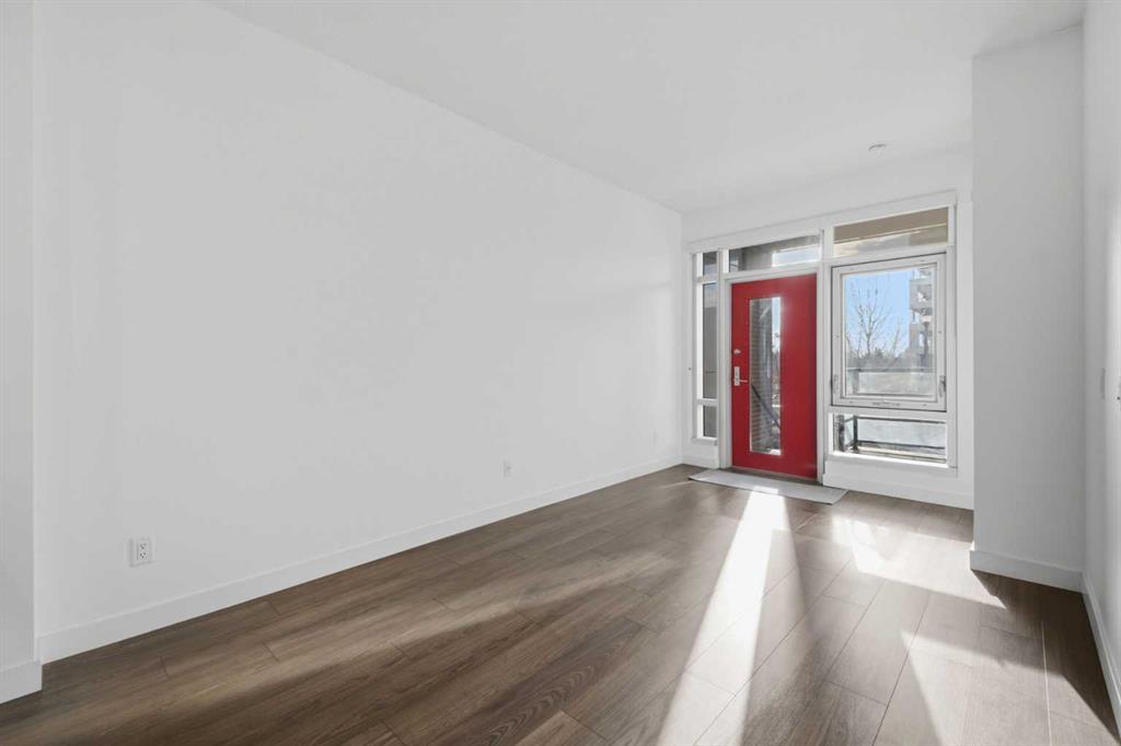 **OPEN HOUSE 1-3 PM SUNDAY 1ST FEB** This GROUND-FLOOR TWO BEDROOM, TWO BATHROOM home offers a rare layout with a PRIVATE EXTERIOR ENTRANCE. Inside, the layout is OPEN AND FUNCTIONAL, with LARGE WINDOWS bringing in steady natural light throughout the day. The living and dining areas connect directly to TWO SPACIOUS PATIOS, providing excellent outdoor space for daily use, entertaining, or pets. The KITCHEN is clean and modern with STREAMLINED CABINETRY, CONTEMPORARY FINISHES, and a FULL-WIDTH ISLAND that works well for meals and gathering. The PRIMARY BEDROOM includes a WALK-THROUGH CLOSET leading to a private ENSUITE BATHROOM. The SECOND BEDROOM features a BUILT-IN MURPHY BED, allowing the room to function comfortably as a bedroom, office, or flex space. Additional features include IN-SUITE LAUNDRY, AIR CONDITIONING, an OVERSIZED CORNER TITLED UNDERGROUND PARKING STALL , SEPARATE STORAGE LOCKER, and SECURE BIKE STORAGE. The building offers a wide range of shared amenities, including TWO FITNESS ROOMS, YOGA STUDIO, SPIN STUDIO, ROOFTOP PATIO, CAR WASH, and DOG WASH STATION. Gyms located on Floors 1 and 3; yoga and spin studios on Floors 4 and 5; bike storage, storage locker, and dog wash on P1; parking on P2. Located in BRIDGELAND, the property is within walking distance to RESTAURANTS, COFFEE SHOPS, GROCERY STORES, PARKS, and the C-TRAIN STATION, offering practical access to daily amenities and transit. Well suited for OWNER OCCUPIERS OR INVESTORS seeking a low maintenance property with strong functionality and location.