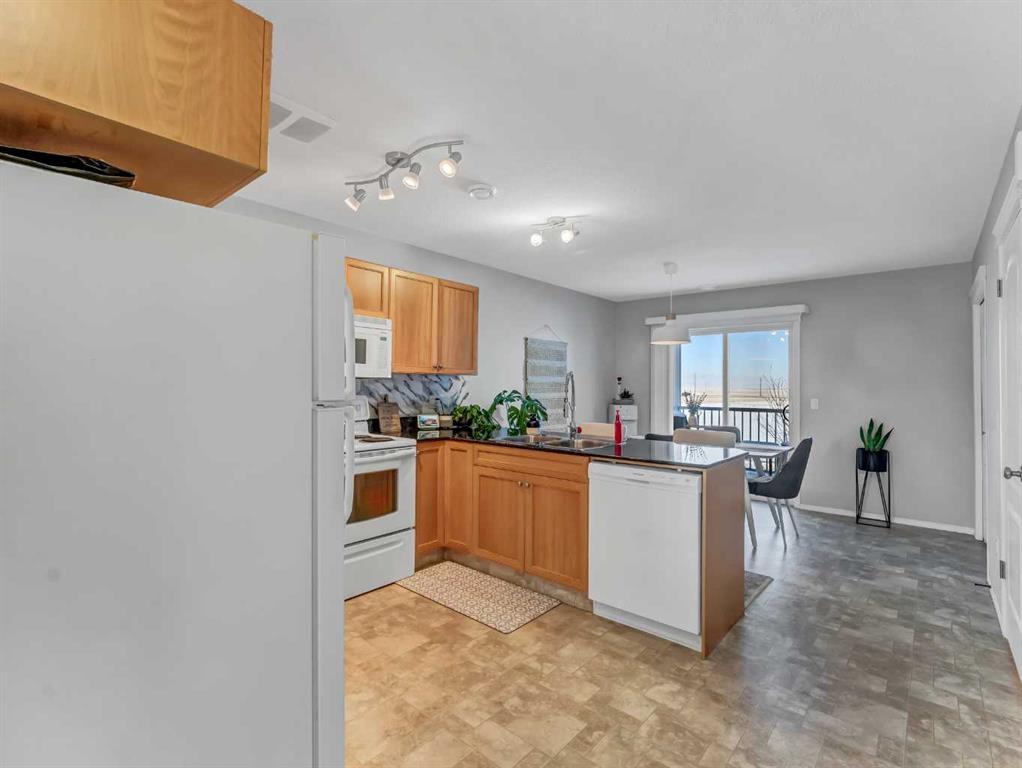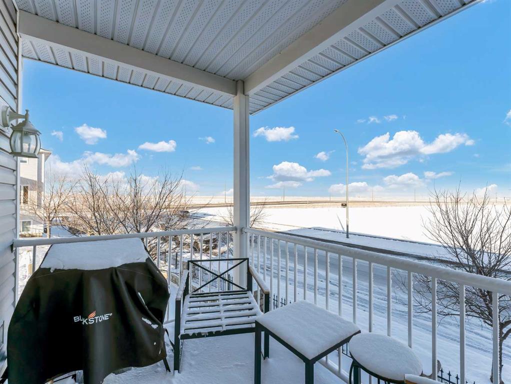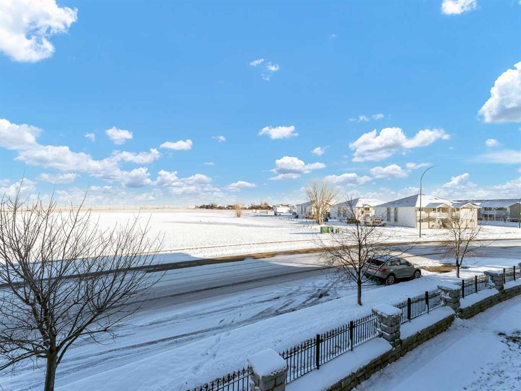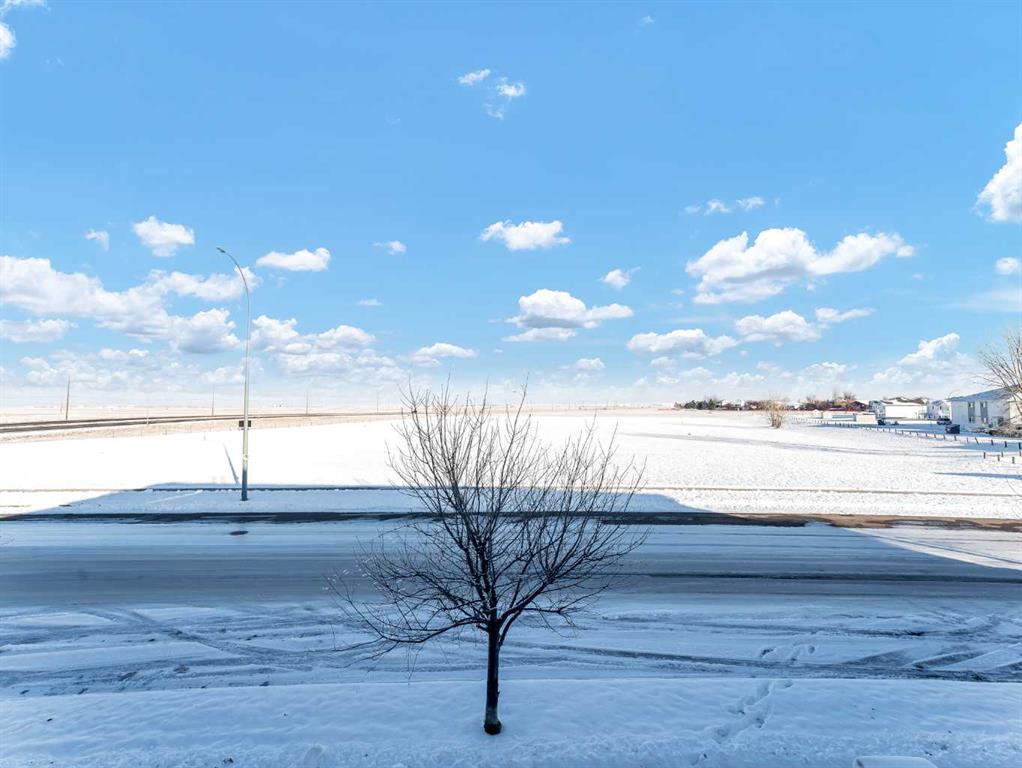 END UNIT CONDO WITH A VIEW—PLUS 2 PARKING STALLS (1 ELECTRIC)! Tucked into a very quiet corner of the complex, this well-maintained and truly loved end unit offers comfort, convenience, and beautiful prairie views. You’re welcomed by a spacious entrance that flows into a cozy living room and a generously sized kitchen/dining area. The kitchen features abundant cabinetry and counter space, complete with granite countertops. The main floor also includes additional storage under the stairs, a convenient 2-piece bathroom, and access to a private deck with extra storage and sweeping views of the open prairies. The upper level offers two good-sized bedrooms, including one with a walk-in closet, an upper-level laundry area, plenty of storage, and a large 4-piece bathroom. Condo fees of $276.06 cover heat, water, trash, snow removal, grounds maintenance, professional management, and reserve fund contributions. This pet-friendly complex (with board approval) has no age restrictions. Located within walking distance to a grocery store, pharmacy, gas station, and the Big Marble Go Centre, this home offers exceptional convenience. At a great price and in a fantastic location, you can finally enjoy the maintenance-free lifestyle you’ve been looking for.