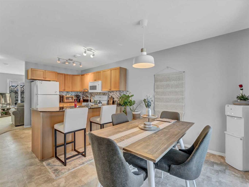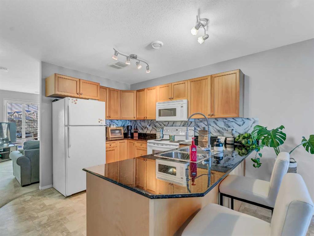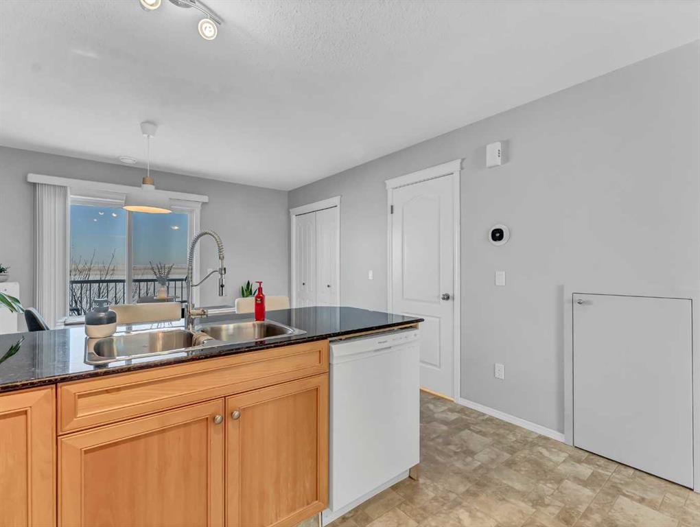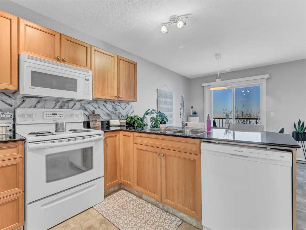 END UNIT CONDO WITH A VIEW—PLUS 2 PARKING STALLS (1 ELECTRIC)! Tucked into a very quiet corner of the complex, this well-maintained and truly loved end unit offers comfort, convenience, and beautiful prairie views. You’re welcomed by a spacious entrance that flows into a cozy living room and a generously sized kitchen/dining area. The kitchen features abundant cabinetry and counter space, complete with granite countertops. The main floor also includes additional storage under the stairs, a convenient 2-piece bathroom, and access to a private deck with extra storage and sweeping views of the open prairies. The upper level offers two good-sized bedrooms, including one with a walk-in closet, an upper-level laundry area, plenty of storage, and a large 4-piece bathroom. Condo fees of $276.06 cover heat, water, trash, snow removal, grounds maintenance, professional management, and reserve fund contributions. This pet-friendly complex (with board approval) has no age restrictions. Located within walking distance to a grocery store, pharmacy, gas station, and the Big Marble Go Centre, this home offers exceptional convenience. At a great price and in a fantastic location, you can finally enjoy the maintenance-free lifestyle you’ve been looking for.