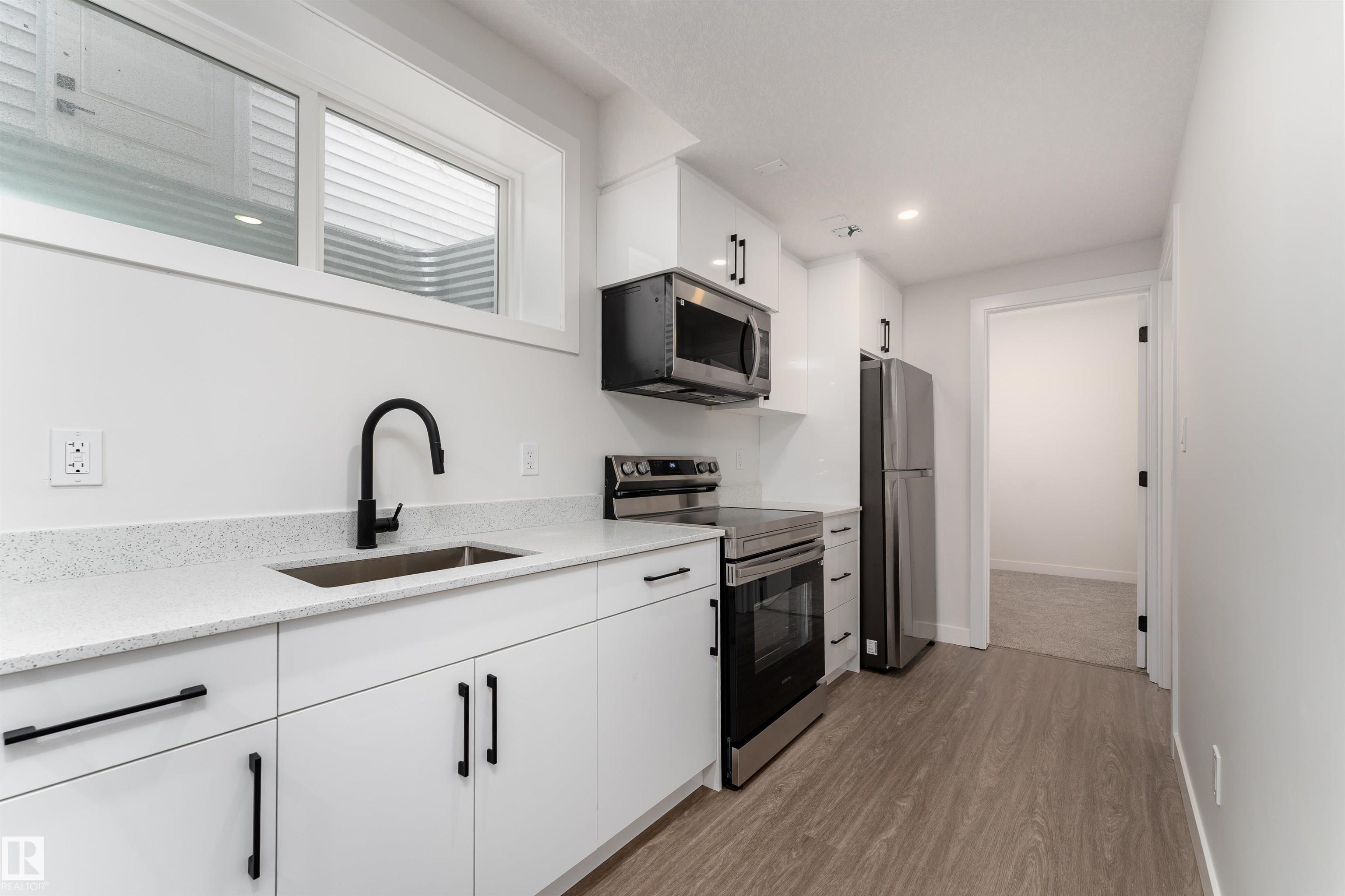 Welcome to this beautifully maintained 2-storey home nestled in the quiet, family-friendly community of Bergman. Offering 1,404 sq ft above grade, this home combines modern style with functional living spaces – perfect for growing families. Step inside to a bright and modern kitchen featuring crisp white cabinetry, stainless steel appliances, and ample counter space. The cozy living room boasts an electric fireplace, creating a warm and inviting atmosphere, while a convenient 2-piece bathroom completes the main floor. Upstairs, you’ll find two spacious bedrooms, a 4-piece main bathroom, plus a generous primary suite with its own 4-piece ensuite – a true retreat! The fully finished basement offers excellent versatility with a separate entrance, 2 additional bedrooms, another 4-piece bathroom, and a second kitchen – ideal for extended family or potential suite. Enjoy outdoor living on the elevated rear deck, perfect for relaxing or entertaining guests. Located close to schools, parks, and major road ways.