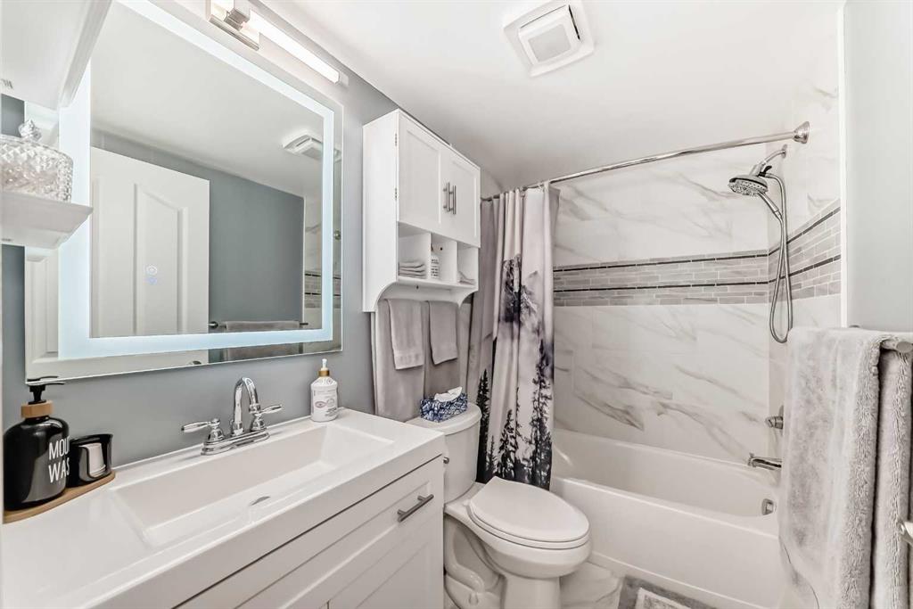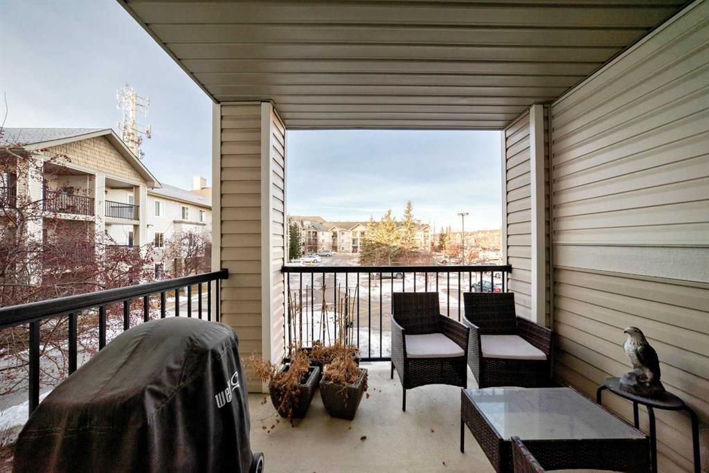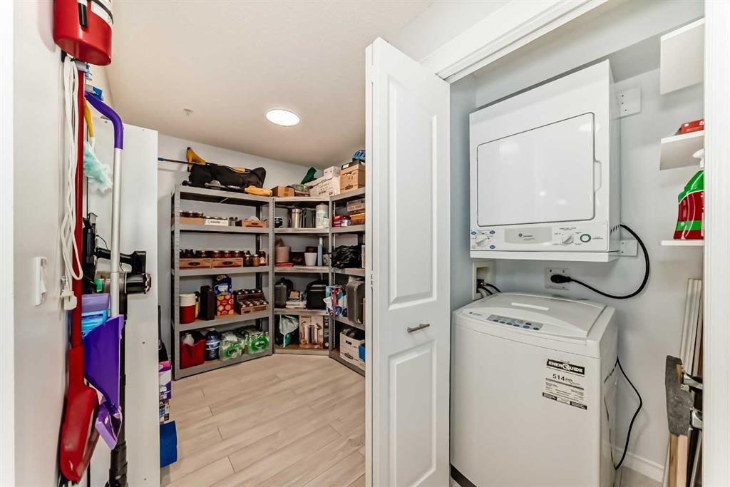 Welcome to this beautifully renovated 1 bedroom plus den unit in the desirable community of Evergreen. Bright and inviting this home is filled with natural light and finished in clean, neutral colours throughout. The spacious living room features patio doors that open to a sunny west-facing balcony, perfect for relaxing in the evening with a beverage as the sun goes down. The large open kitchen has plenty of space for a dining table or even a future kitchen island, and is equipped with newer, modern stainless steel appliances, an upgraded 3-rack dishwasher, and built-in cupboard organizers for excellent storage and functionality. The showhome-like bathroom is finished with luxurious marble tile, a dimmable anti-fog mirror, and contemporary fixtures. The generous den provides flexible space for a home office, guest area, or additional storage. This unit is clean, bright, and truly move-in ready with very flexible possession available. The parking stall is conveniently located near the front door, with ample additional street parking available. Ideally located, this home is walkable to everyday shopping, cafes and restaurants nearby, offers easy access to the ring road, and is just a short walk to Fish Creek Park. An excellent opportunity to own a stylish, well-located home in a smaller, more intimate building with 2 elevators. Just move right in!