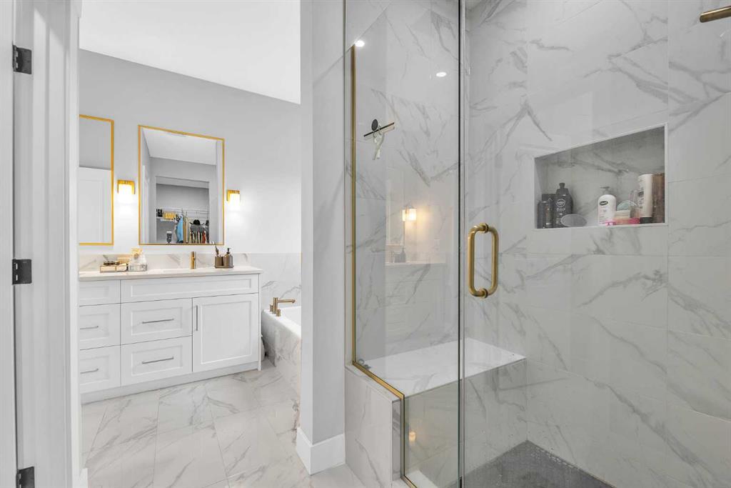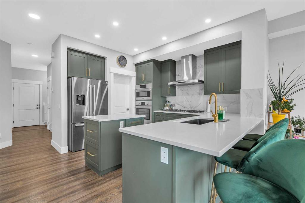 ** Open House: Feb. 7th 1:00-3:00pm ** 5 Bedrooms Above Grade | 4 Bathrooms | Three Level Design | Backs Onto Green Space | Upgraded Bosch Appliances | 9 ft Ceilings on All Levels | Heated Garage. Welcome to this stunning 2024 built home in Pine Creek, offering more than 2,700 square feet across three beautifully designed levels. Warm, bright, and thoughtfully upgraded, this home blends comfort, style, and modern convenience in a truly welcoming way. The main floor features a sun filled open layout with upgraded LVP flooring and a gorgeous chef’s kitchen equipped with Bosch appliances, a gas cooktop, hood fan, quartz countertops throughout, and a Silgranit upgraded sink. The kitchen flows seamlessly into the bright living and dining areas, all overlooking the peaceful green space behind the home. This level also includes a main floor bedroom and a full four piece bathroom, offering exceptional flexibility for guests, extended family, or a private workspace. The second level offers three spacious bedrooms, each with its own walk in closet, along with a bright bonus room and a full four piece bathroom. One bedroom enjoys its own ensuite, and the laundry room is conveniently located on this floor. The third level is a private retreat featuring the primary bedroom, a relaxing five piece ensuite, a generous walk in closet, a sunny balcony, and an additional flex room perfect for a lounge, workspace, or nursery. This home includes nine foot ceilings on every level, CAT 6 wiring throughout, a water softener, central AC, EV charger rough in, a gas line for backyard barbecues, and a heated garage for year round comfort. The backyard is a standout feature, backing directly onto quiet green space with no neighbors behind. Modern, spacious, and perfectly located in beautiful Pine Creek, this home is ready to welcome its next family.