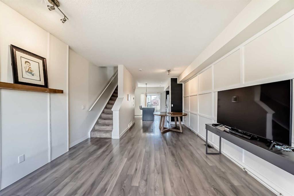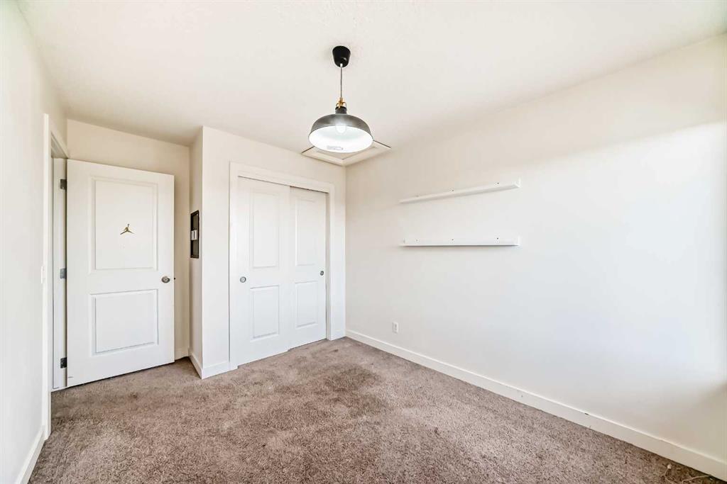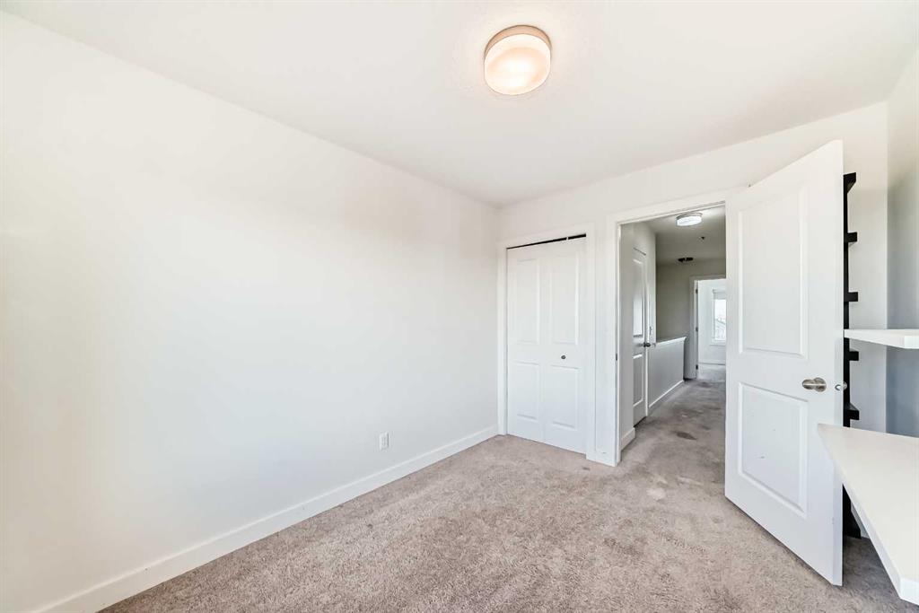 The ground floor entrance near garage leads to fabulous office workspace with built in desk and shelving. Entrance foyer with large closet and access to 2 pc bath, as well as inside entrance to garage where you will find the furnace/mechanical room. Carpeted stairs lead up to a beautiful open, spacious full of natural light main living area. There is a beautiful accent wall in dining and living room plus almost full width windows which floods the room with natural light. Kitchen features lots of rich dark natural wood cabinetry which highlights the gorgeous white quartz countertops and island. Gleaming stainless steel appliances complete your dream kitchen. Sliding patio doors lead to a balcony with enough room for the whole family. The upper level has 3 spacious bedrooms including a primary bedroom with a 3 piece ensuite and 2 double clothes closets. The upper level laundry room with stackable washer/dryer is a real step saver. Front yard is a fenced and private mini oasis with low maintenance landscaping with trees and bushes providing almost total privacy. Call your favourite Realtor to view this great family home.