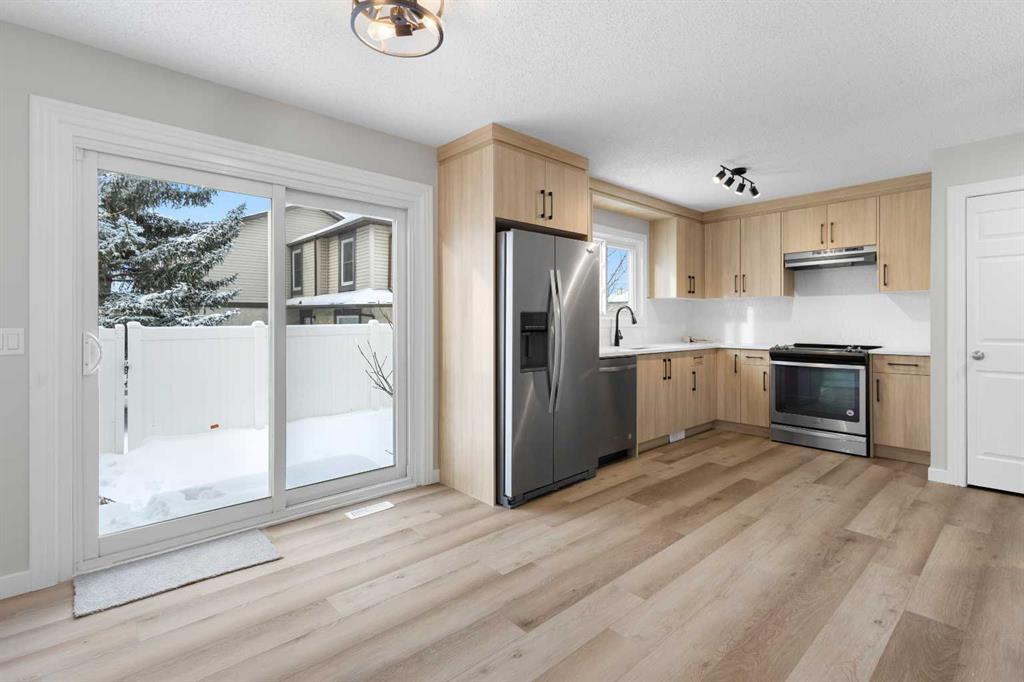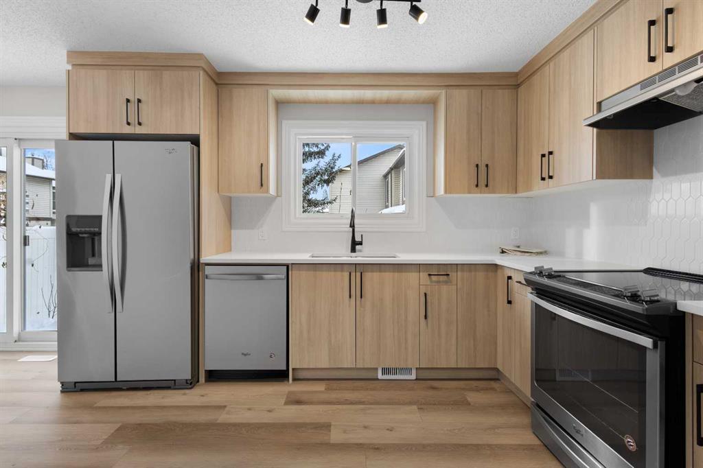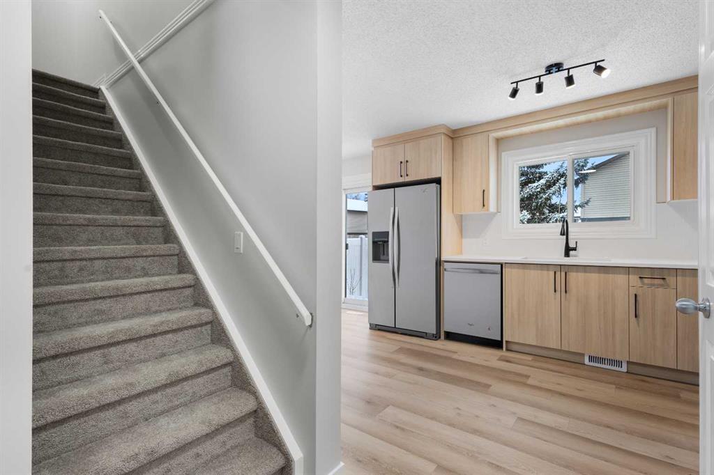 Welcome to this beautifully FULLY renovated unit located in a well-maintained complex in the desirable Deer Ridge neighbourhood, just minutes from Fish Creek Park and within walking distance to shopping and restaurants. Upon entry, you are welcomed into a bright living room with a large front window that fills the space with natural light. The main floor features a stunning NEW kitchen with modern cabinetry, * quartz countertops, a trendy backsplash, and * new light fixtures, seamlessly flowing into the dining area with patio doors leading to your private backyard. A * newly updated half bathroom and utility closet complete the main level. Upstairs, you will be impressed by the generous size of the primary bedroom, large enough to accommodate a bed along with a sitting area. Two additional well-sized bedrooms share a full 4-piece bathroom. The basement is accessed from the dining area and offers a family room, a hobby or office space, and a laundry area. The entire unit has been freshly painted and updated with NEW carpet throughout, NEW light fixtures, NEW backsplash, and NEW vinyl plank flooring, making this home truly move-in ready. Ideally situated close to schools, shopping, restaurants, and just a short distance to parks and nature pathways, this is the perfect place for those who love both convenience and the outdoors. Don’t wait—bring your furniture and start a beautiful new chapter in this lovely home.
