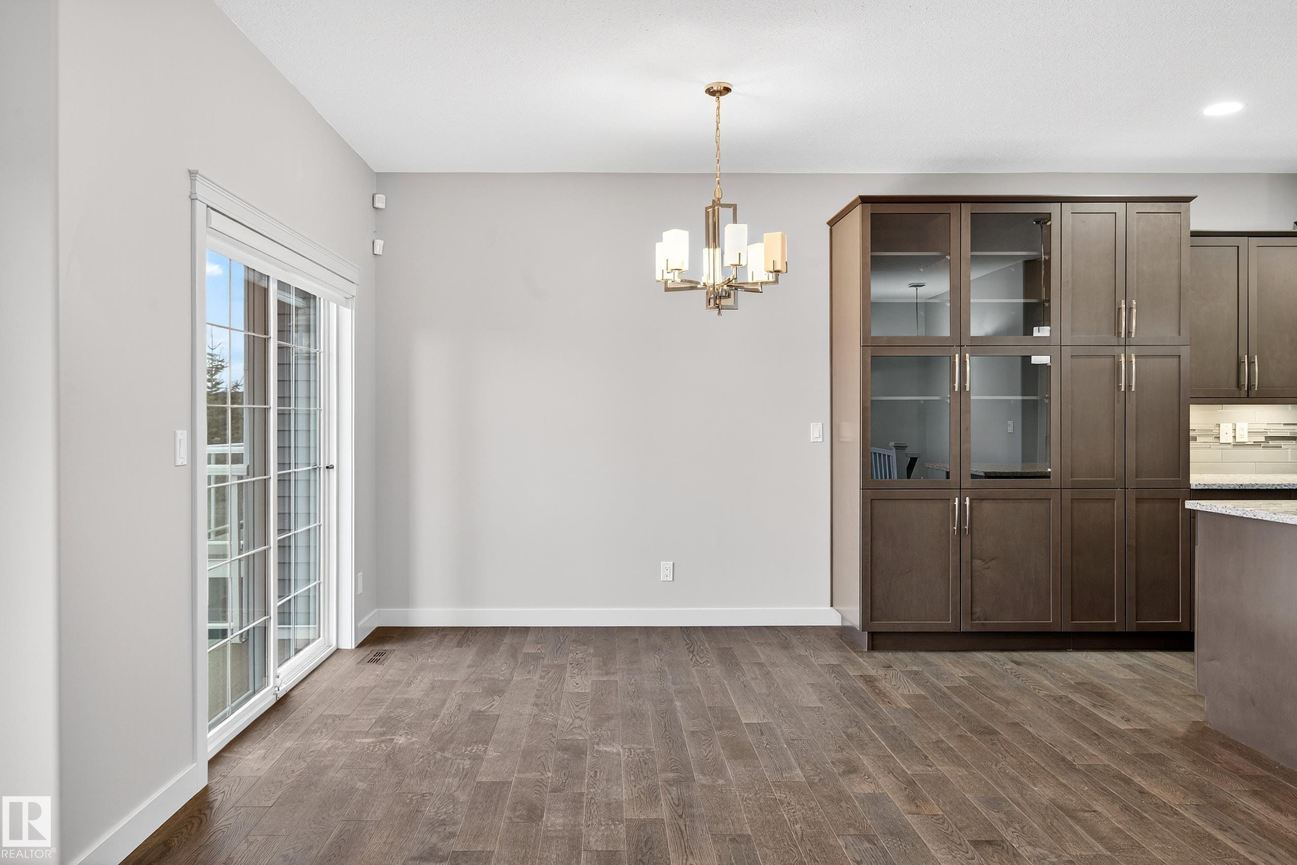 Welcome to the prestigious Village on the Lakes in Rosenthal. Built by Parkwood Homes, this stunning, freshly painted bungalow townhome condo offers a superior design for today's comfort living. Incredible west-facing LAKE VIEWS from its FINISHED WALK-OUT BASEMENT complimented by lower concrete patio PLUS massive rec room, gas fireplace, bdrm, flex space, den, 4pc bath & abundance of storage. Main level is equally impressive w/jaw dropping design & openness. Welcoming foyer, front office & vaulted ceilings floods space w/great natural light. Incredible kitchen boasts eat-on centre island, granite countertops, hi-end SS appliances, under-mount lighting, espresso cabinetry & dining/living area with the most serene upper-level deck & breathtaking views. Convenient laundry room w/cabinetry & folding table & access to attached oversized garage (w/taps). Owner’s suite w/ensuite featuring dual sinks & WIC. Close to Casino, all amenities & easy access to Anthony Henday for effortless commute. MUST SEE HOME!