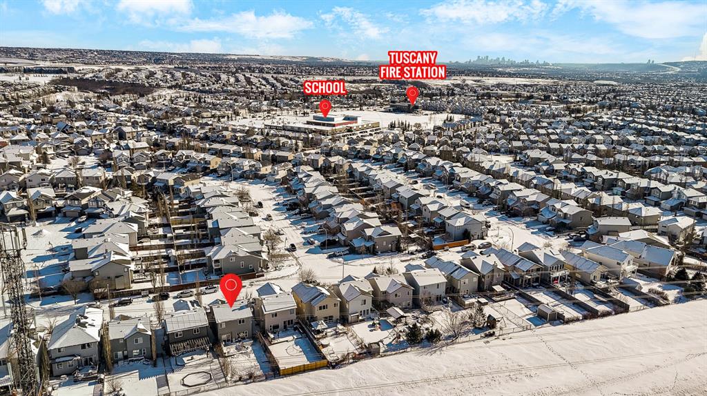 Experience the perfect blend of natural beauty and modern comfort in this great Tuscany property. Backing directly onto the mountains, this home invites you into an airy, open concept main floor with 9 ft ceilings and gleaming ceramic tile. The heart of the home is a maple kitchen featuring a raise eating bar overlooking a living room warmed by a wood burning fireplace and open dining area. Retreat upstairs to find three generous bedrooms, including a master suite with a walk-in closet and 4 pieces ensuite plus another full bathroom. The fully finished basement serves a large entertainment space and additional full bathroom. Step outside to the large deck to watch the sunset dip behind the peaks. Recent upgrades include a new roof (2023), central AC and window tinting. Located steps from top rated schools , community club with gym, skating ring, tennis courts, pickleball, and a splash park ,Tuscany Market and walking and biking paths this house is a great find.