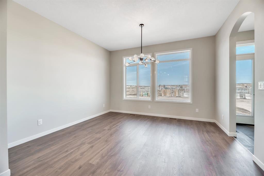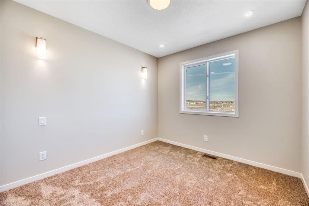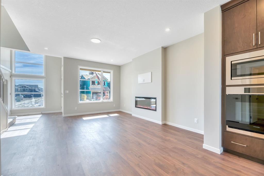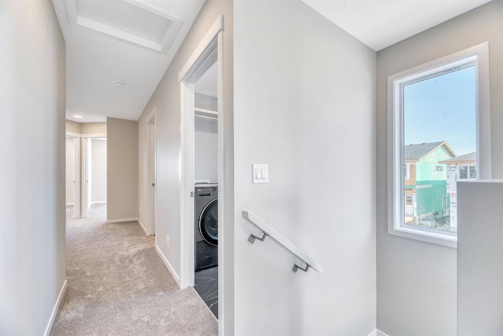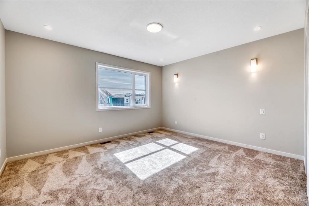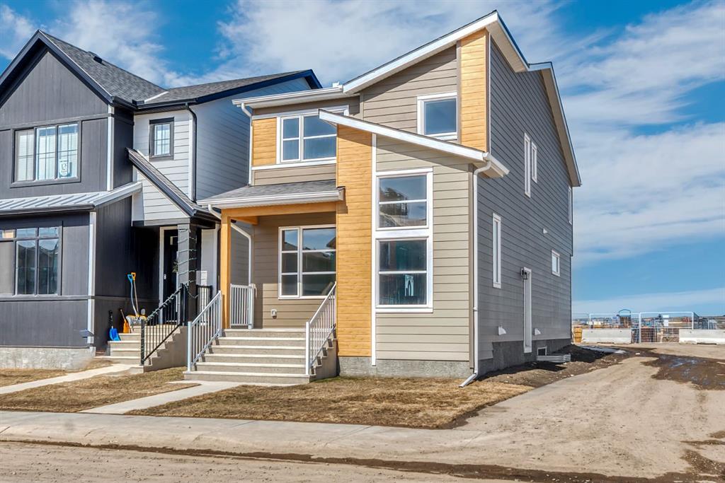 Welcome to the Arista model by Morrison Homes in the sought-after community of Rockland Park NW—a brand new, thoughtfully designed home that perfectly blends modern function with mid-century modern inspired style. Ideally positioned on an end lot siding and backing onto a lane, this property offers added privacy along with extra windows (on both sides) and exterior side entry, providing excellent potential for future development. Step inside to a bright, open-concept main floor where walnut-toned luxury vinyl plank flooring flows seamlessly throughout. The spacious great room is anchored by a sleek electric fireplace, creating a warm and inviting atmosphere. At the heart of the home, the stunning central kitchen is designed to impress with a large island, upgraded quartz countertops, tile backsplash, flat-panel wood grain cabinetry, and premium appliance package including a 5-burner gas cooktop, built-in wall oven, and microwave. Thoughtful upgrades such as under-cabinet lighting, pots and pan drawers, and garburator enhance both style and functionality. A versatile main floor office with arched entry offers the perfect work-from-home setup, while a convenient 2-piece bath with vanity completes this level. Additional windows throughout flood the home with natural light, elevating the overall feel. Upstairs, enjoy upgraded carpet and underlay, a dedicated laundry room with front-load washer and dryer, and a well-designed layout ideal for families. The front-facing primary retreat features a walk-in closet and a 4-piece ensuite with heated floors—a little touch of luxury. A central bonus room provides separation and privacy, while two generously sized bedrooms at the back share a full bathroom. The unfinished basement offers future potential with 9’ foundation walls, a bright layout, and rough-ins for a legal suite (subject to municipal approvals and permits)—ideal for multi-generational living or added income. Quick possession available, making this an excellent opportunity to move into a brand new home without the wait. Stylish, functional, and full of potential—this is Rockland Park living with all the added amenities of the area!