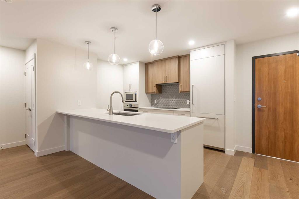 Welcome to luxury living at 102 Scenic Drive N, one of Lethbridge’s most prestigious and amenity-rich condo buildings. This brand-new, never-lived-in 2-bedroom, 2-bath residence offers over 1,000 sq. ft. of thoughtfully designed living space, finished with over $5,000 in builder upgrades. The bright, open-concept kitchen features quartz countertops throughout, hidden, integrated appliances, and a huge walk-in pantry, creating a sleek, modern look without sacrificing functionality. The spacious living area flows seamlessly onto a private balcony overlooking the beautifully landscaped courtyard and gazebo - with a clear, unobstructed view from the unit itself, offering both beautiful scenery and privacy. The primary bedroom is a true retreat, complete with a generous walk-through closet leading into a spa-like ensuite with dual vanities. A second bedroom + full bathroom provide ideal space for guests, a home office, or family living. This home includes two (not one) heated underground parking stalls plus a separate storage unit. Even better, all utilities are included in the condo fees, offering exceptional value and worry-free living. Residents of 102 Scenic Drive enjoy an unmatched suite of luxury amenities, including a fully equipped fitness centre, yoga studio and sauna, golf simulator, private theatre, woodworking shop, wine tasting room with personal storage, coffee bar, games room, co-working spaces, car wash, dog wash, sunroom, community garden, AND a stunning central courtyard... all within a solid concrete building designed for quiet, comfort, and convenience. This is an incredible opportunity to own a never-occupied luxury condo in one of Lethbridge’s most sought-after buildings.