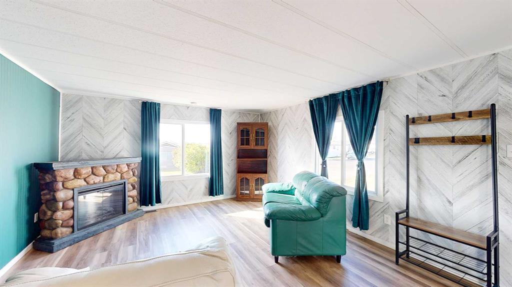 Well maintained mobile home in Medicine Hat Village. Home has 2 bedrooms and a 4 piece bathroom. Upon entering you are welcomed by an open concept footprint with a good size living room, a dining area within the kitchen. The kitchen is an L shaped set up with white cabinet and a window looking out off the sink. Down the hall you will find the bedrooms, bathroom and laundry space. Yard is nicely fenced and landscaped with 3 fruit trees (plums & crabapple) with warranty from Blondies, patio area with attached hardtop gazebo (screen enclosures included), and a 10 x 10 tarped garage/shed. Lot rent is $975.00, includes water, gas, sewer, and garbage.