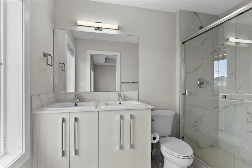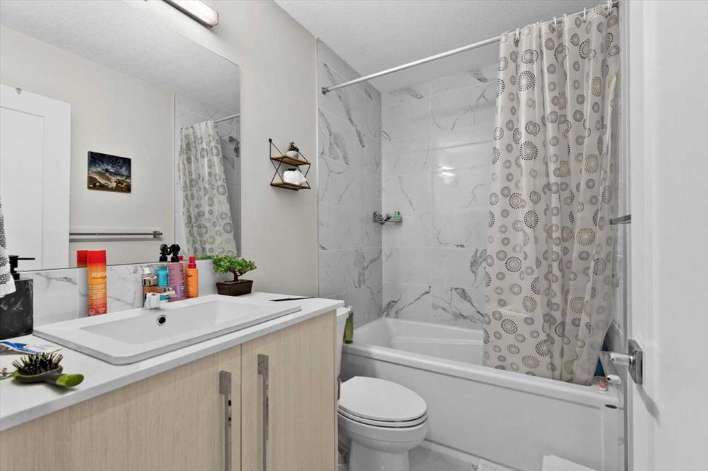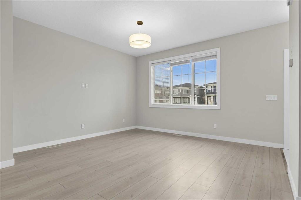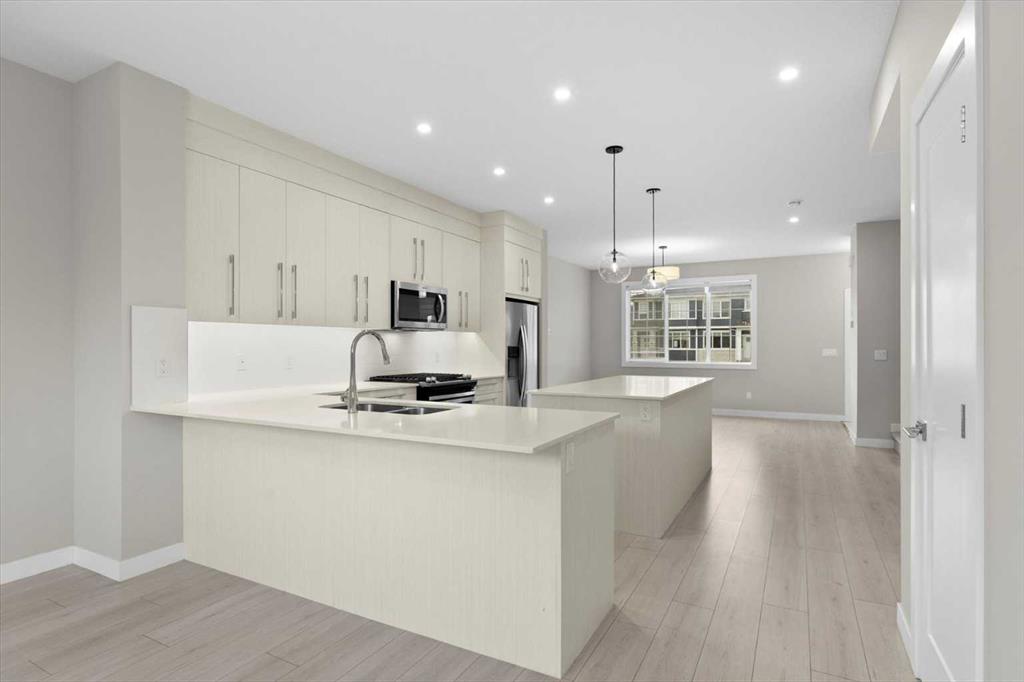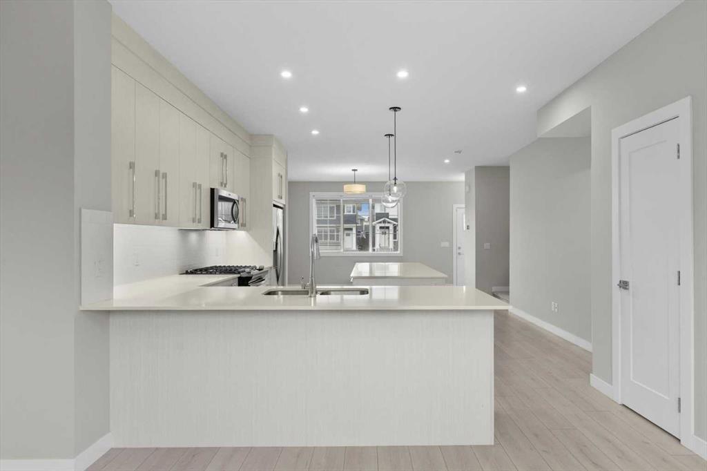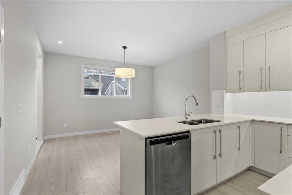 Welcome to this stylish half-duplex with a legal secondary suite located in the thriving northeast community of Cornerstone. The main floor features an open layout with a generous living area, dining space, and a well-appointed kitchen showcasing a central island, quartz countertops, stainless steel appliances, and a gas range, perfect for both everyday living and entertaining. Upstairs includes three spacious bedrooms, including a primary suite with a walk-in closet and a 4-piece ensuite with double vanity. You’ll also find a second 4-piece bathroom, laundry on the same level, and a bonus area offering flexibility for a home office, playroom, or media space. The one-bedroom legal basement suite has its own kitchen, living room, 4-piece bathroom, and laundry, and is currently tenant-occupied, offering a great mortgage helper or investment opportunity. A double detached garage adds convenience, and the location offers quick access to Stoney Trail, Country Hills Blvd, shopping, parks, and schools. A fantastic opportunity for homeowners or investors in one of Calgary’s fastest-growing communities.