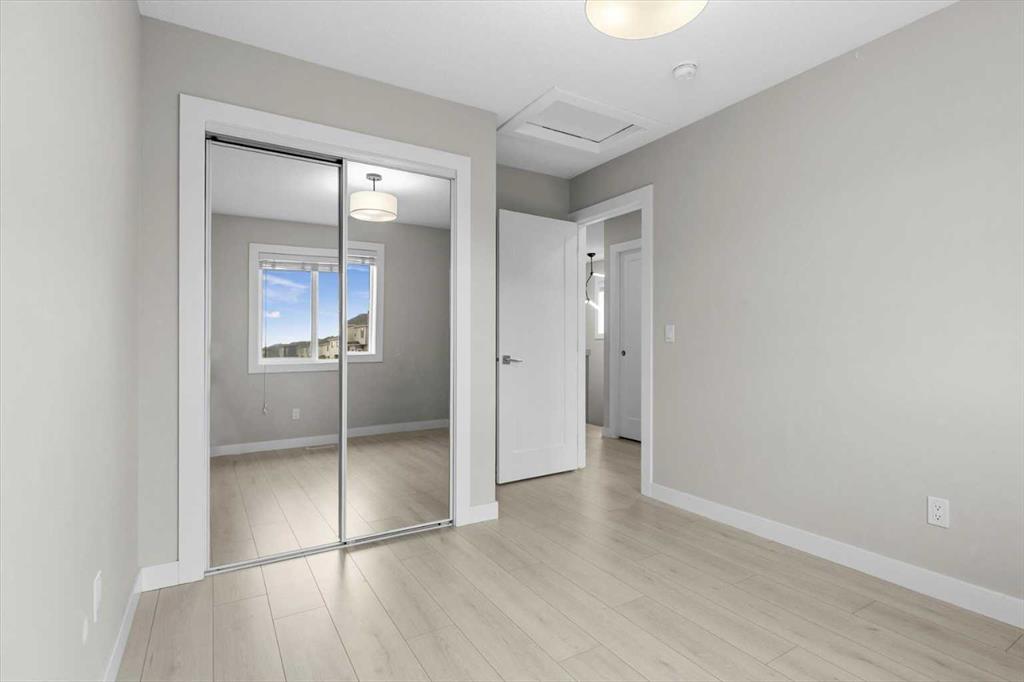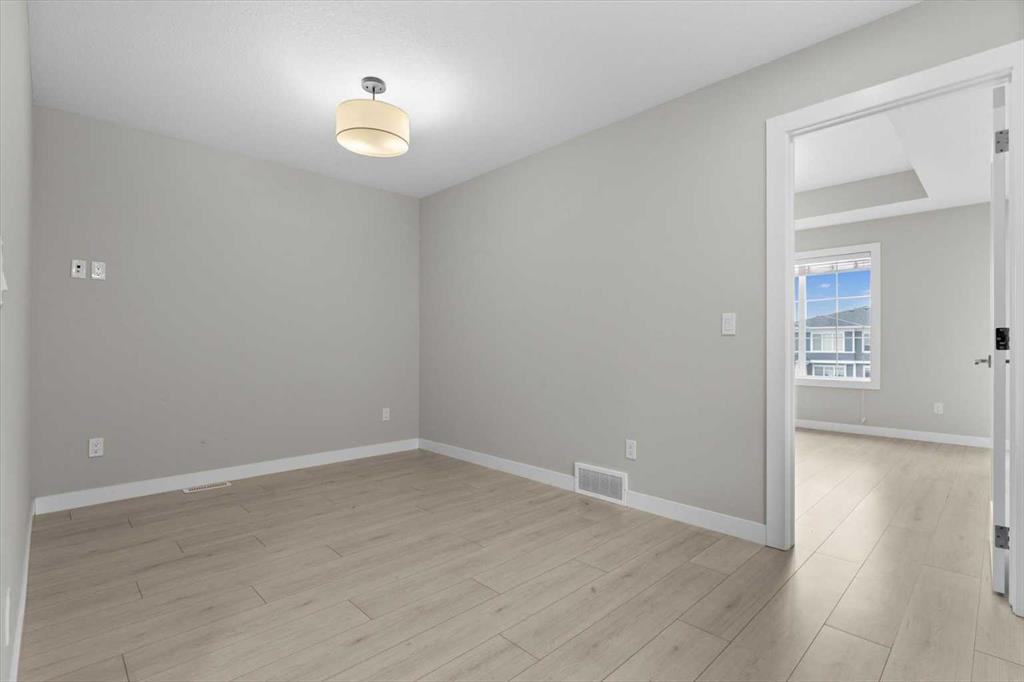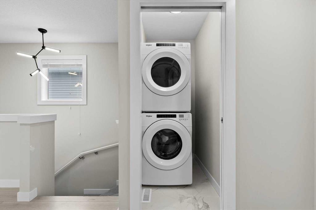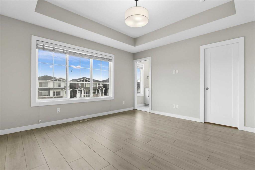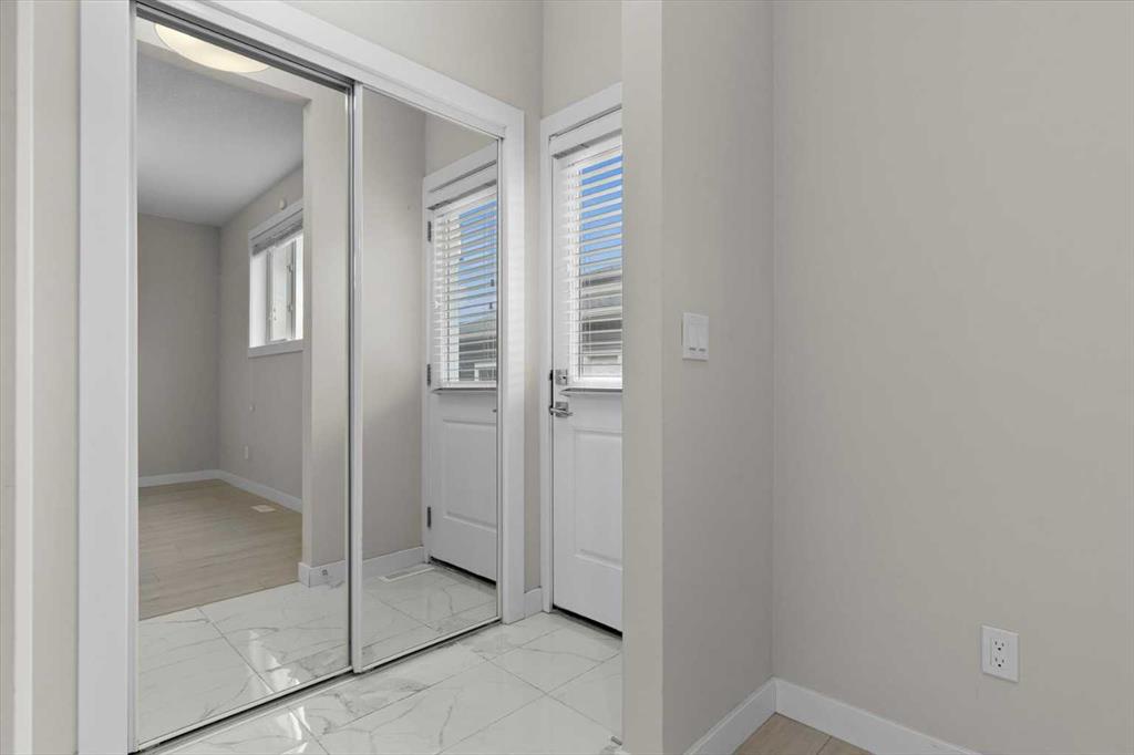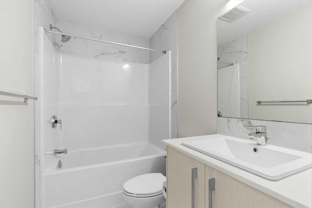 Welcome to this stylish half-duplex with a legal secondary suite located in the thriving northeast community of Cornerstone. The main floor features an open layout with a generous living area, dining space, and a well-appointed kitchen showcasing a central island, quartz countertops, stainless steel appliances, and a gas range, perfect for both everyday living and entertaining. Upstairs includes three spacious bedrooms, including a primary suite with a walk-in closet and a 4-piece ensuite with double vanity. You’ll also find a second 4-piece bathroom, laundry on the same level, and a bonus area offering flexibility for a home office, playroom, or media space. The one-bedroom legal basement suite has its own kitchen, living room, 4-piece bathroom, and laundry, and is currently tenant-occupied, offering a great mortgage helper or investment opportunity. A double detached garage adds convenience, and the location offers quick access to Stoney Trail, Country Hills Blvd, shopping, parks, and schools. A fantastic opportunity for homeowners or investors in one of Calgary’s fastest-growing communities.