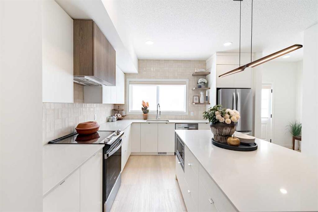 Tentative Late May / Early June Possession - Welcome to the Cascade, a thoughtfully designed duplex built by Shane Homes in the NW community of Esker Park. Currently under construction, this home features 3 bedrooms and 2.5 bathrooms with a functional layout designed for modern living. The open-concept main floor includes a spacious kitchen with a walk-in pantry and central island, flowing into the dining and living areas, ideal for everyday use and entertaining. A side entry and basement rough-ins provide flexibility for potential future development. Upstairs offers three well-sized bedrooms, a primary bedroom with walk-in closet and full ensuite, convenient upper-floor laundry, and a flex room that adds valuable additional living space. Photos are representative and are for illustrative purposes only.
