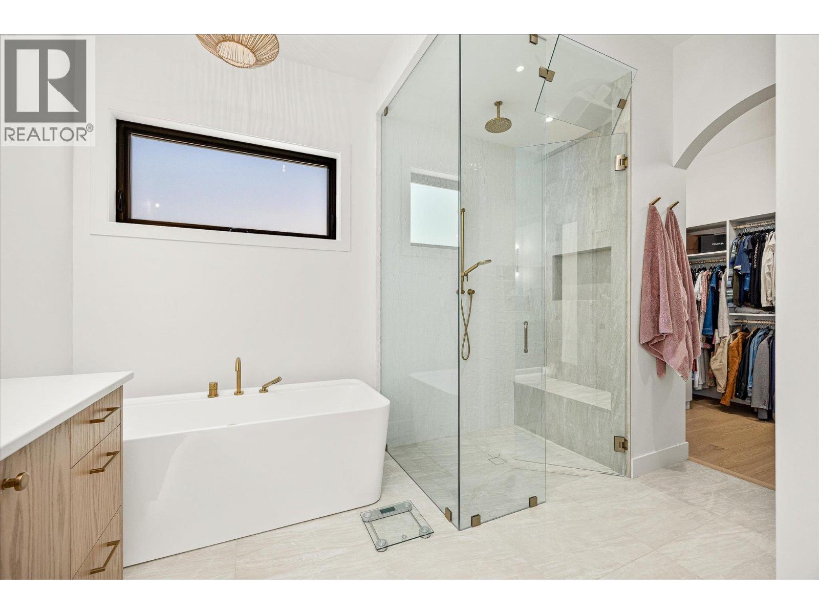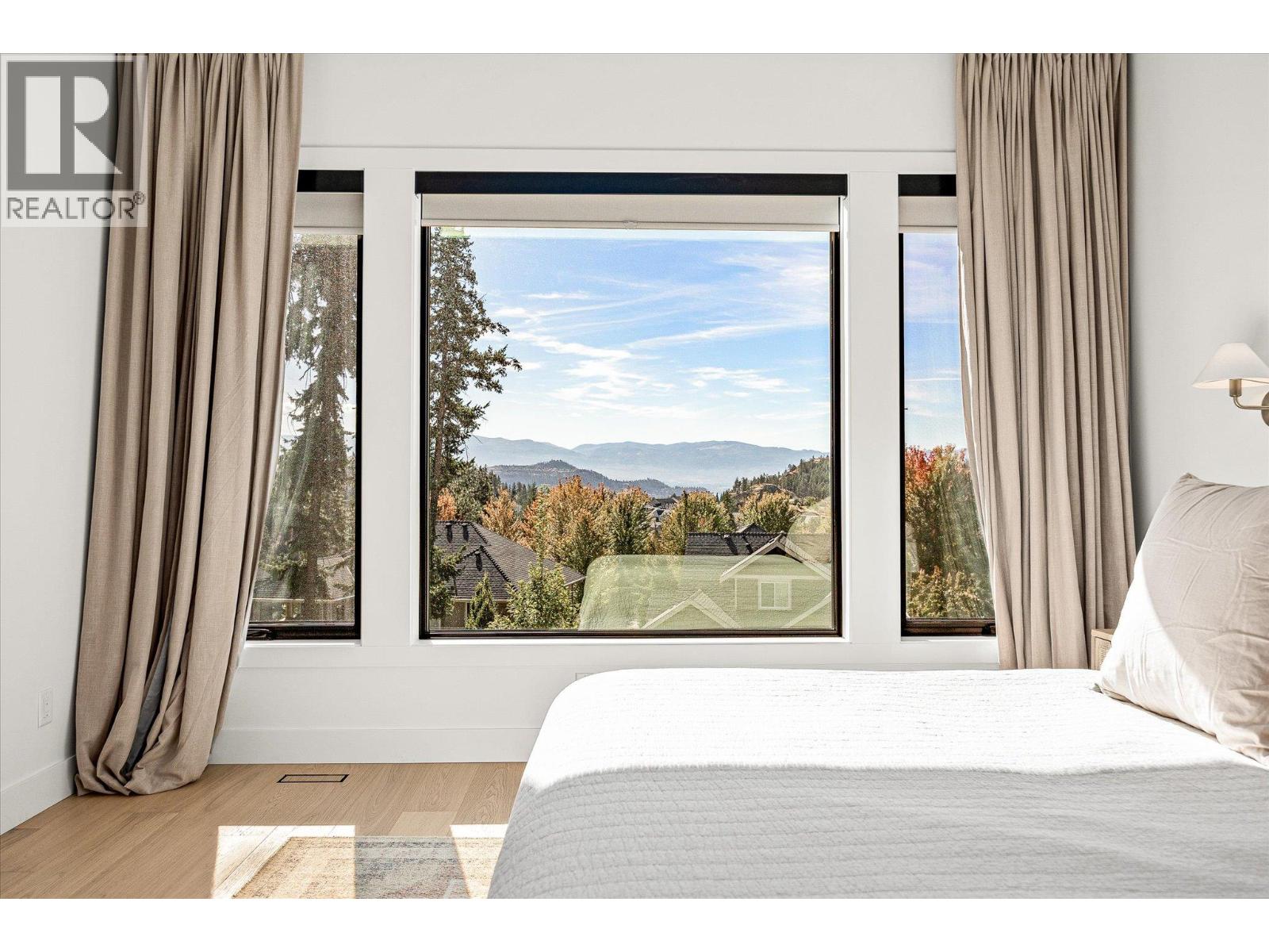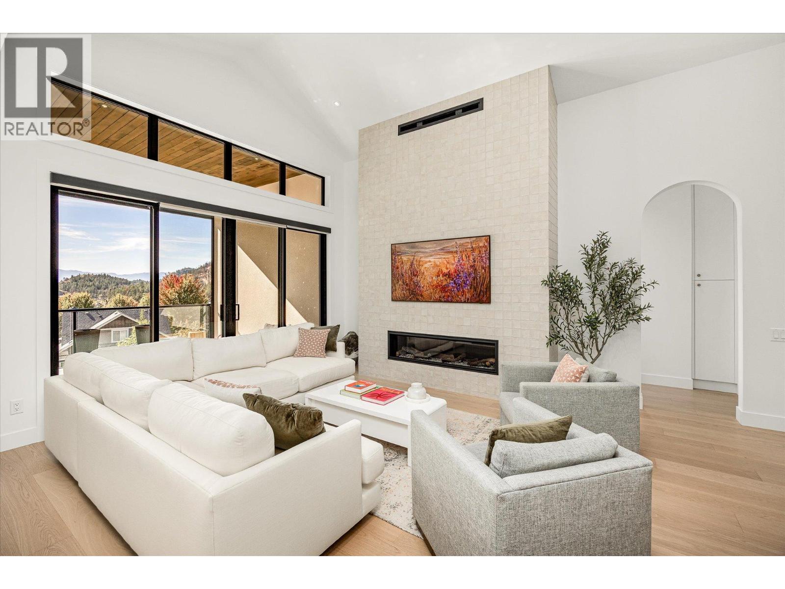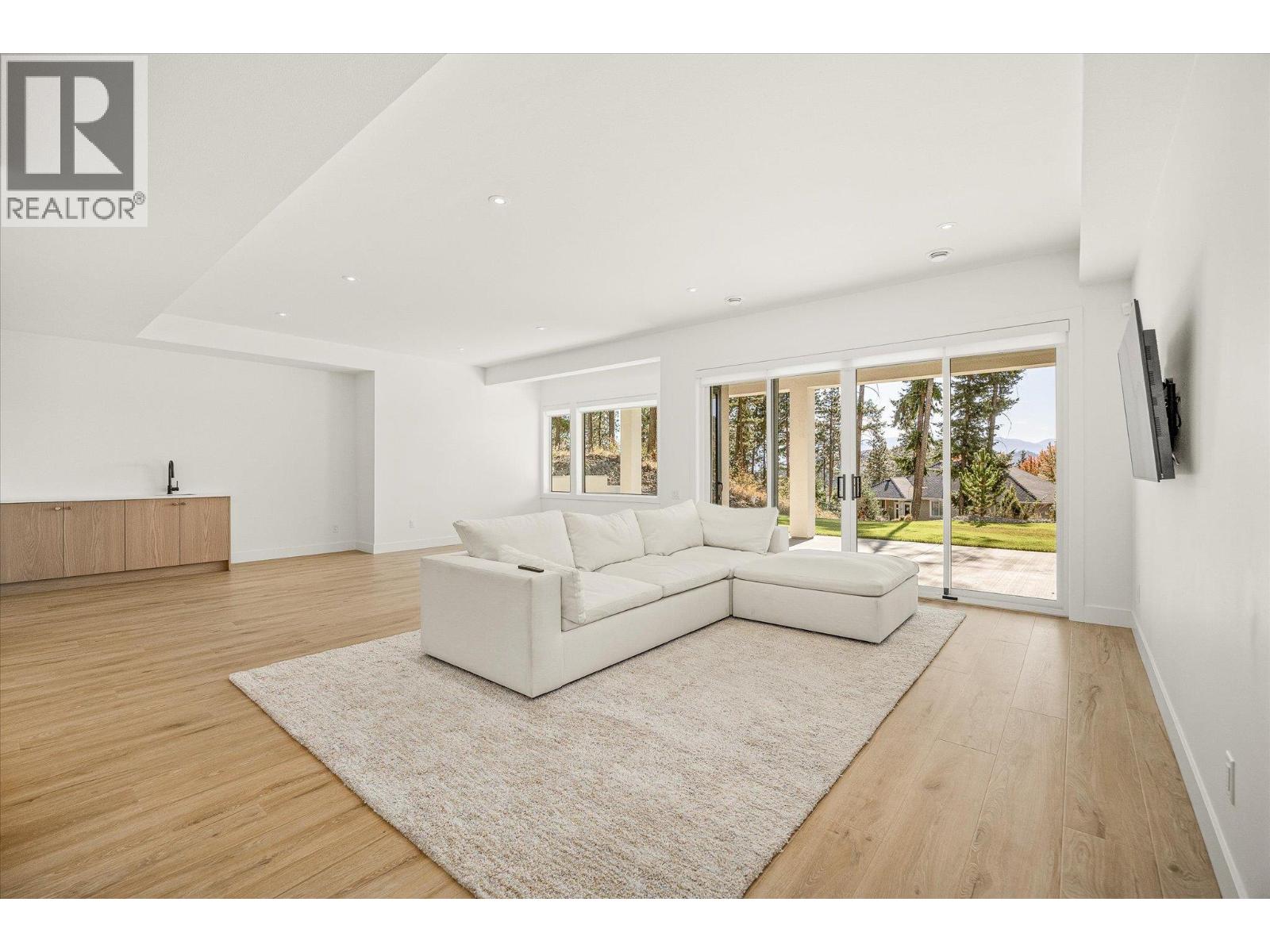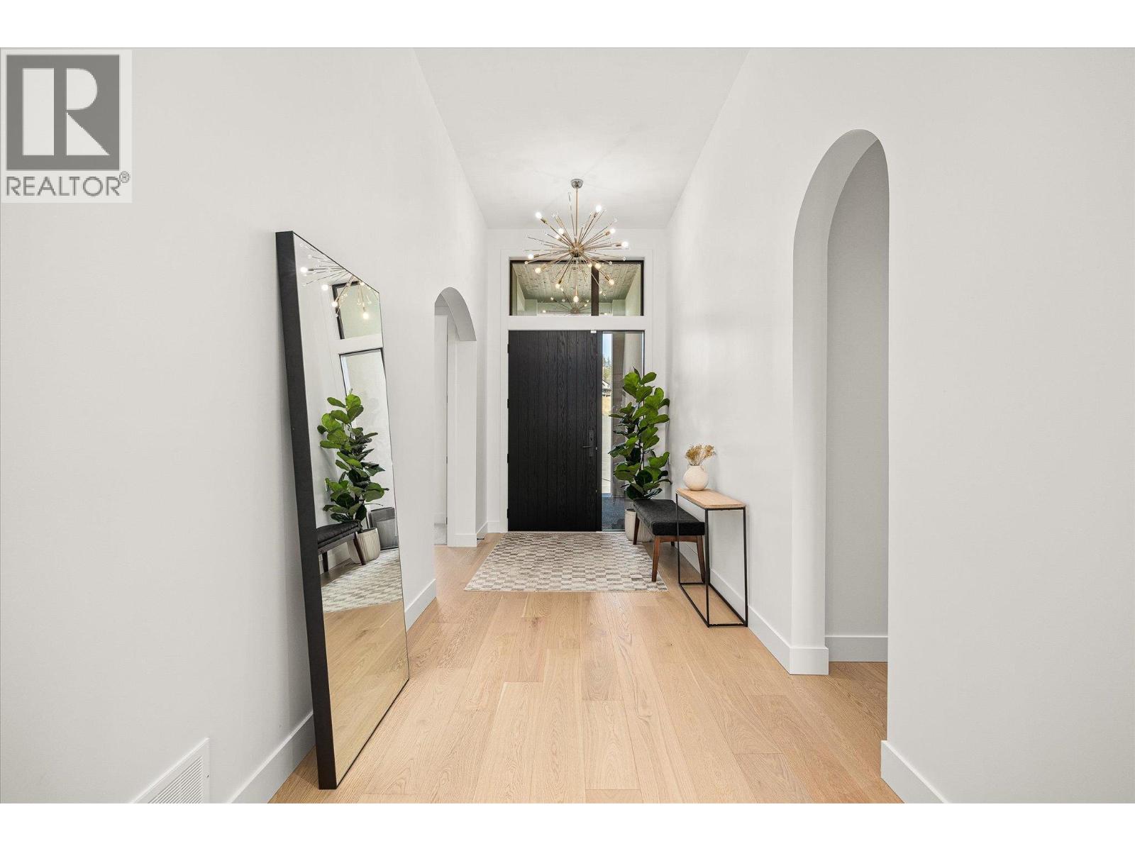 Presenting a stunning 2024 luxury build by Fawdry Homes, this single-family rancher with a basement perfectly combines timeless design with modern sophistication. From the moment you step inside, the soaring 12-foot ceilings in the entryway and 10-foot ceilings throughout create an airy, elegant atmosphere. The main living area is bright and inviting, showcasing engineered hardwood floors, all-white cabinetry, and high-end stainless steel appliances, including a Sub-Zero panel refrigerator. A beautifully arched doorway leads to the butler’s pantry, complete with a wine fridge, a thoughtful touch for both functionality and charm. The primary suite is a tranquil retreat, designed with a soundproof wall for added privacy. Its luxurious ensuite features under-cabinet lighting, a soaker tub, glass shower, dual sinks, and a walk-in closet. Downstairs, the vinyl plank flooring, wet bar, and soundproofed gym offer comfort, entertainment, and versatility for every lifestyle. Step outside to enjoy beautiful wooded views from the covered deck, overlooking a pool-sized, lush green backyard with professional landscaping. Nestled on a spacious 0.43-acre lot, this property offers privacy, beauty, and room to grow. With no GST and barely a year old, this practically new home embodies the finest in Okanagan living… luxury, craftsmanship, and peaceful surroundings.