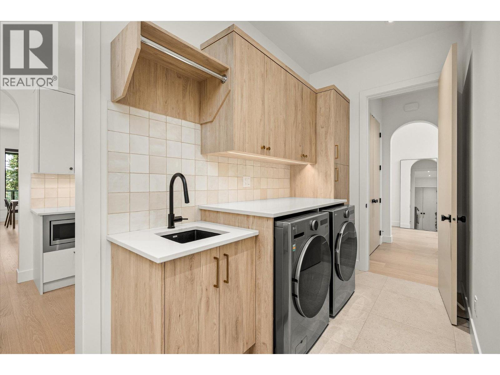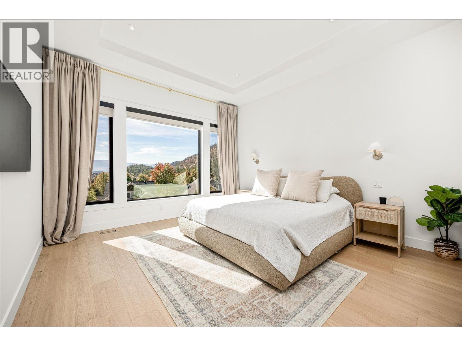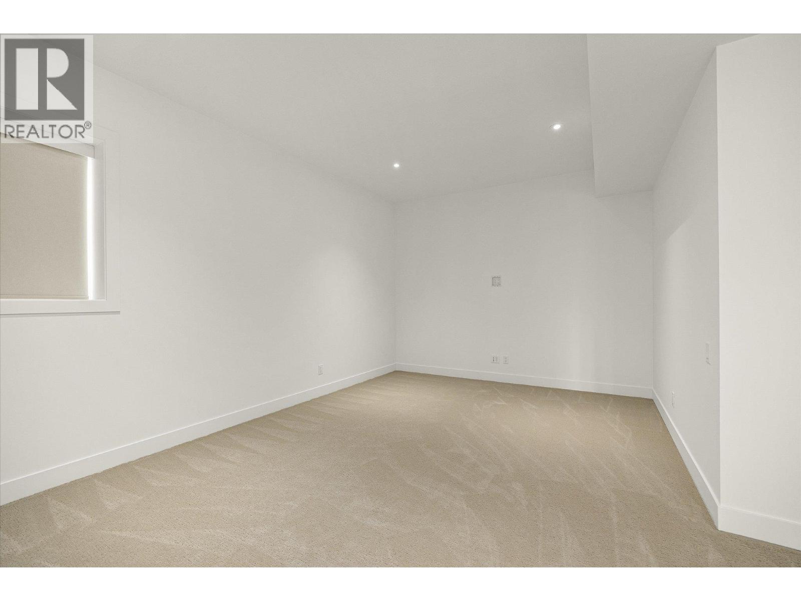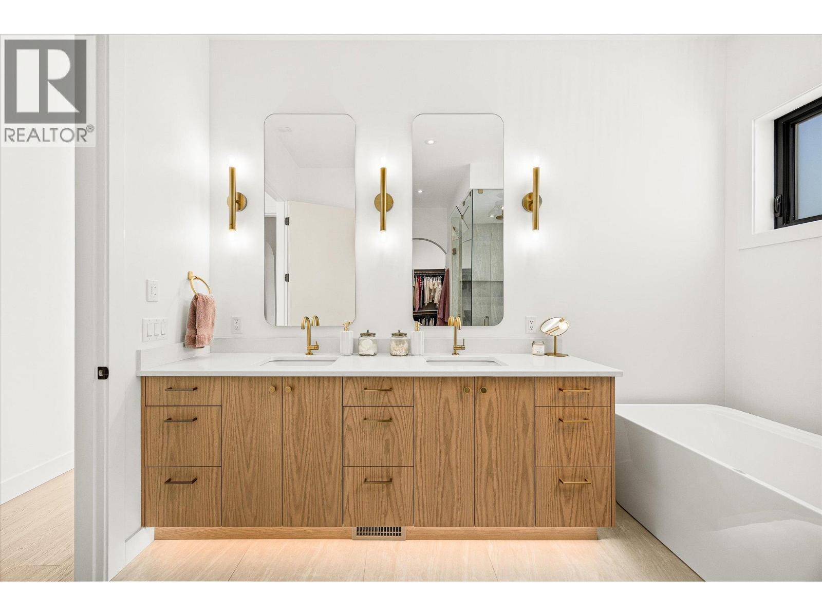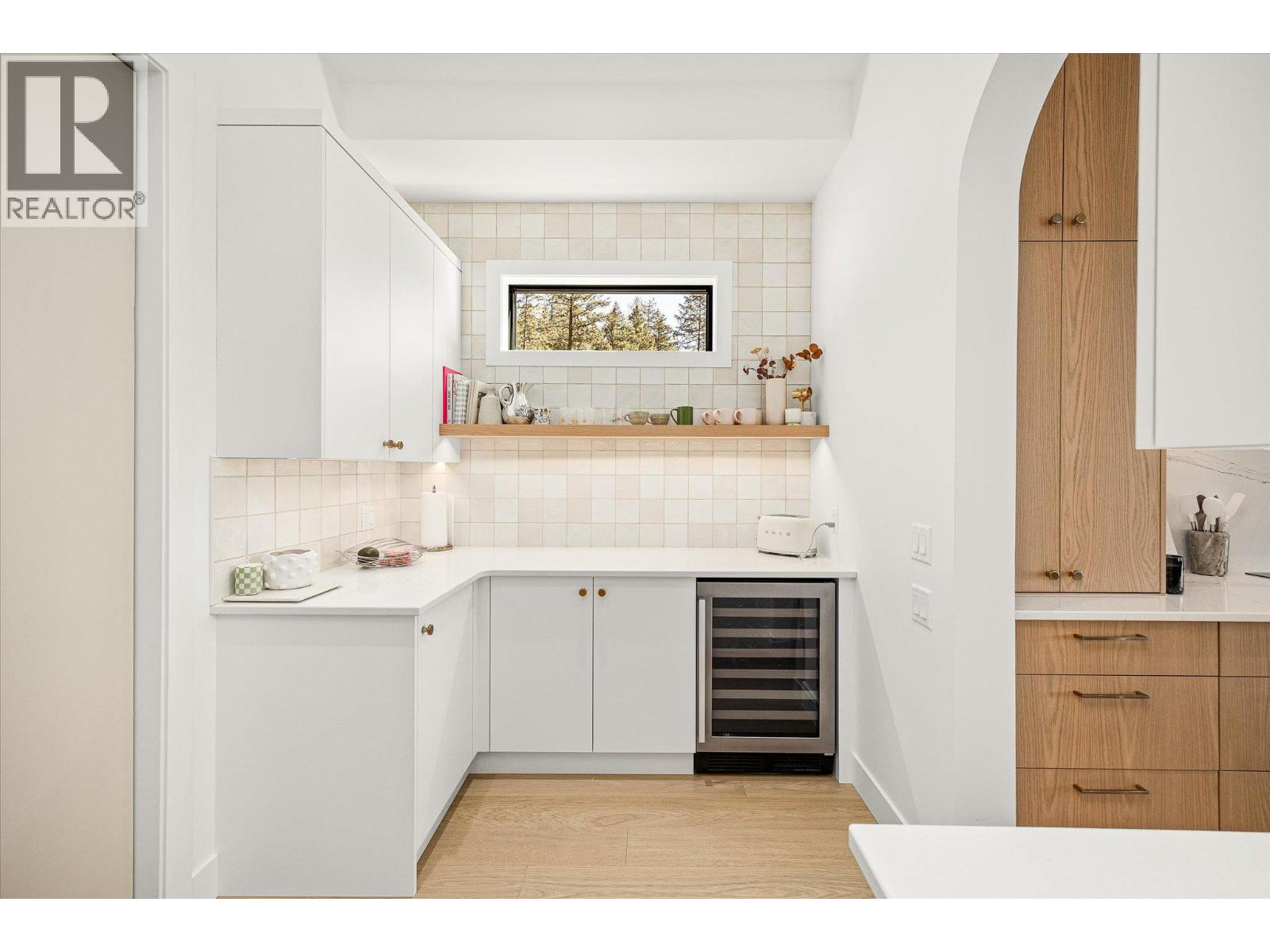 Presenting a stunning 2024 luxury build by Fawdry Homes, this single-family rancher with a basement perfectly combines timeless design with modern sophistication. From the moment you step inside, the soaring 12-foot ceilings in the entryway and 10-foot ceilings throughout create an airy, elegant atmosphere. The main living area is bright and inviting, showcasing engineered hardwood floors, all-white cabinetry, and high-end stainless steel appliances, including a Sub-Zero panel refrigerator. A beautifully arched doorway leads to the butler’s pantry, complete with a wine fridge, a thoughtful touch for both functionality and charm. The primary suite is a tranquil retreat, designed with a soundproof wall for added privacy. Its luxurious ensuite features under-cabinet lighting, a soaker tub, glass shower, dual sinks, and a walk-in closet. Downstairs, the vinyl plank flooring, wet bar, and soundproofed gym offer comfort, entertainment, and versatility for every lifestyle. Step outside to enjoy beautiful wooded views from the covered deck, overlooking a pool-sized, lush green backyard with professional landscaping. Nestled on a spacious 0.43-acre lot, this property offers privacy, beauty, and room to grow. With no GST and barely a year old, this practically new home embodies the finest in Okanagan living… luxury, craftsmanship, and peaceful surroundings.