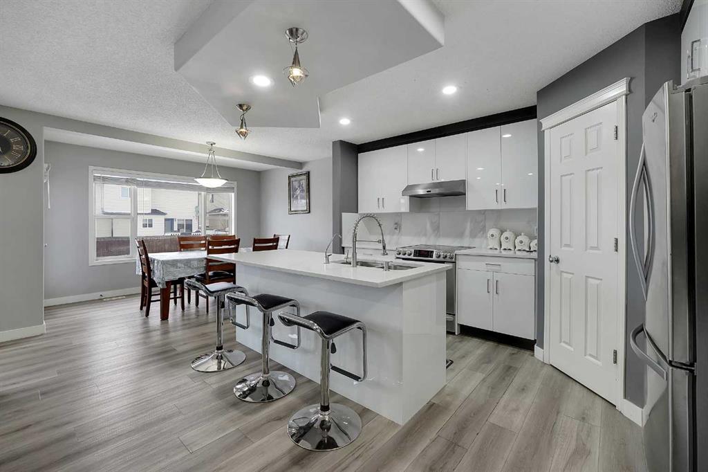 Welcome to this beautifully maintained 2-storey front garage home, ideally located in a quiet cul-de-sac in a highly sought-after neighbourhood. Offering 1,898 sq ft above grade, this home showcases pride of ownership throughout and has been exceptionally well kept. Featuring 5 bedrooms and 3.5 bathrooms, this spacious layout includes a massive bonus room above the garage—perfect for family living and entertaining. The primary bedroom boasts a private ensuite complete with both a tub and separate shower. Recently renovated, the home features a brand new kitchen with quartz countertops, newer appliances, and modern finishes. Durable vinyl flooring flows throughout, giving the home a clean, updated feel. The fully developed basement includes a 2-bedroom illegal suite, currently rented to long-term tenants who would love to stay—offering excellent income potential. Step outside to a beautifully landscaped backyard with a two-level deck, ideal for summer enjoyment. A storage shed is also included. Conveniently located close to schools, major routes like Métis Trail, and the Gurdwara, this home combines comfort, functionality, and an unbeatable location.