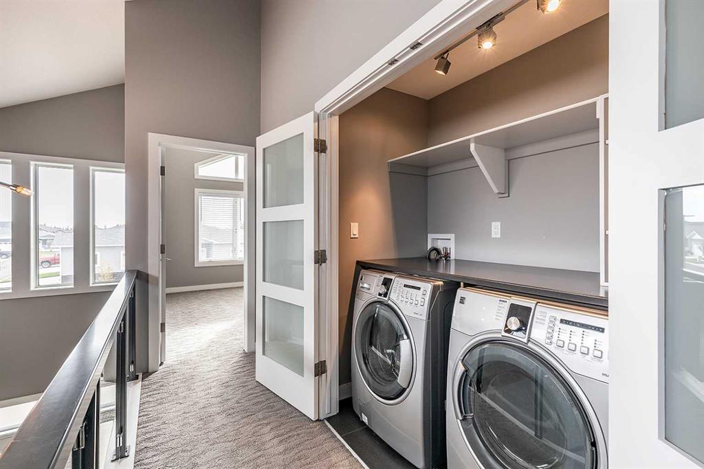 Welcome to 14 Somerset Road SE – a stylish, modern home built by Brost that blends high-end finishes with thoughtful design. Step inside to an open-concept main floor, where a striking glass-and-metal staircase sets the tone. The living room feels warm and inviting with a sleek tiled gas fireplace, while the kitchen and dining area offer plenty of space for cooking and gathering. You’ll love the gorgeous cabinetry, corner pantry, and stunning quartz countertops. Off the back entry, you’ll find a convenient mudroom with built-in bench, a 2-piece powder room, and access to the heated attached garage. Upstairs, natural light pours in through oversized windows, creating a bright and airy feel. Three generously sized bedrooms and a full 4-piece bathroom make this level perfect for families. The primary suite is a true retreat, featuring a statement tiled accent wall, walk-in closet, and spa-like 3-piece ensuite. A discreet upper laundry room adds convenience to daily living. This home is smart and functional, featuring a Google Nest system, central vacuum, and wiring for Telus PureFibre for seamless connectivity. Outdoors, you’ll enjoy a landscaped backyard with maintenance-free fencing and underground sprinklers to keep things lush with minimal effort. The basement is ready for your personal touch, with an excellent layout that makes future finishing simple. Move-in ready and designed for modern living, this home offers comfort, style, and all the extras you’ve been looking for.