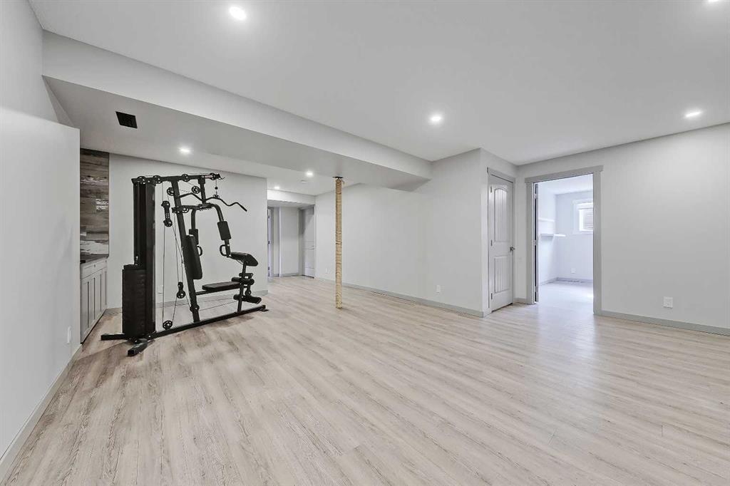 Located on a corner lot with a West-facing backyard in the established lakeside community of Chestermere, this spacious two-storey home features over 3,900 sq. ft of total living space, including 6 bedrooms (4 beds up!), a fully developed basement, and an enormous triple heated attached garage with epoxy floors! This home is ideal for large or multi-generational families, professionals working from home, or buyers seeking generous space both inside and out. The main floor features 9-ft ceilings and tiled flooring throughout. A bright front office with double glass doors and LVP flooring provides a dedicated workspace. The open living area features an 18-ft vaulted ceiling and a gas fireplace with a tile surround and mantel. A large formal dining room with a feature ceiling detail and hidden lighting sits nearby. The kitchen includes maple cabinetry, stainless steel appliances, black quartz countertops, a large walk-in pantry, and a secondary eating area overlooking the backyard. A discreet powder room and a dedicated laundry room with built-in cabinetry and sink complete the main level. From here, easily access the oversized heated triple garage with epoxy flooring. Upstairs, LVP flooring continues throughout. The spacious primary bedroom features a 6-pc ensuite with a tiled walk-in shower with a bench and dual shower heads, a jetted soaker tub with a waterfall feature, dual vanities with a built-in makeup station, a skylight, and a separate water closet. The ensuite connects to a large walk-in closet with built-in shelving. Three additional bedrooms, a full bathroom, a large bonus room, and extra linen storage complete the upper floor. The fully finished basement expands the home’s versatility with a large recreation room and a wet bar featuring quartz countertops and a full-height tile backsplash. Two additional bedrooms with walk-in closets and large windows are located on this level, along with a full bathroom featuring a custom-tiled shower with body jets, a rainfall showerhead, and a glass enclosure. Mechanical features include two furnaces, two hot-water tanks, and two air-conditioning units. The sunny West-facing backyard includes a large deck with a gas line for a BBQ. Chestermere offers a unique lakeside lifestyle just minutes from Calgary. Residents enjoy year-round access to Chestermere Lake, including beaches, walking pathways, water sports, and winter recreation. Families benefit from nearby schools, including Prairie Waters Elementary School and Chestermere Lake Middle School. Chestermere Public Library is just close by. Everyday amenities, including grocery stores, restaurants, and services, are available within the city, while quick access to Calgary makes commuting simple. Multiple parks, playgrounds, and recreational facilities throughout the community support an active and family-friendly lifestyle.